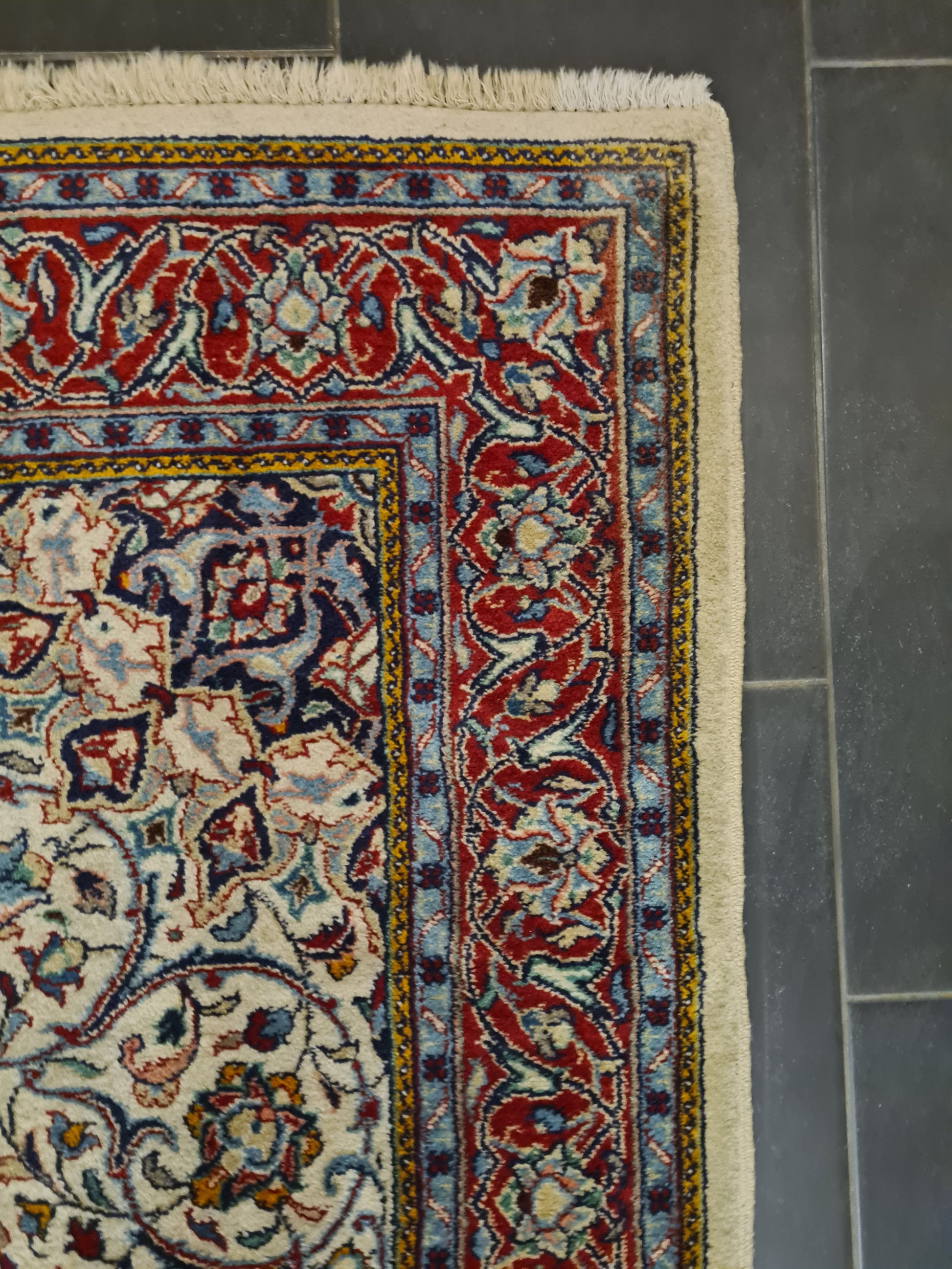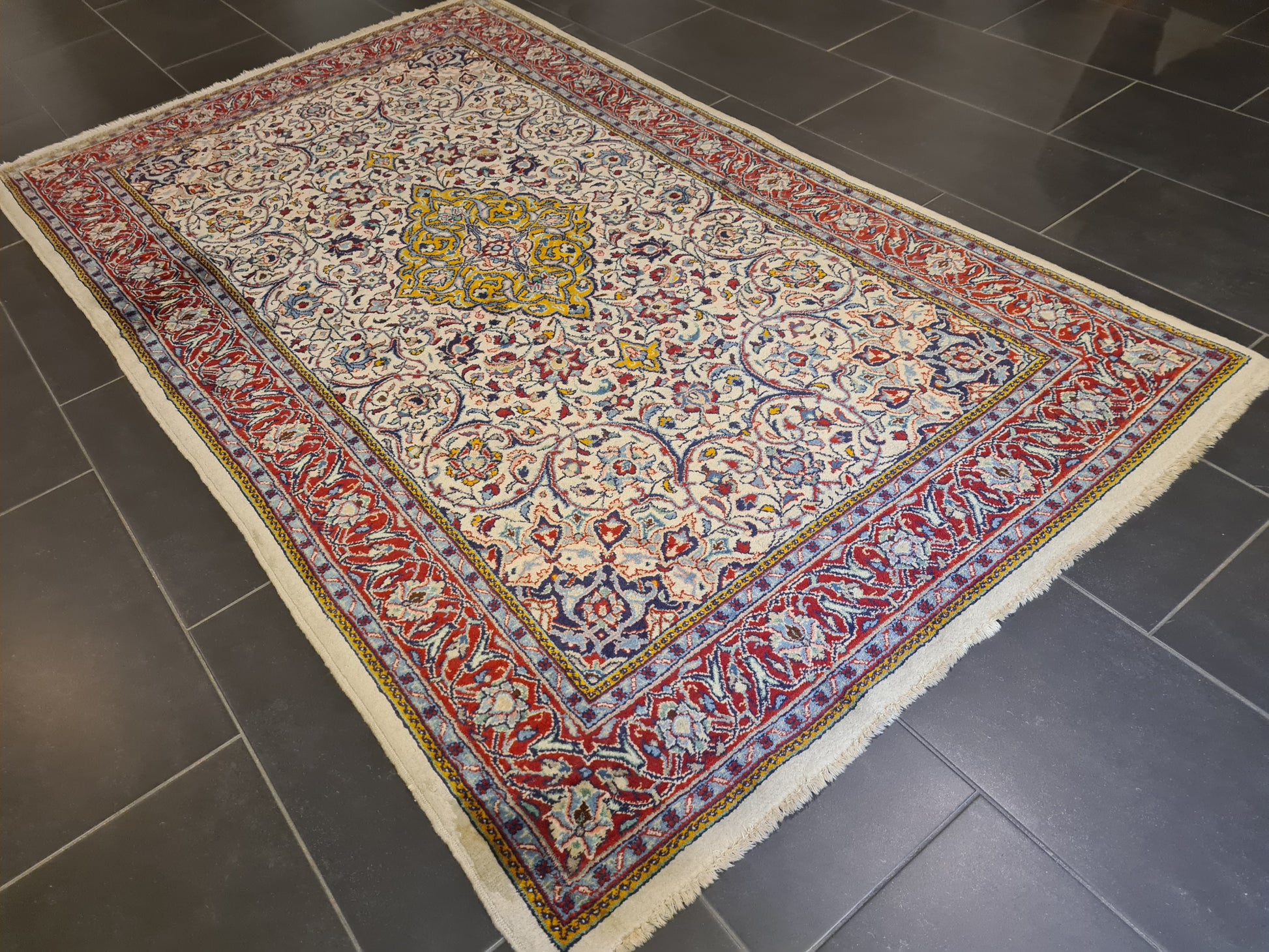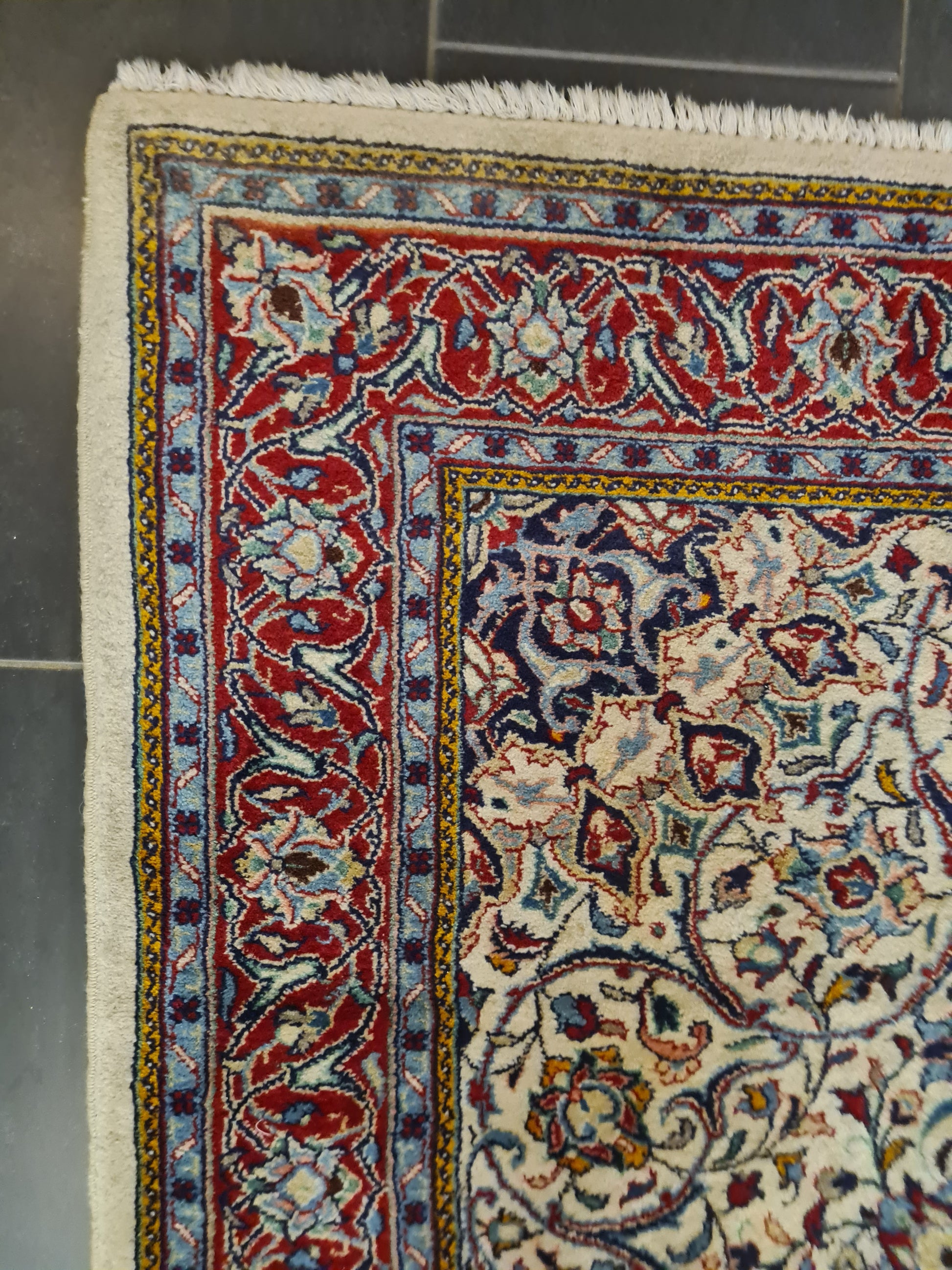 angeboten wird ein edler Perserteppich der Provenienz Sarough, handgeknüpft und mit klassischem Orientdekor. Der Teppich überzeugt durch seine feine Knüpfkunst, harmonische Farbgebung und detailreiche Ornamentik.