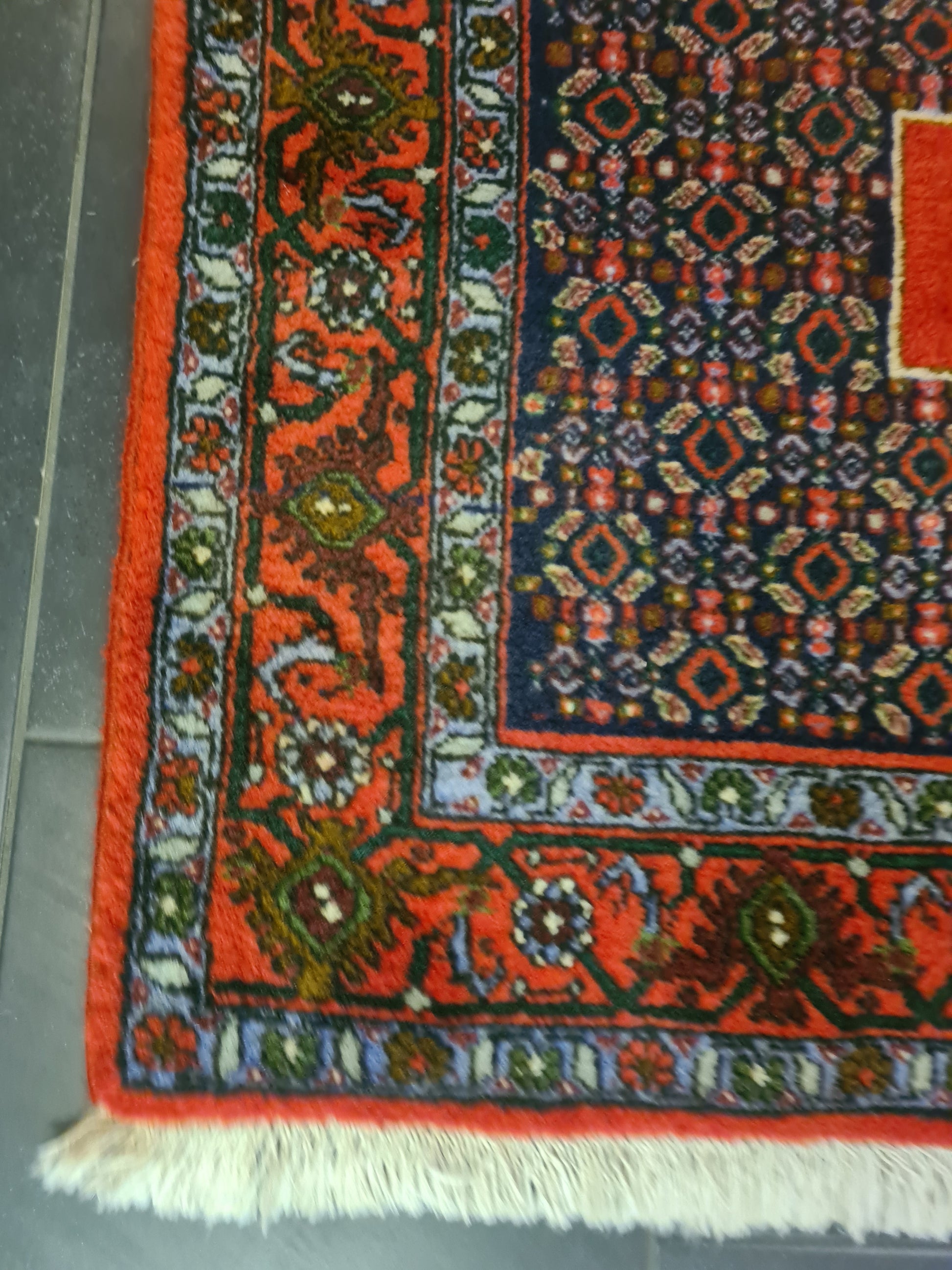 zum Verkauf steht ein edler handgeknüpfter Perserteppich der Provenienz Senneh Bidjar. Dieser Orientteppich überzeugt durch seine detailreiche Knüpfung, hochwertige Wolle und das klassische Bidjar-Muster, das für seine Feinheit und Langlebigkeit geschätzt wird.