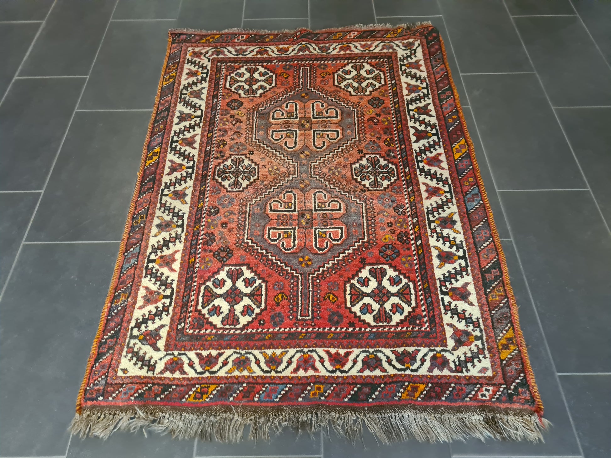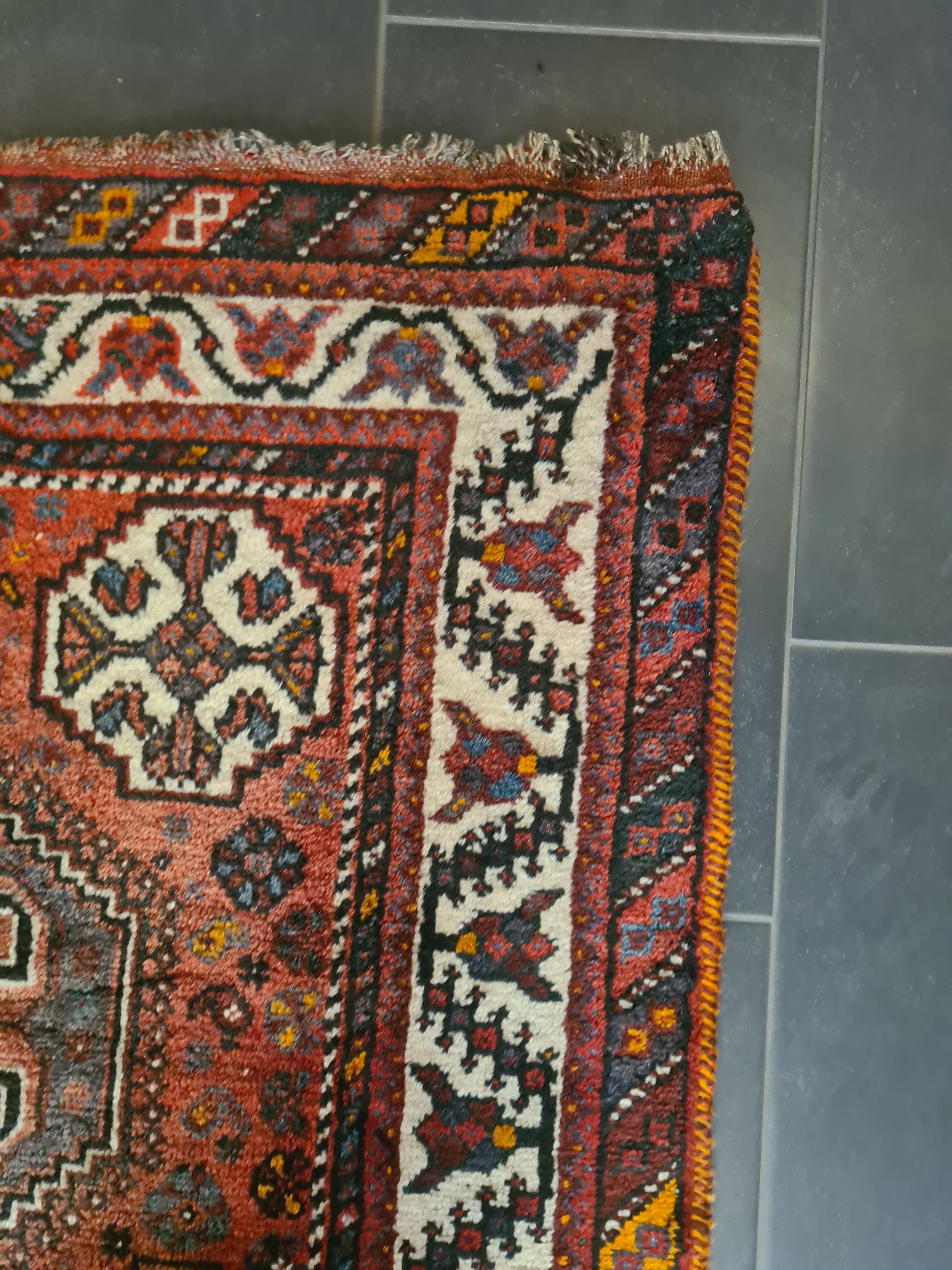 zum Verkauf steht ein handgeknüpfter Perserteppich aus der Region Shiraz. Der Teppich überzeugt durch seine traditionelle Knüpfkunst, ein lebendiges Orientmuster und warme Farbtöne, die jedem Raum eine besondere Atmosphäre verleihen.