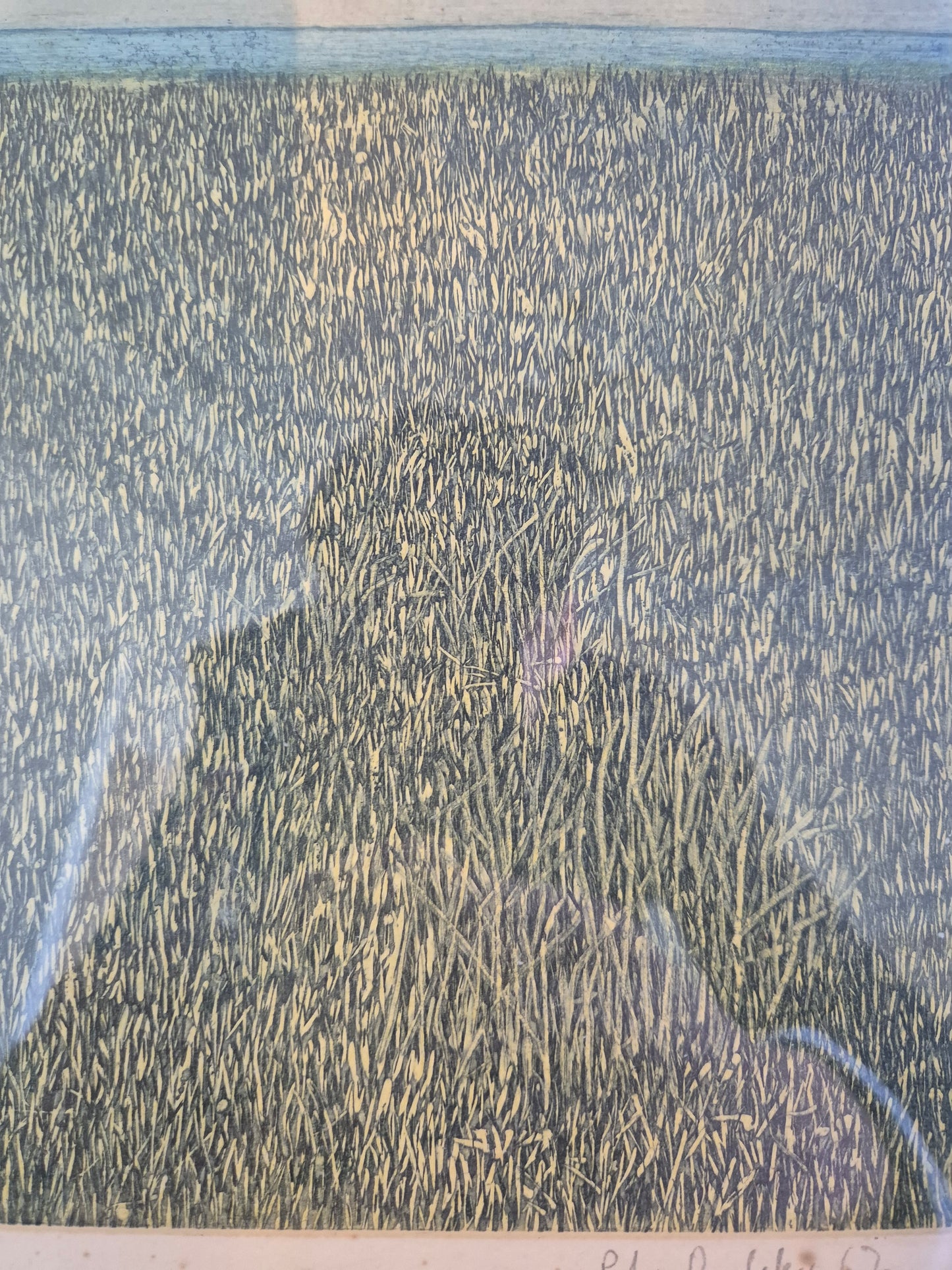 Technik und Rahmung: Farbradierung, hinter Glas gerahmt