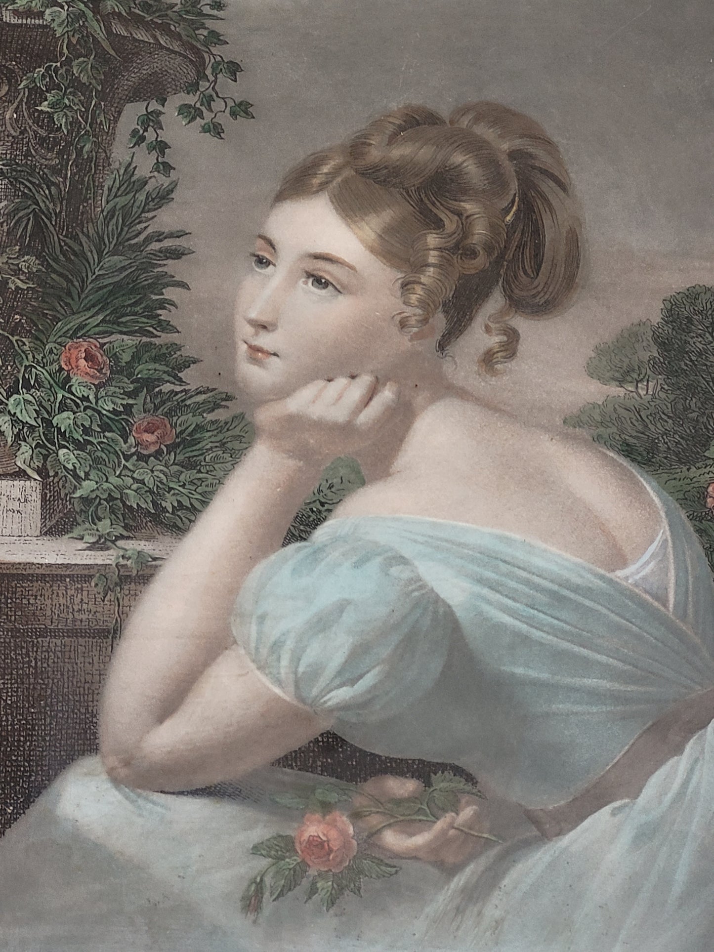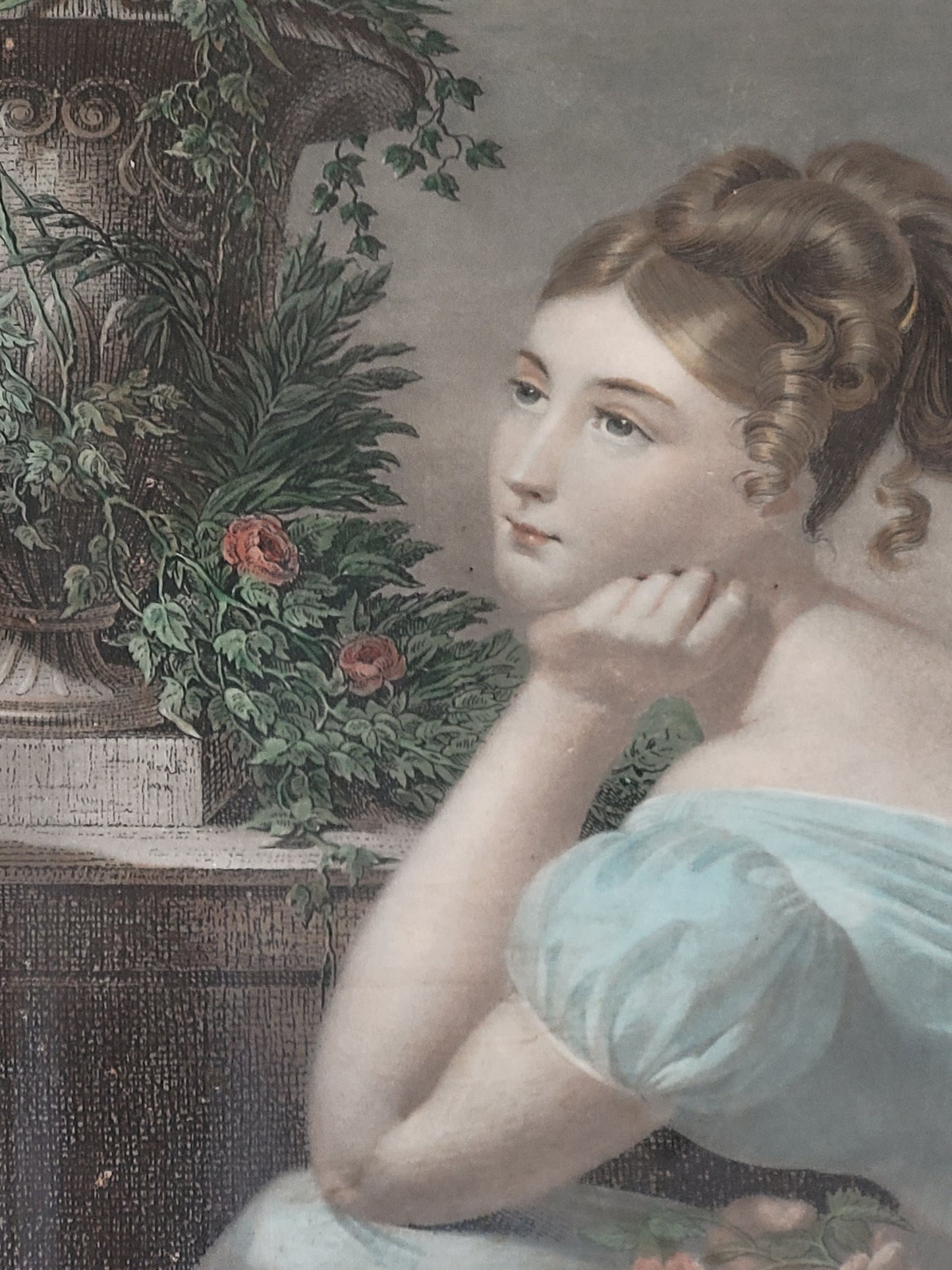 Französische Schule (XX) Farblithographie, Tagträumerei Portrait