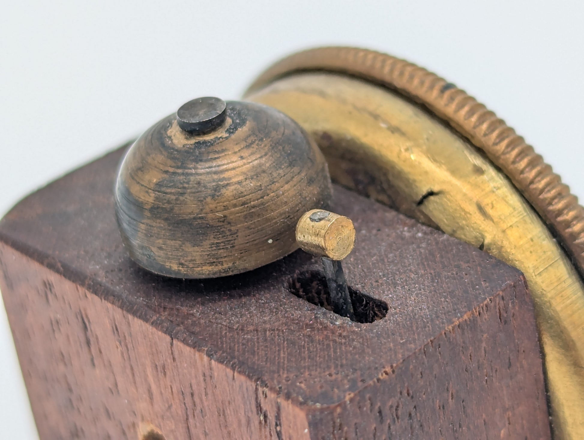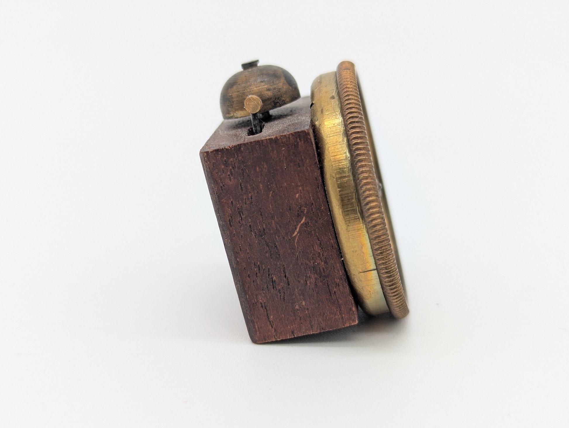 Reisewecker Wecker Miniatur Uhr mechanisch mit Holzkorpus und Messingring