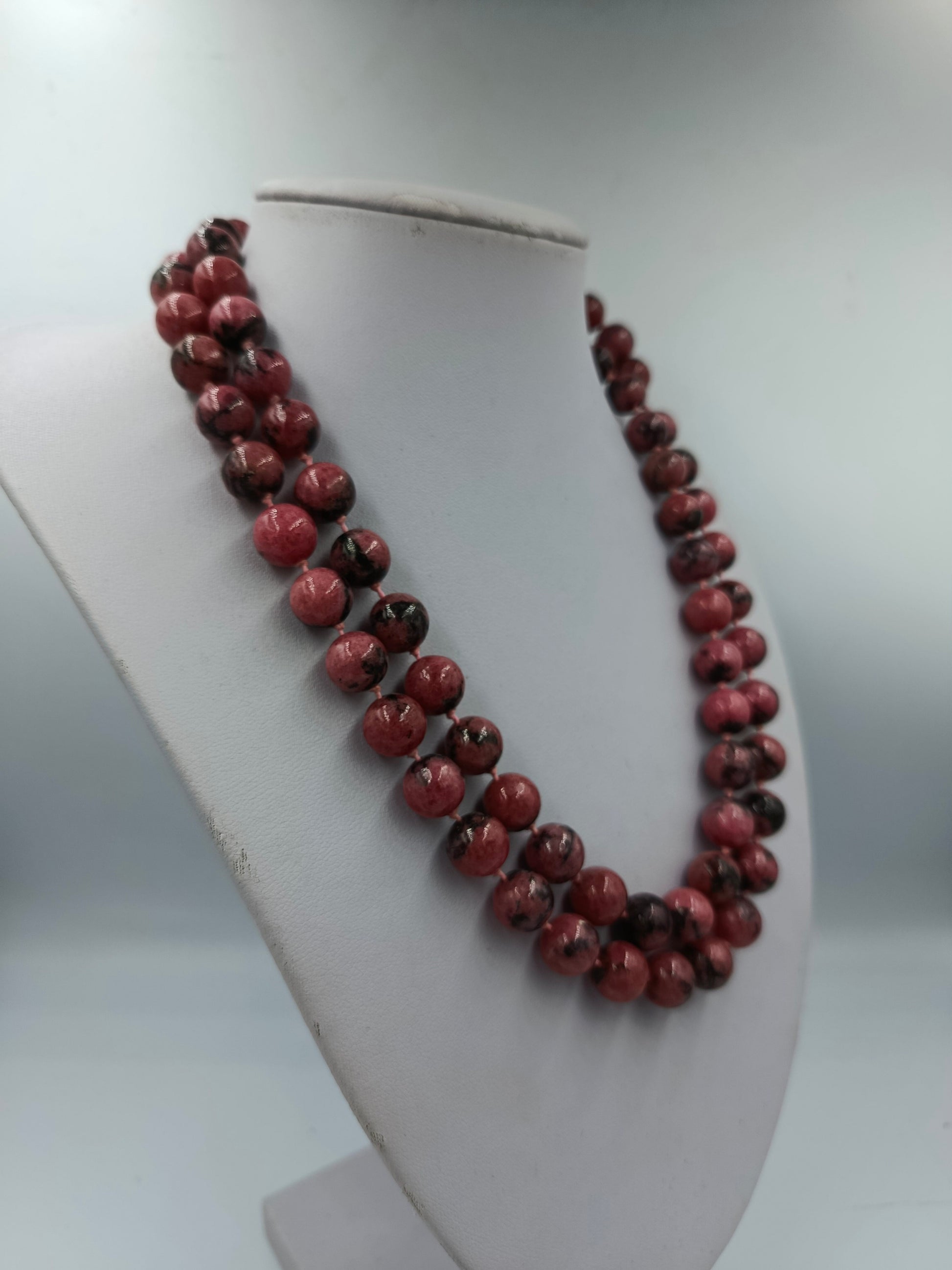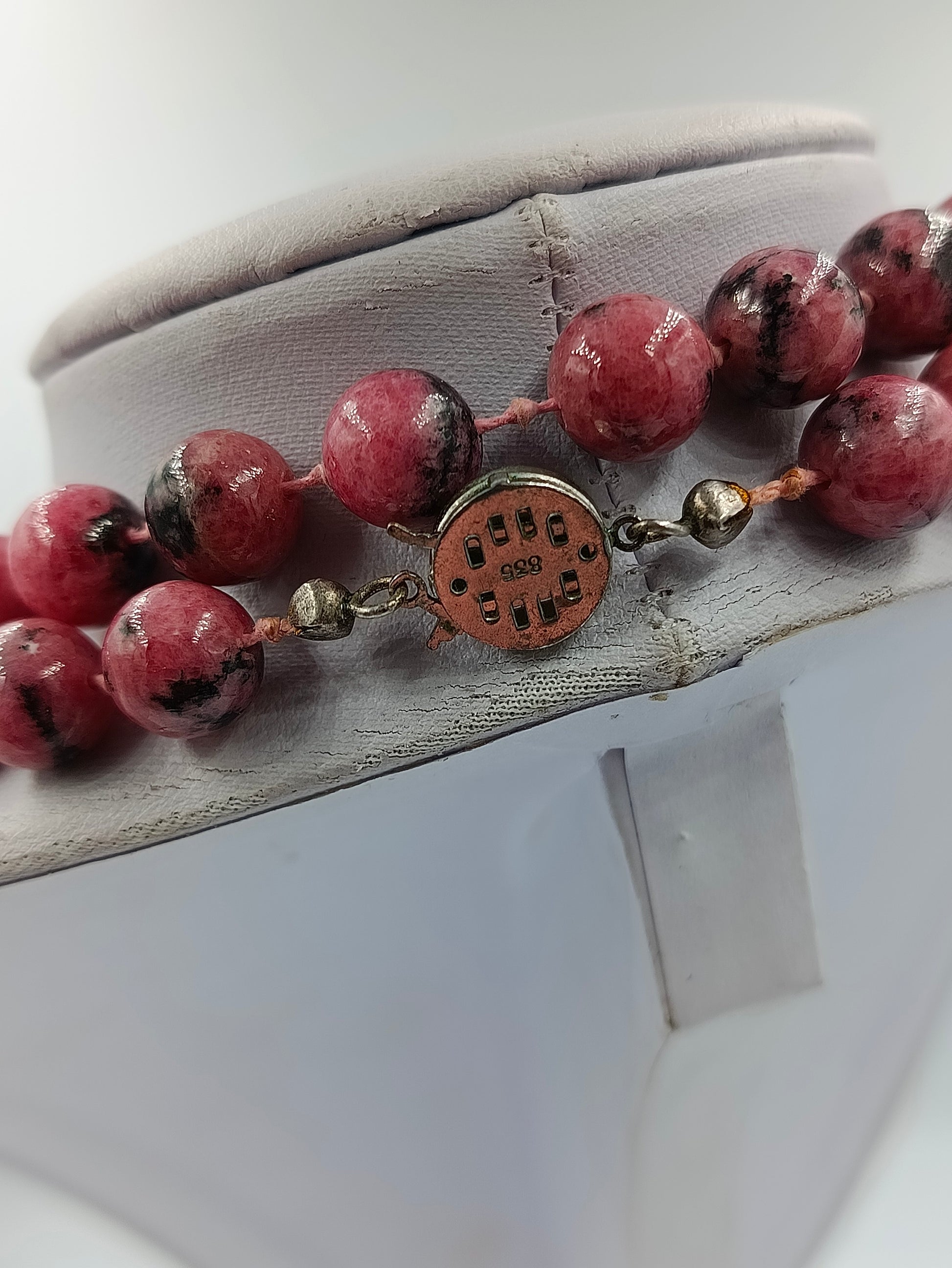 Rhodonit Edelstein Kette mit 835 Silberverschluss doppelt geknüpft