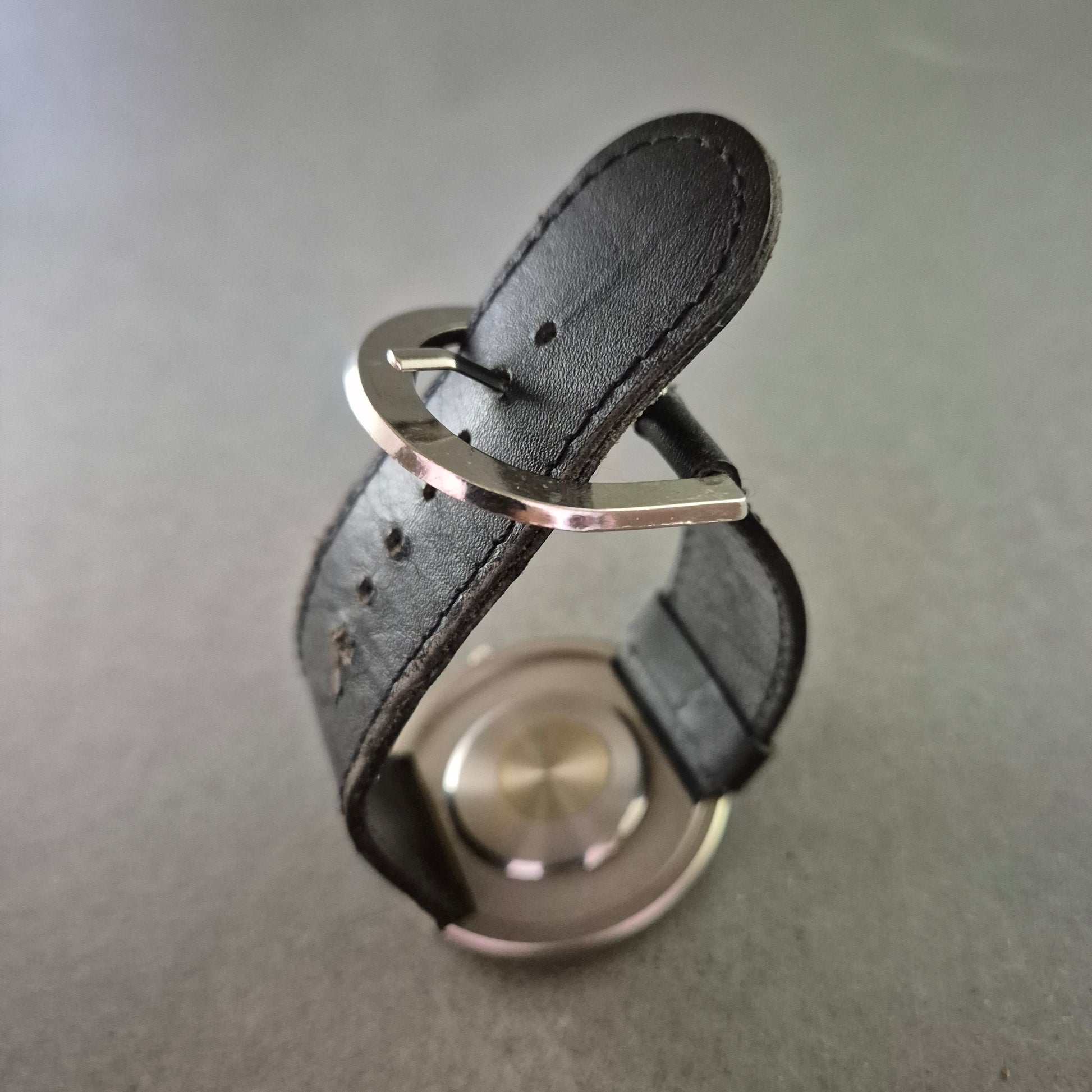Diese Rolf Cremer Damen Uhr ist ein echtes Designerstück und überzeugt durch ihre außergewöhnliche Optik. Das große, runde Edelstahlgehäuse umschließt ein minimalistisches schwarzes Zifferblatt, das mit einer Kugelreihe am unteren Rand einen besonderen Akzent setzt. Mit ihrem modernen, puristischen Stil ist diese Uhr ein zeitloses Accessoire für Liebhaber von außergewöhnlichem Design.