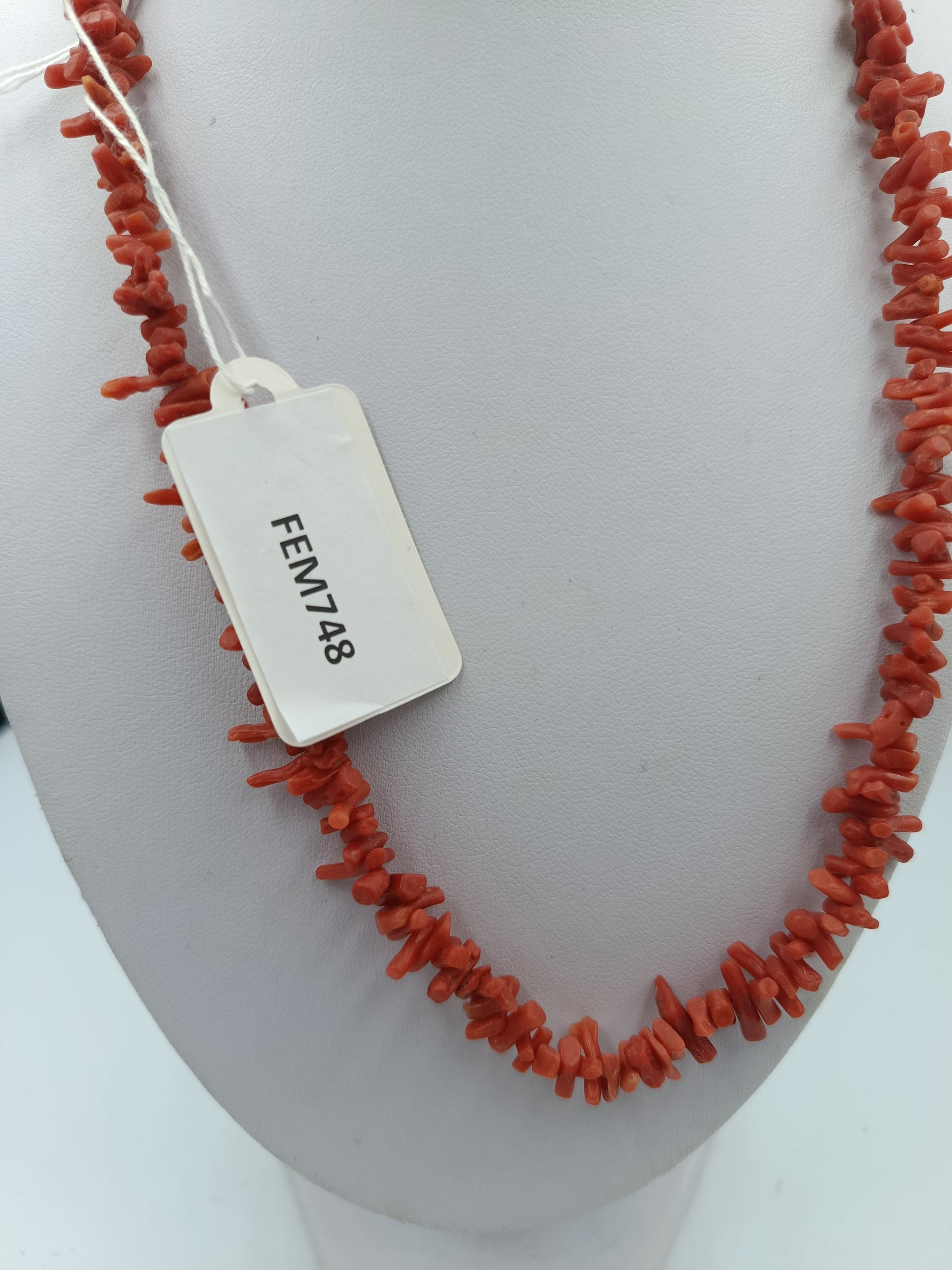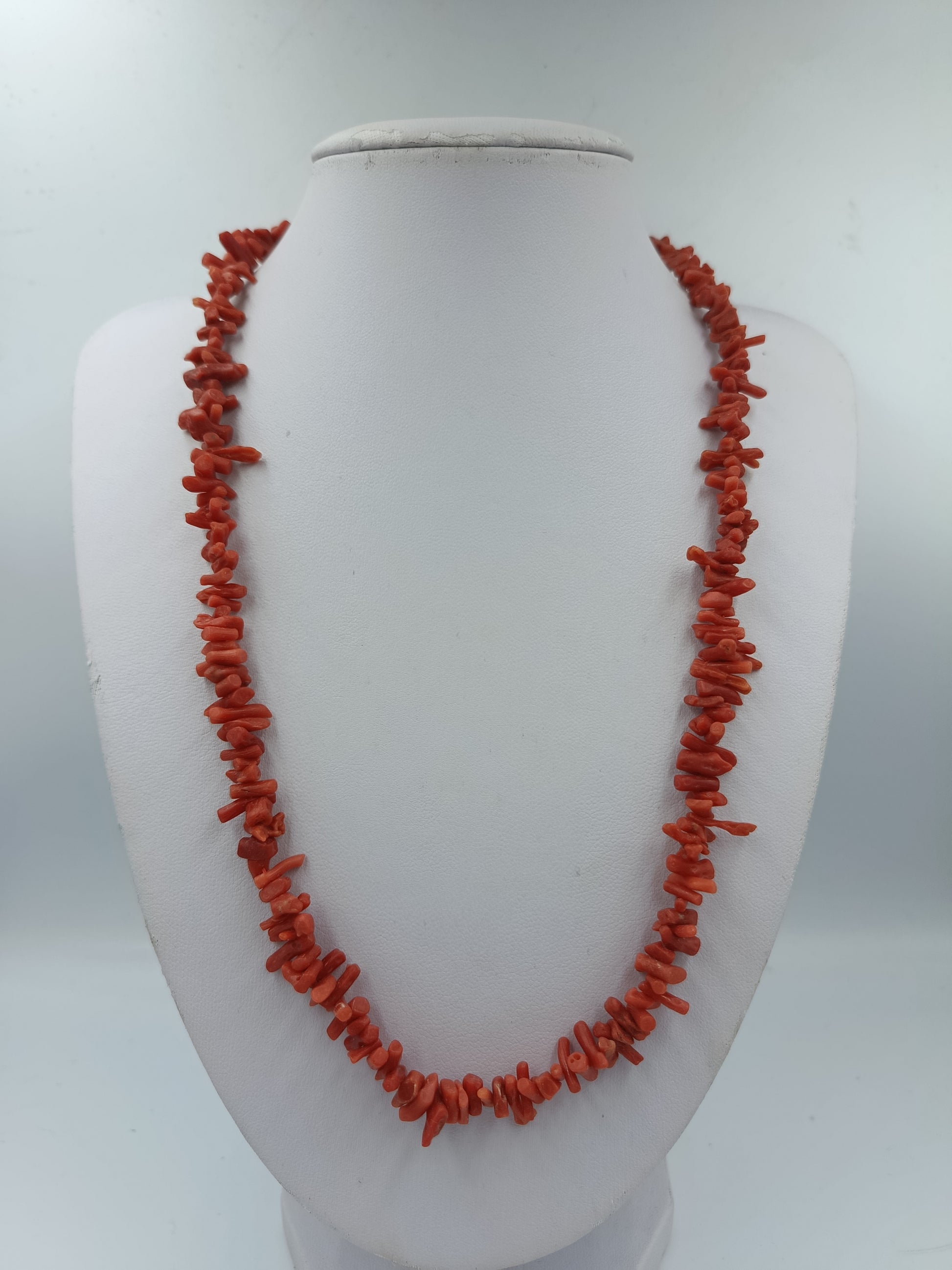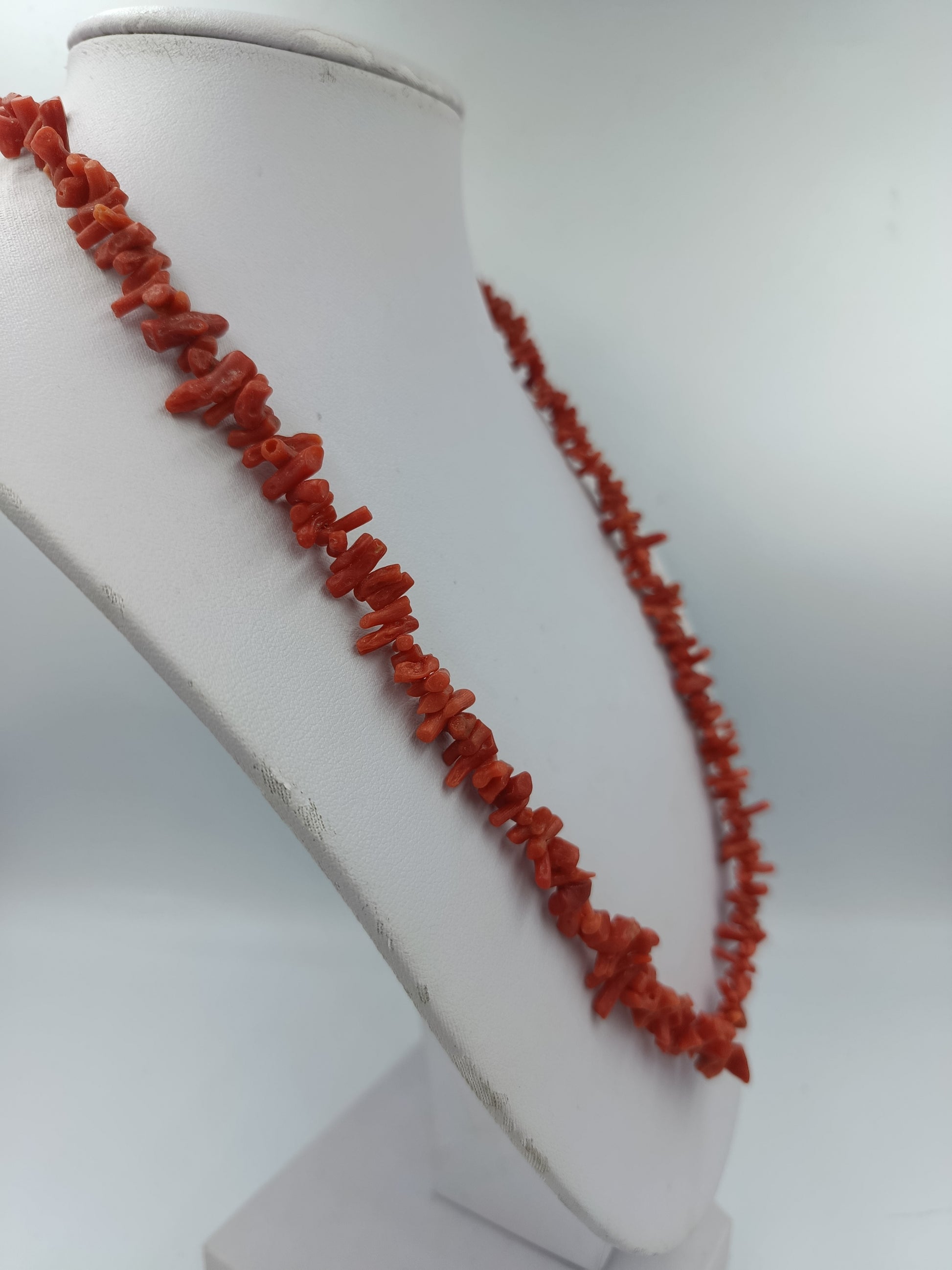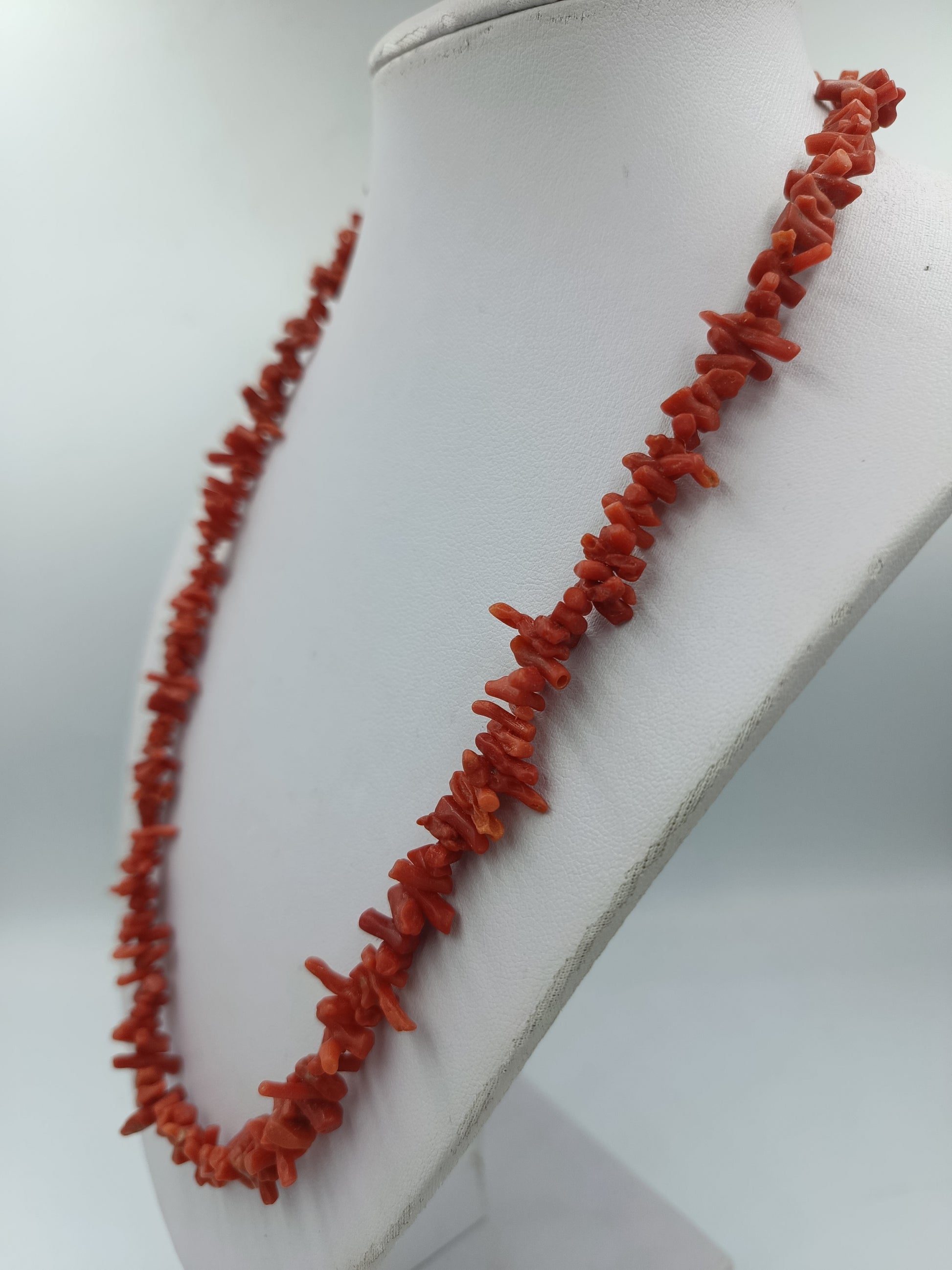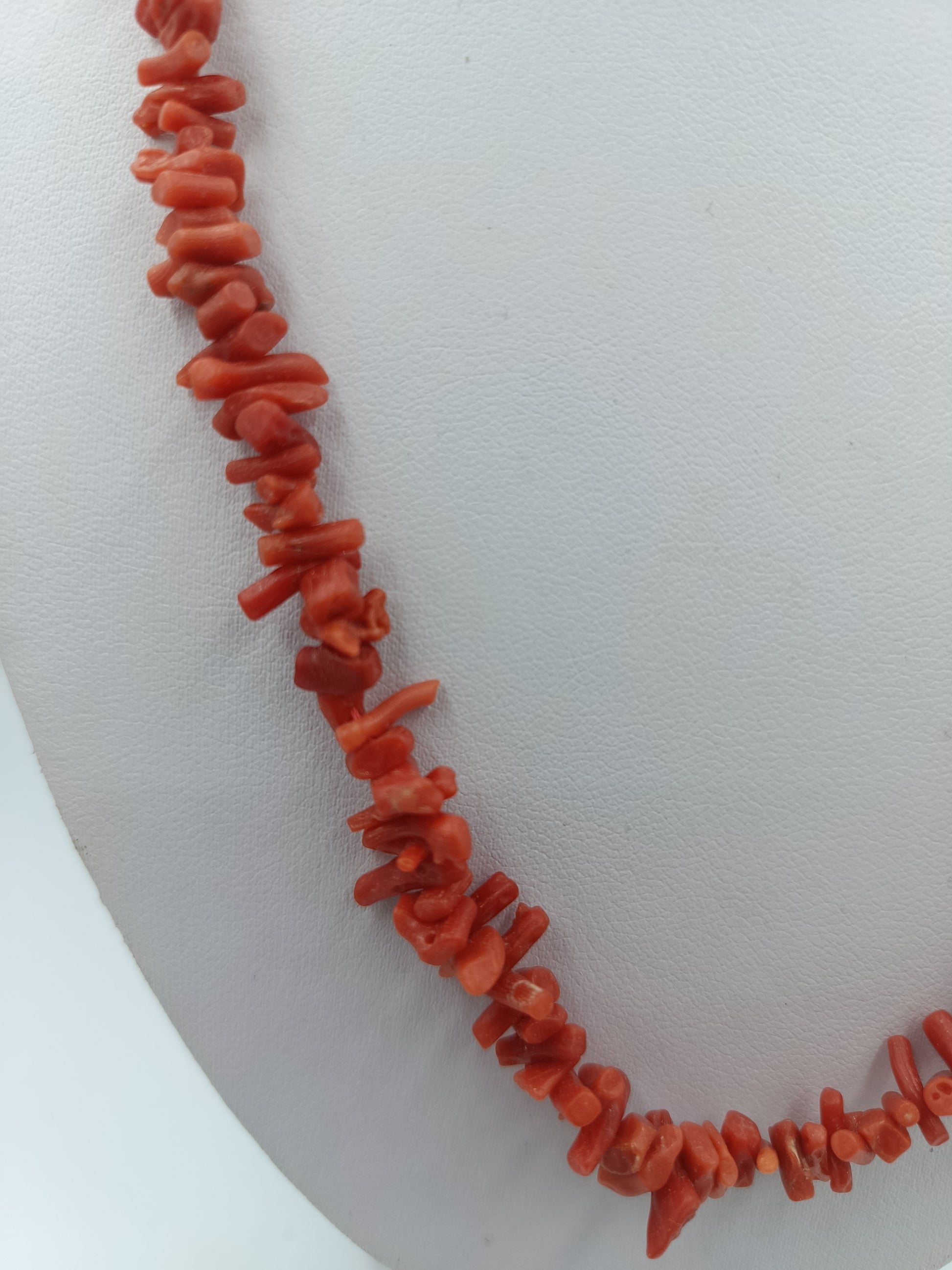 Elegante Korallen Halskette aus echten roten Korallensplittern, liebevoll von Hand aufgefädelt. Die natürliche Struktur und der warme Farbton verleihen dieser Kette einen zeitlosen, mediterranen Charme. Perfekt kombinierbar mit sommerlichen Outfits oder klassischen Looks.