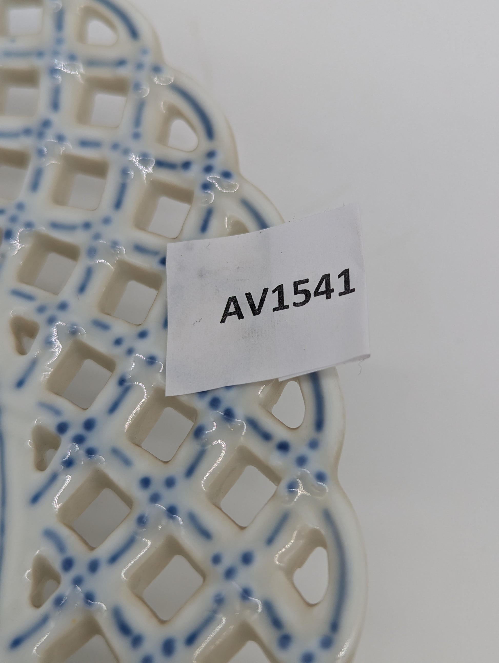 Diese Ausführung zählt zu den aufwendigsten Varianten der klassischen Musselmalet-Serie und zeigt einen vollständig durchbrochenen Spitzenrand mit filigranen Details und handgemalten Ornamenten.