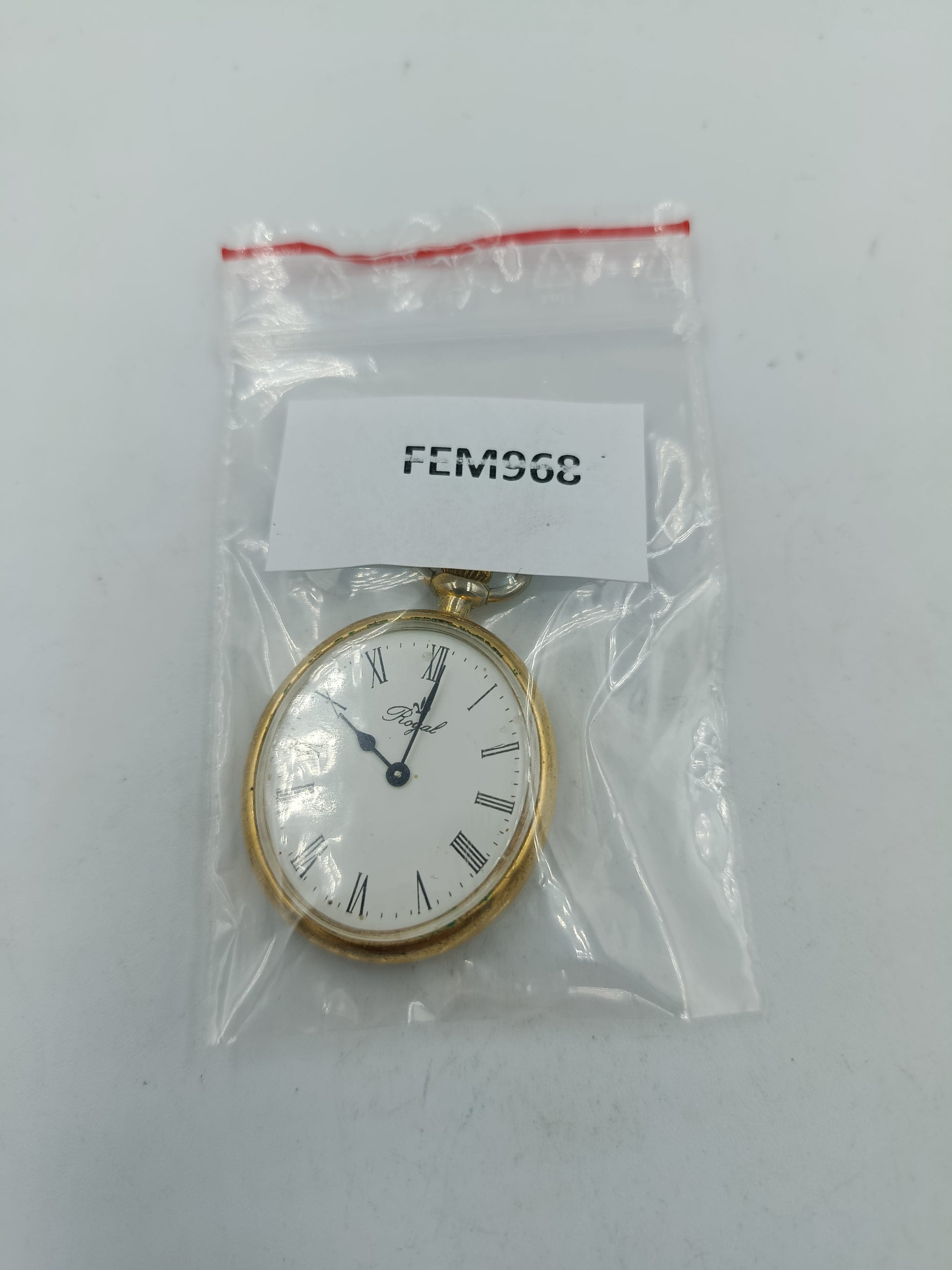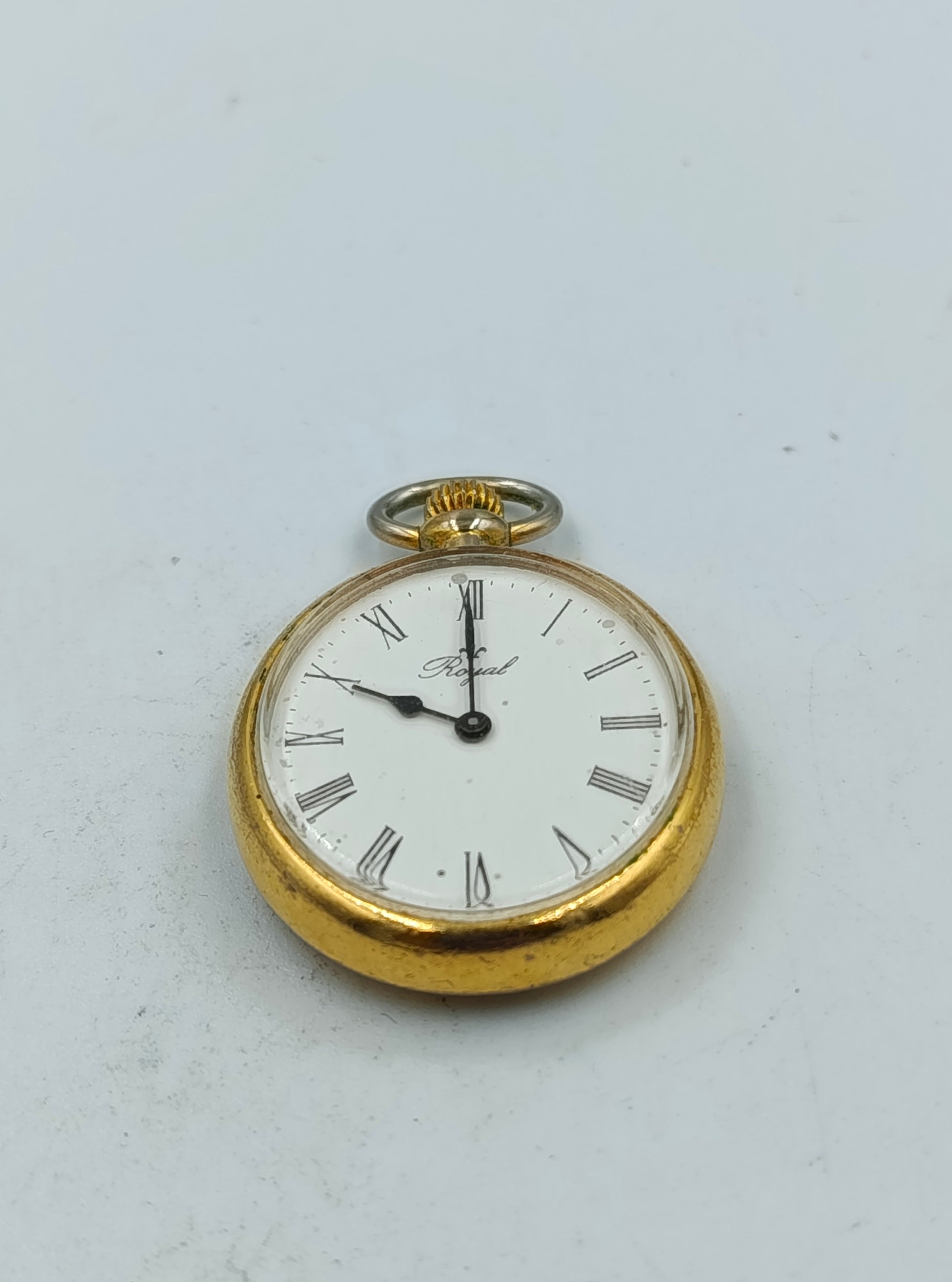 Royal Taschenuhr Goldfarben Weißes Zifferblatt Römische Ziffern