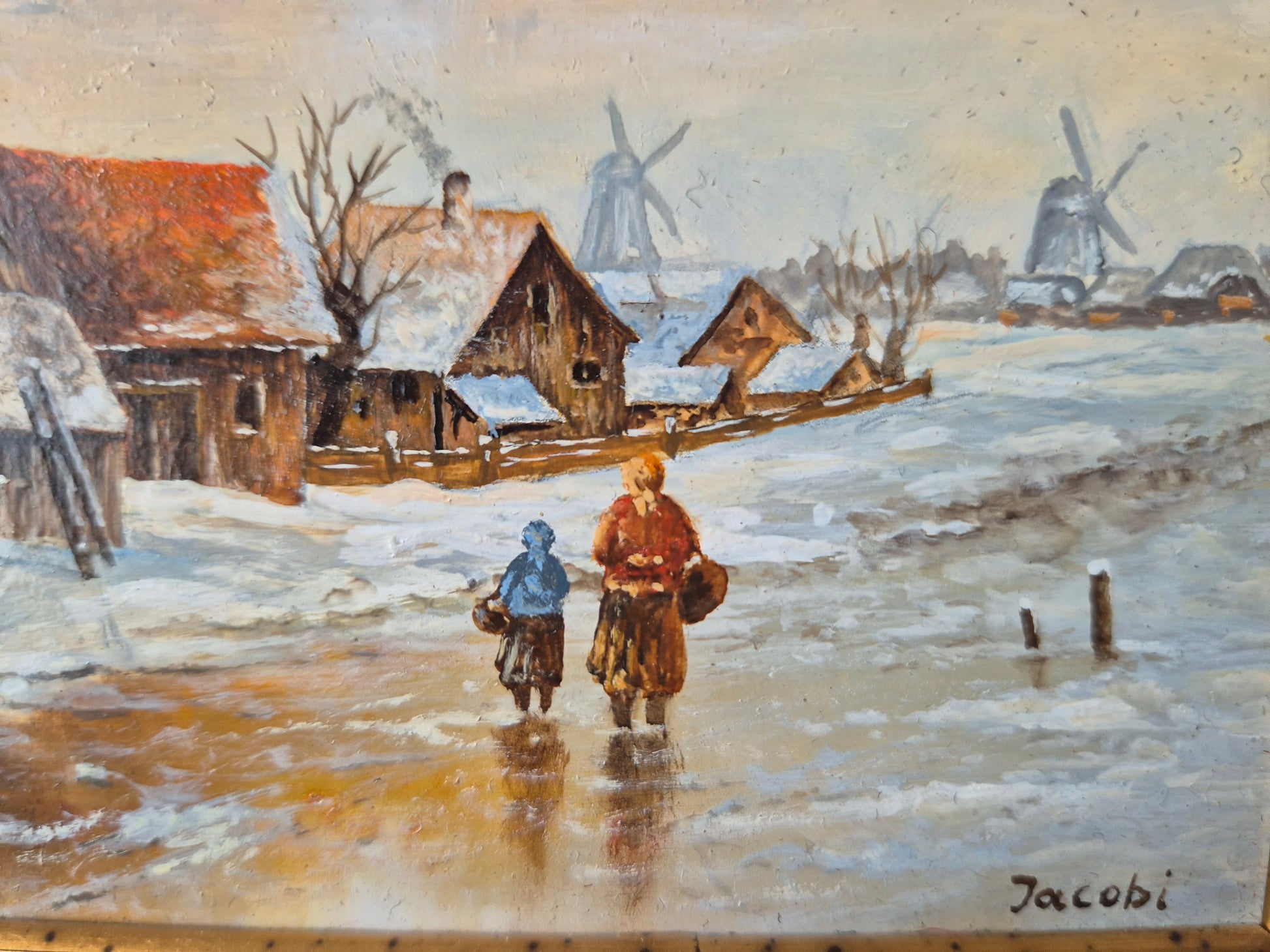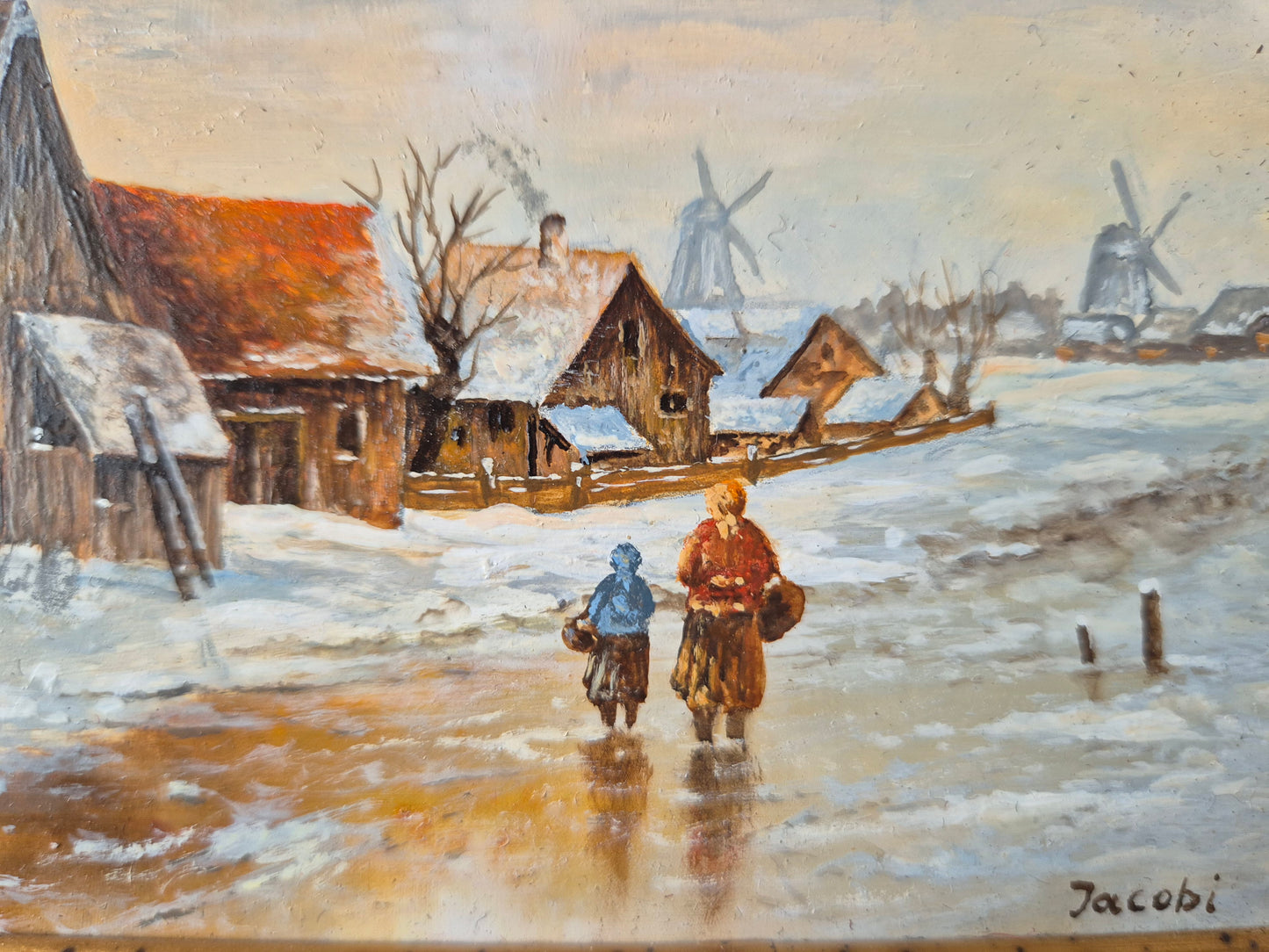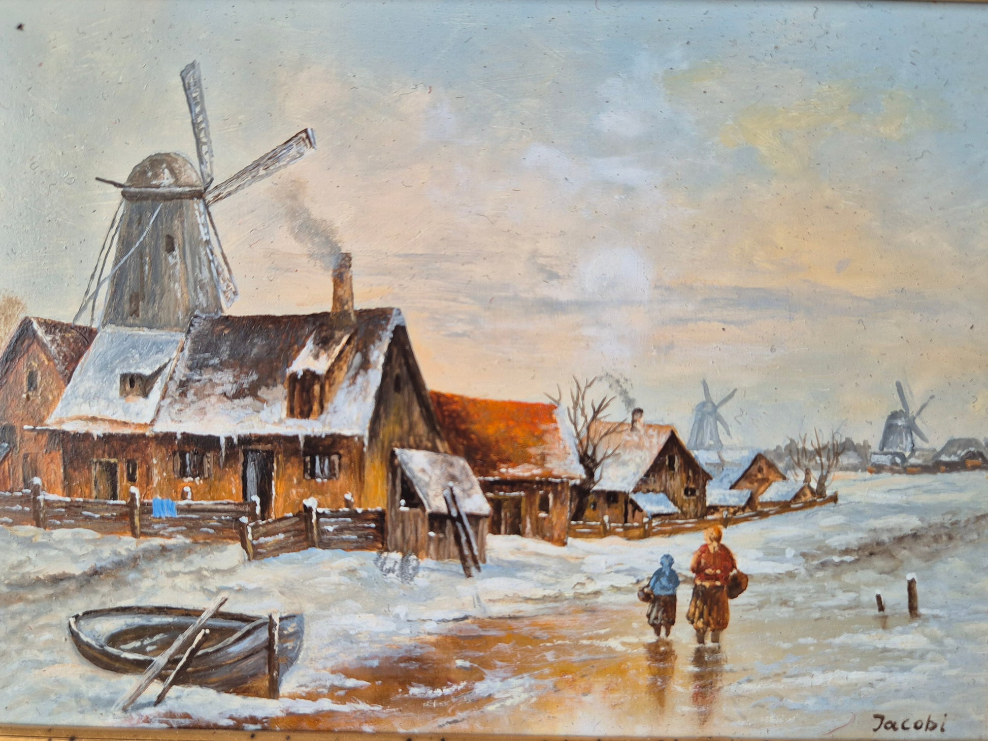 Jacobi (XX) Ölgemälde Holländische Winterlandschaft mit Mühle