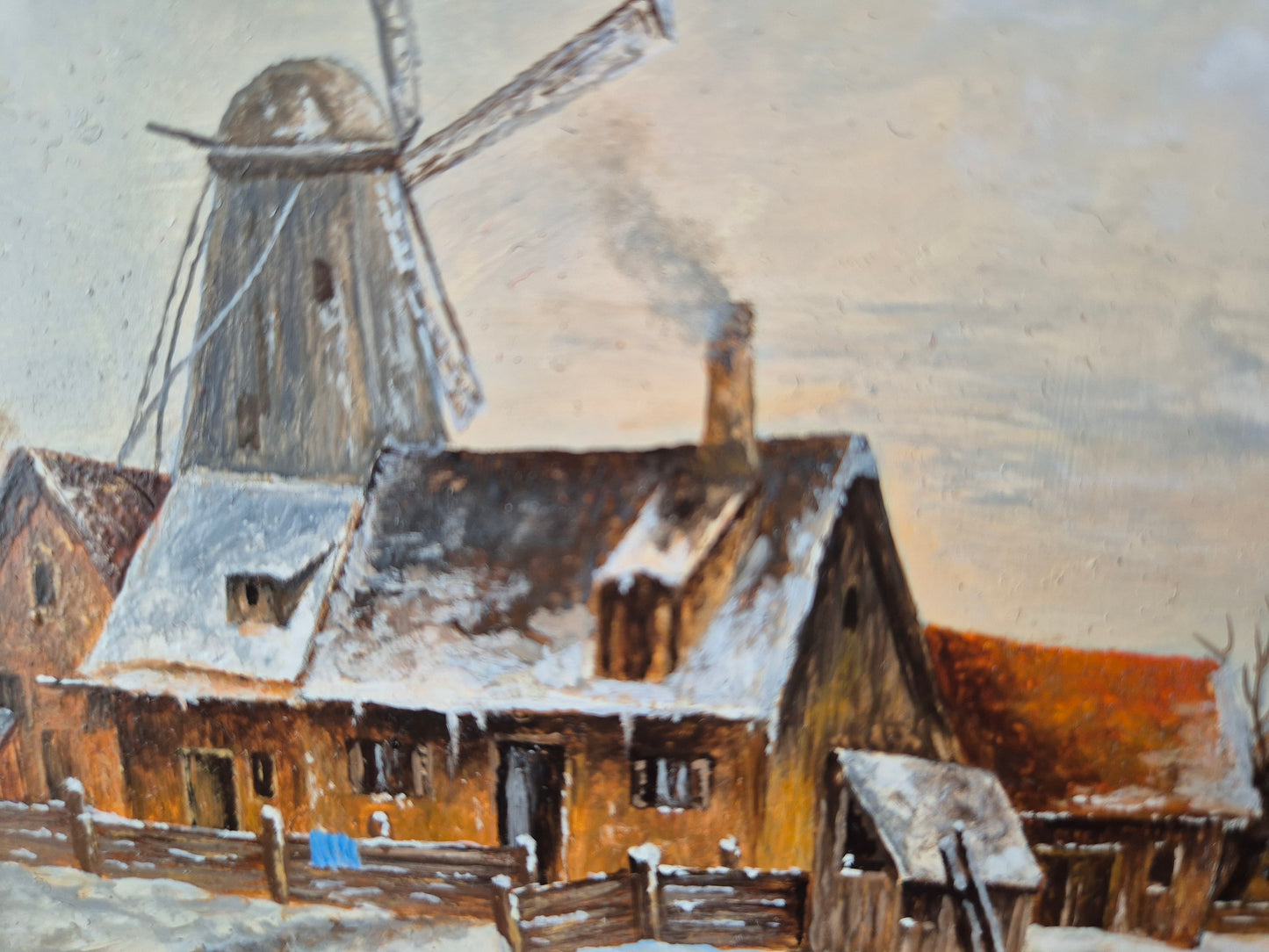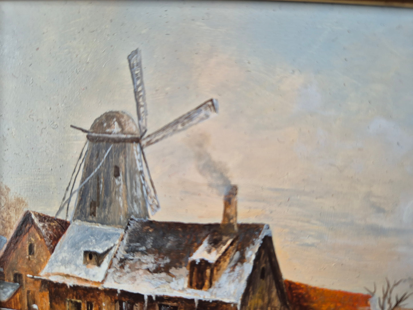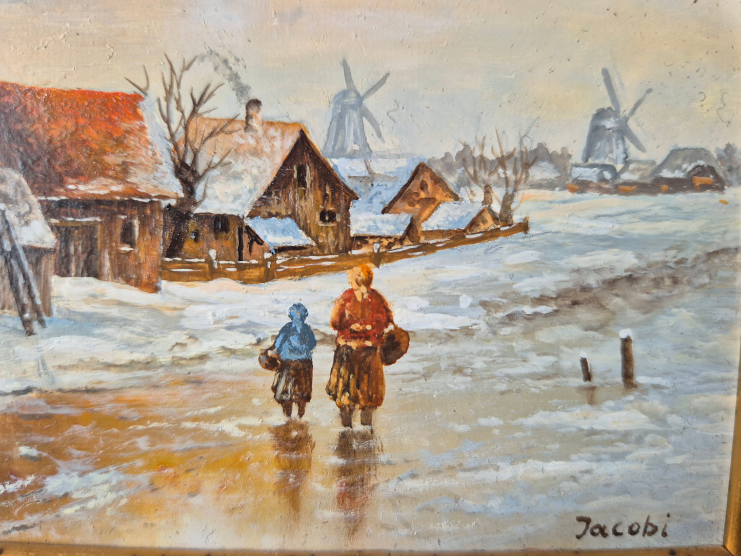 Jacobi (XX) Ölgemälde Holländische Winterlandschaft mit Mühle