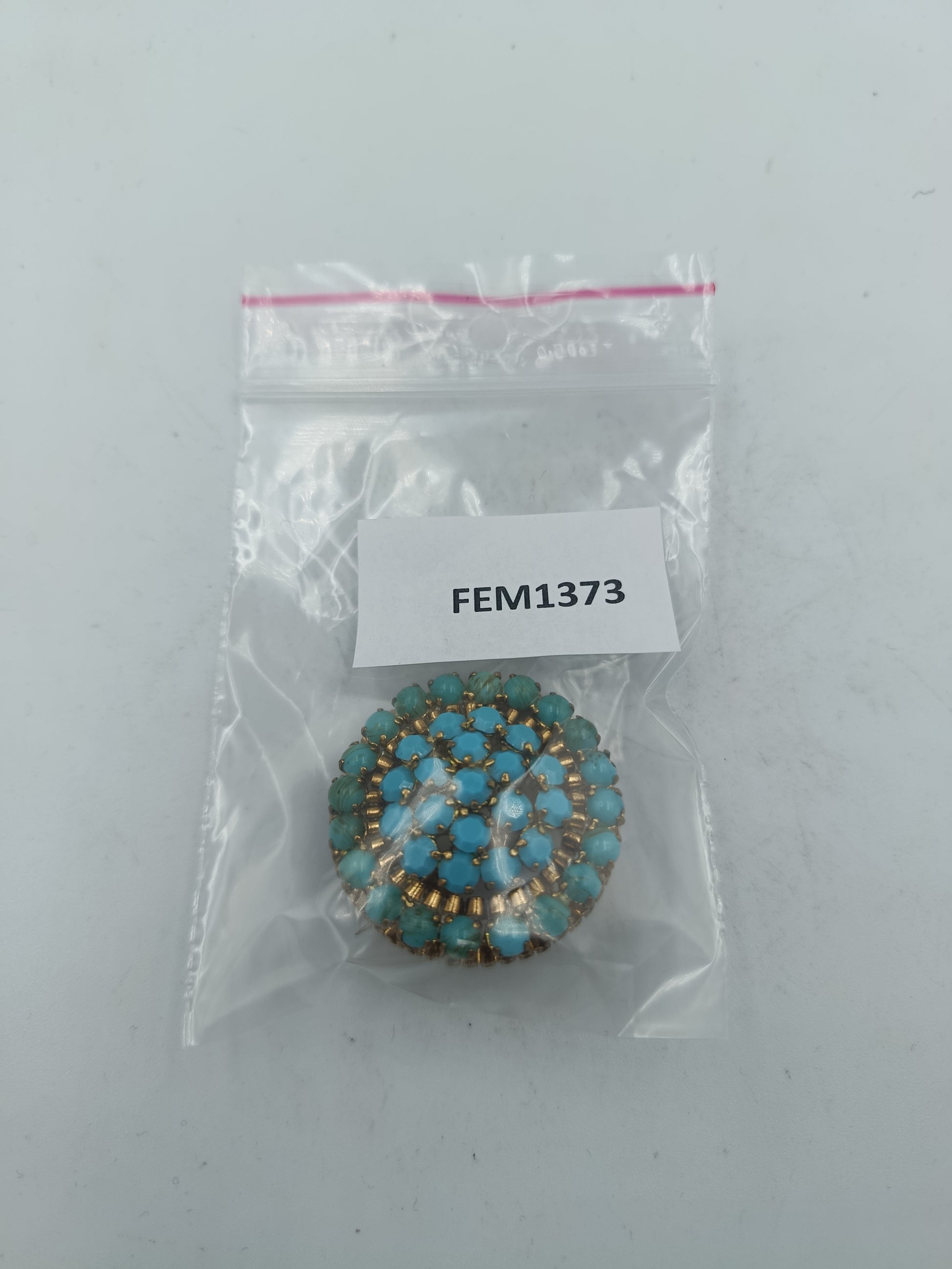 Diese auffällige Brosche überzeugt durch ihr rundes Design mit sorgfältig gefassten türkisen Glassteinen in unterschiedlichen Nuancen. Die Kombination aus warmer Goldoptik und lebendigen Farben verleiht dem Schmuckstück eine elegante Vintage Ausstrahlung. Ideal als stilvoller Akzent an Jacken Mänteln oder Schals und perfekt für Liebhaber klassischer Schmuckdesigns