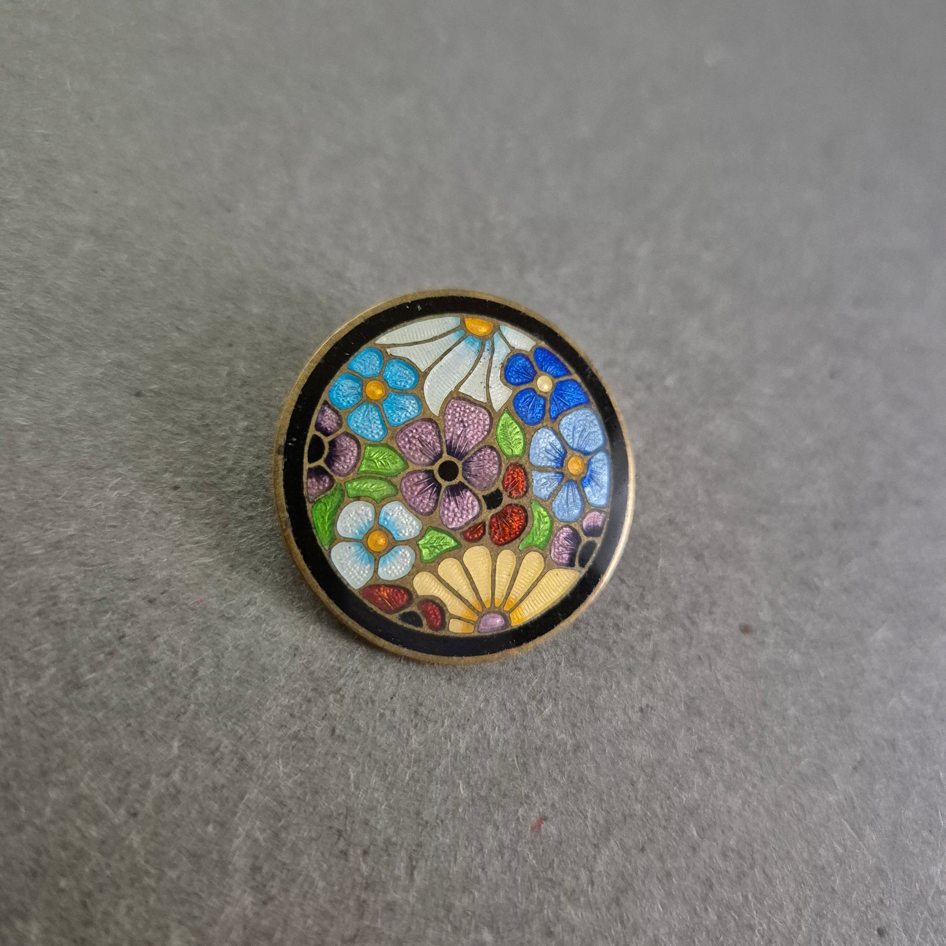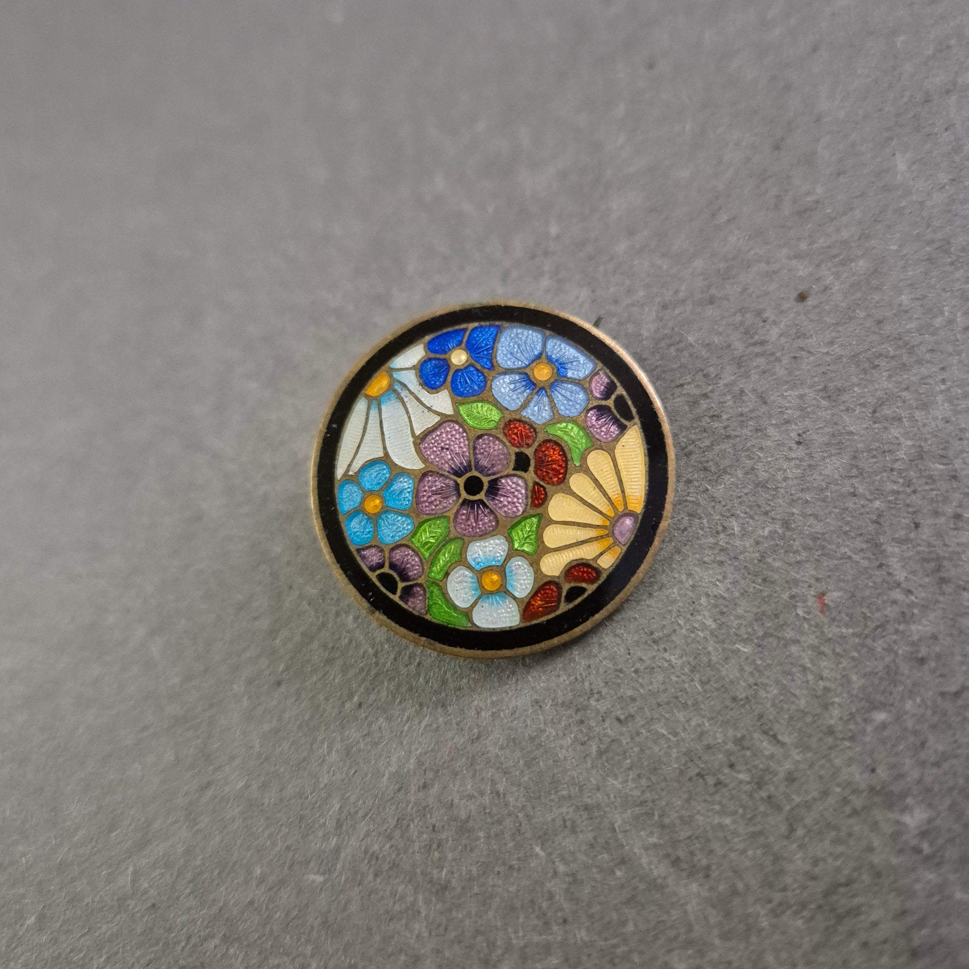 Runde Emaille-Brosche mit buntem Blumenmuster – Cloisonné-Stil