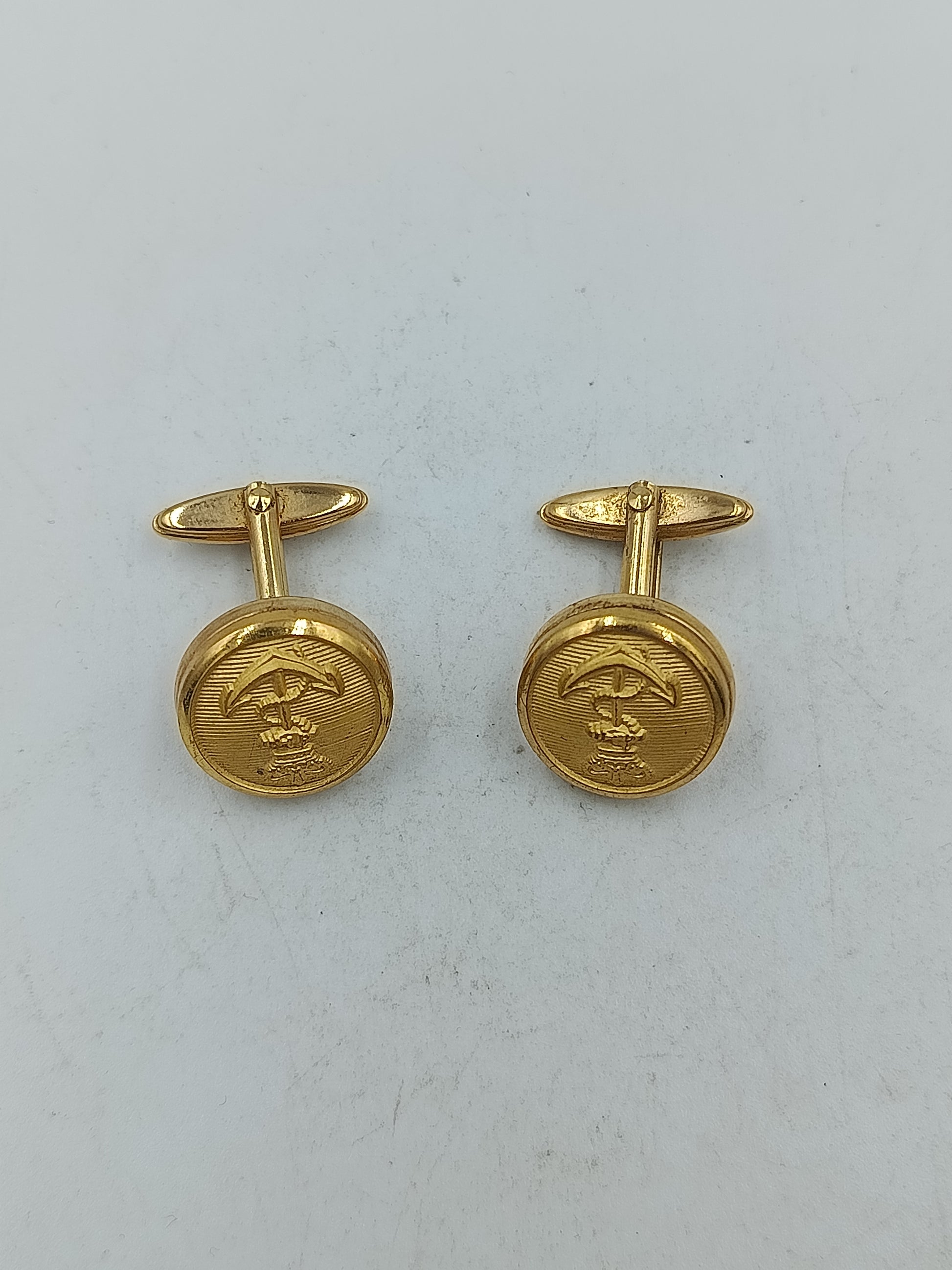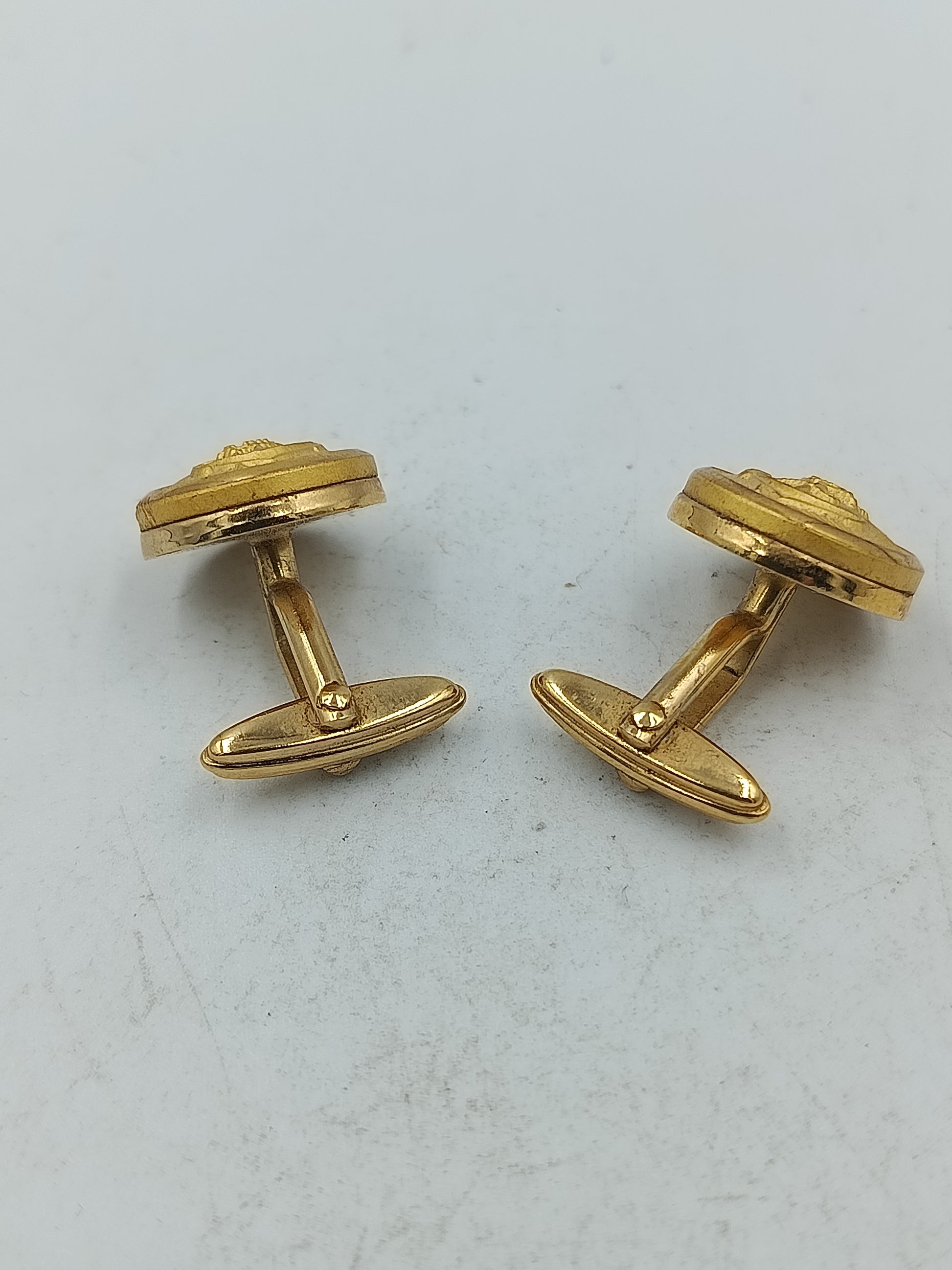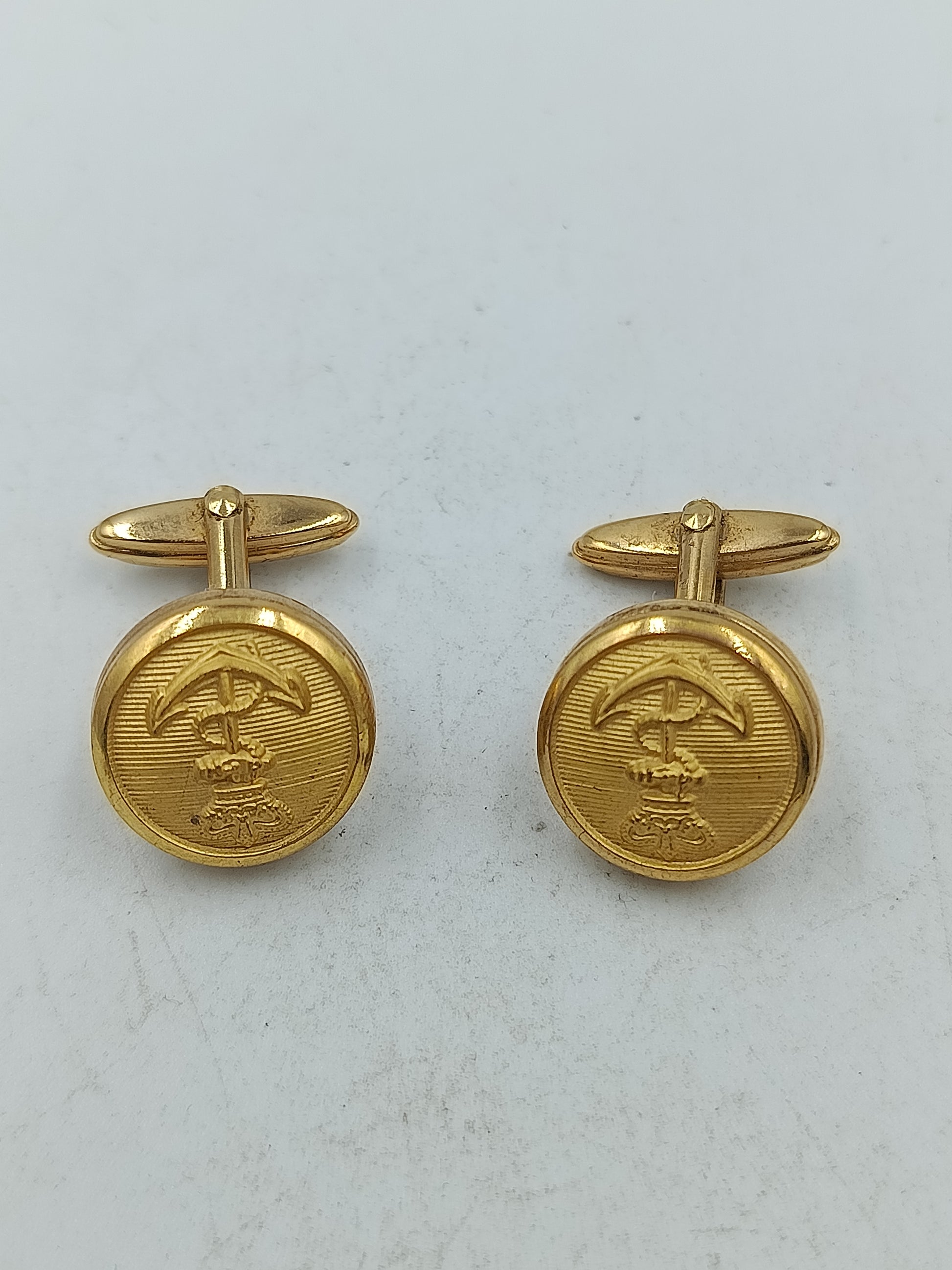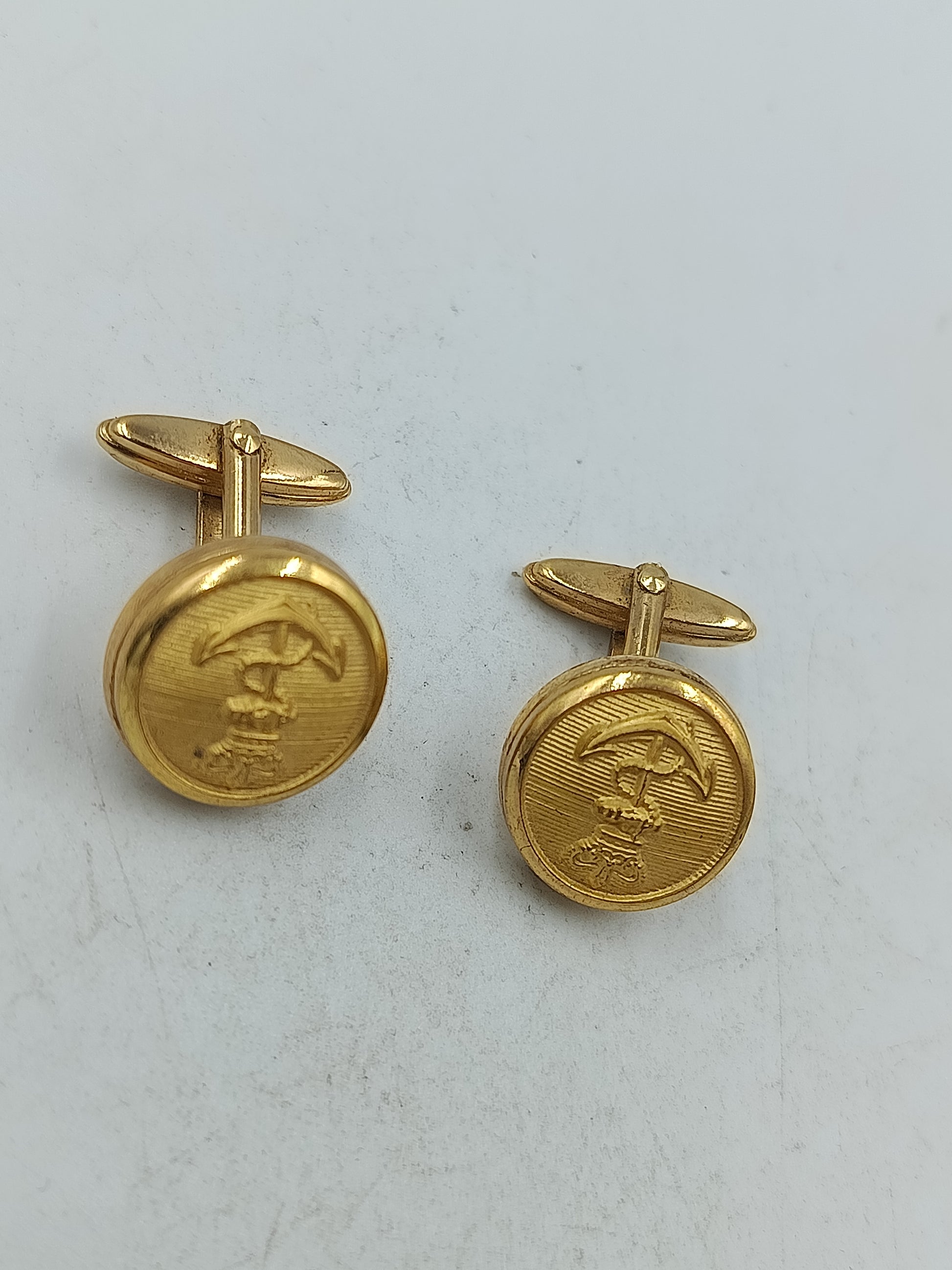 Runde Manschettenknöpfe in Goldoptik mit feiner Prägung und klassischem Motiv