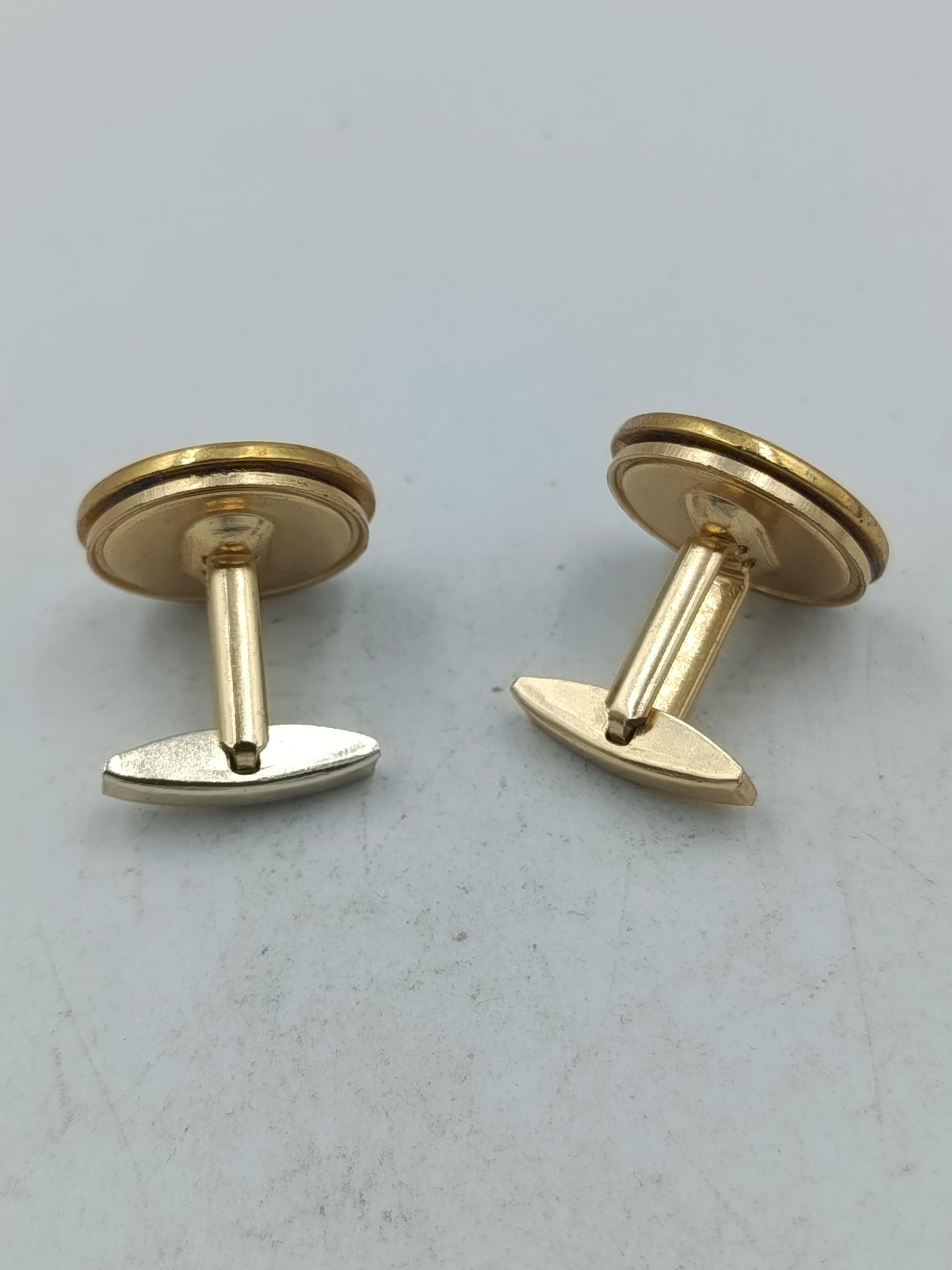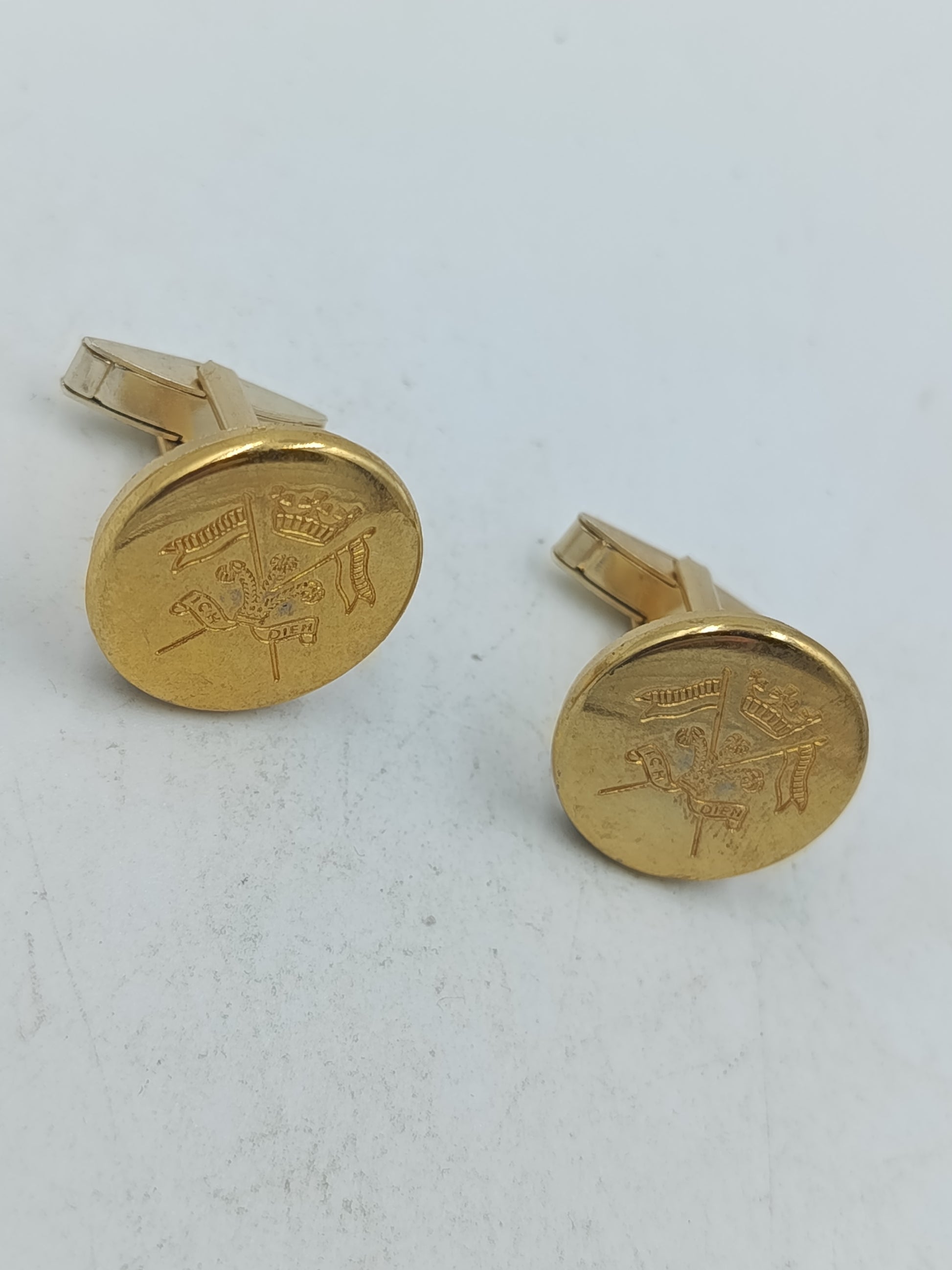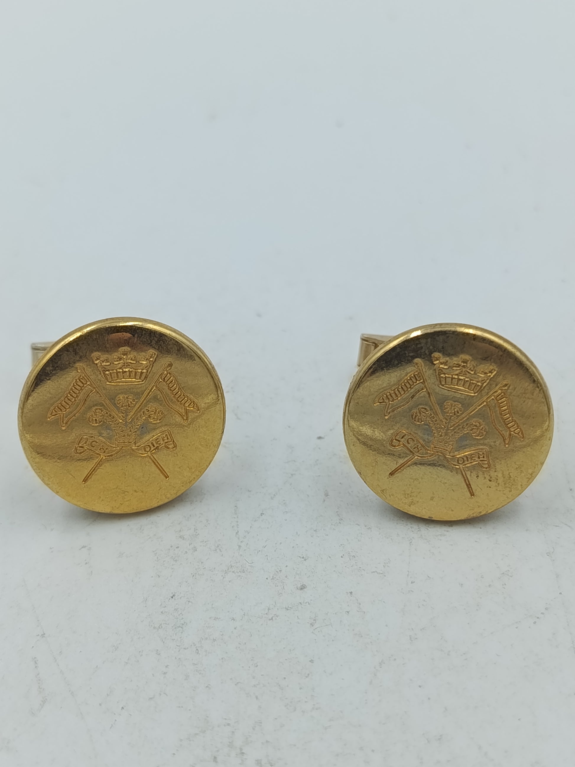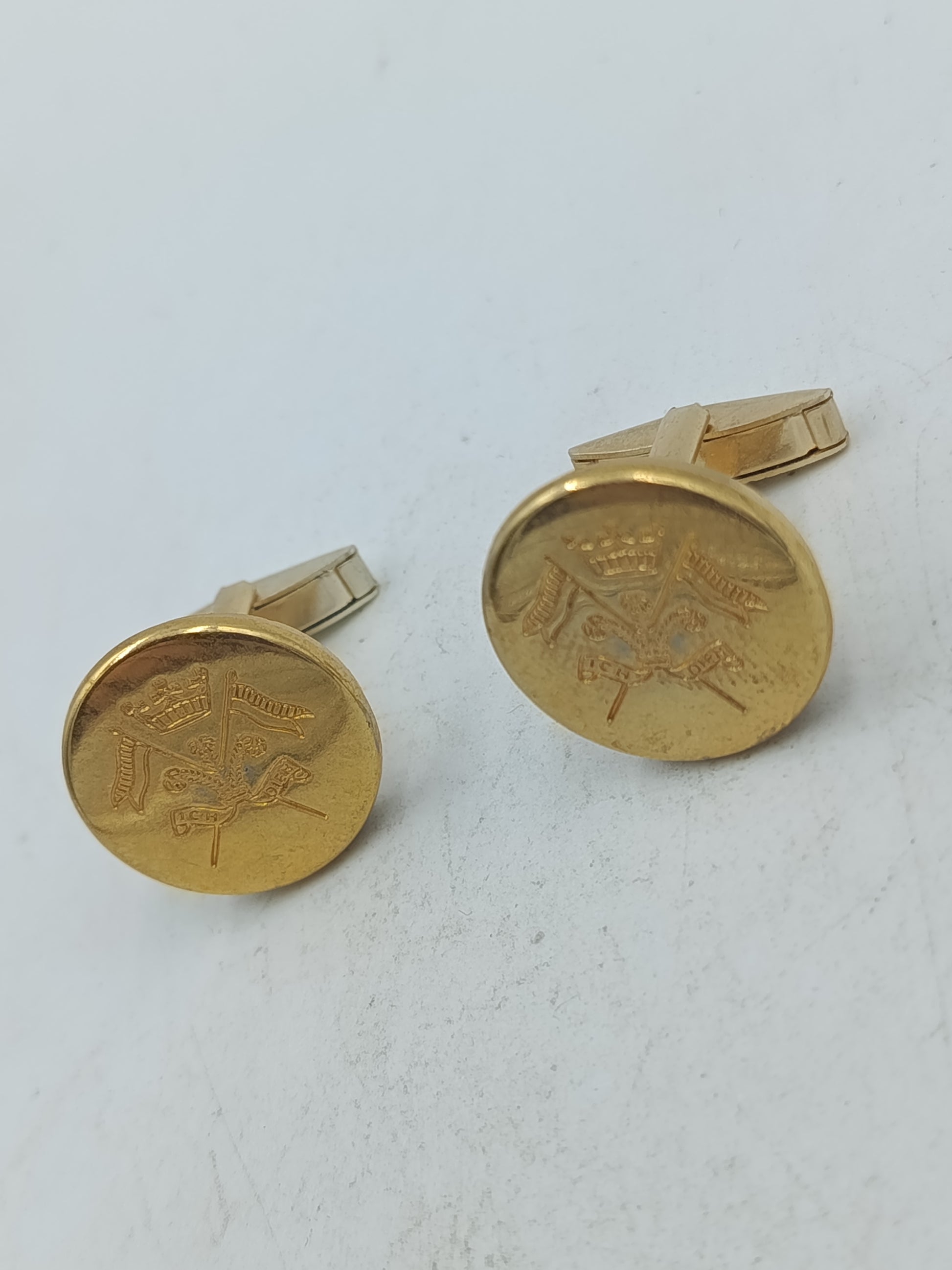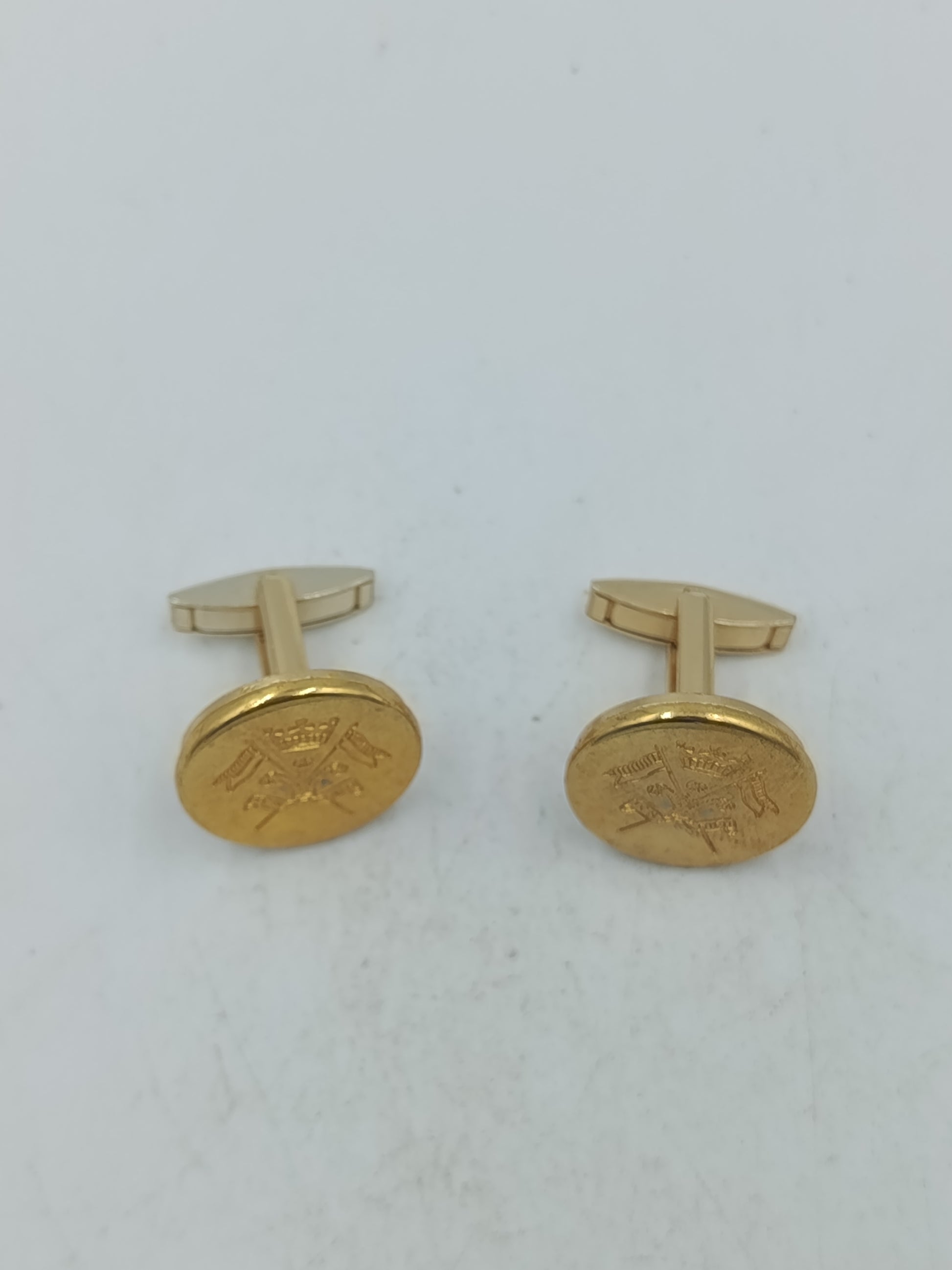 Runde Manschettenknöpfe in Goldoptik mit klassischem Wappenmotiv im zeitlosen Stil