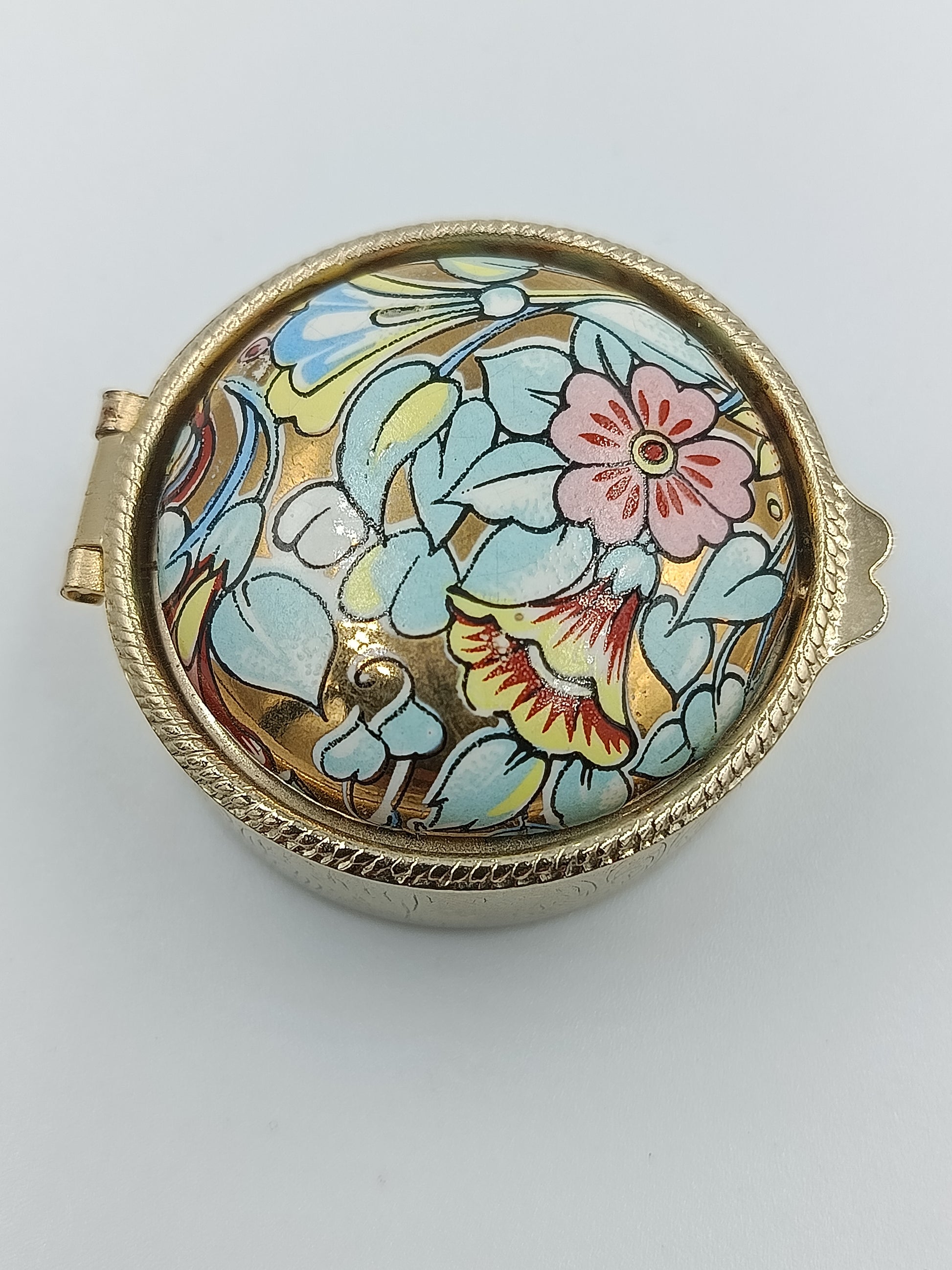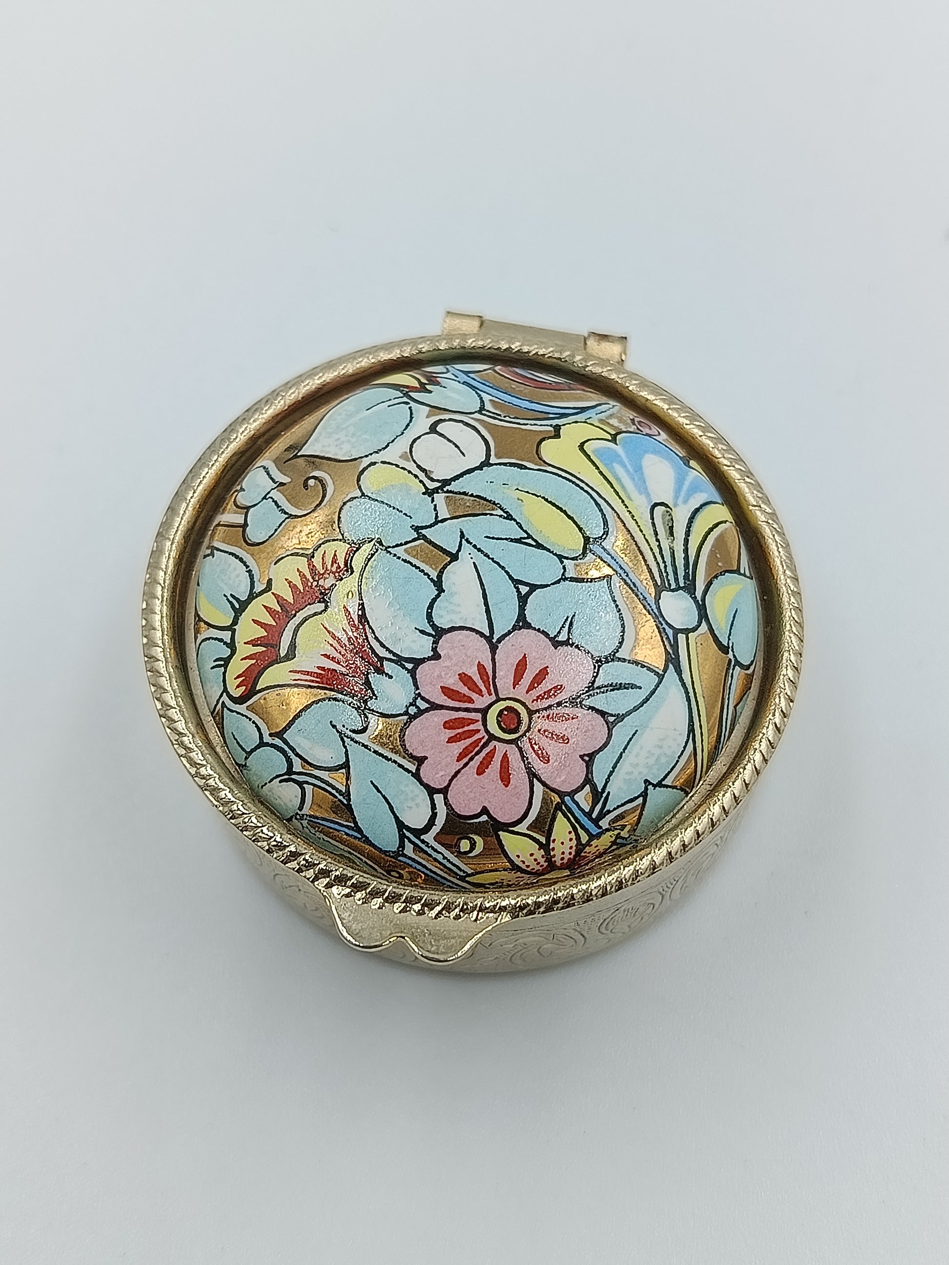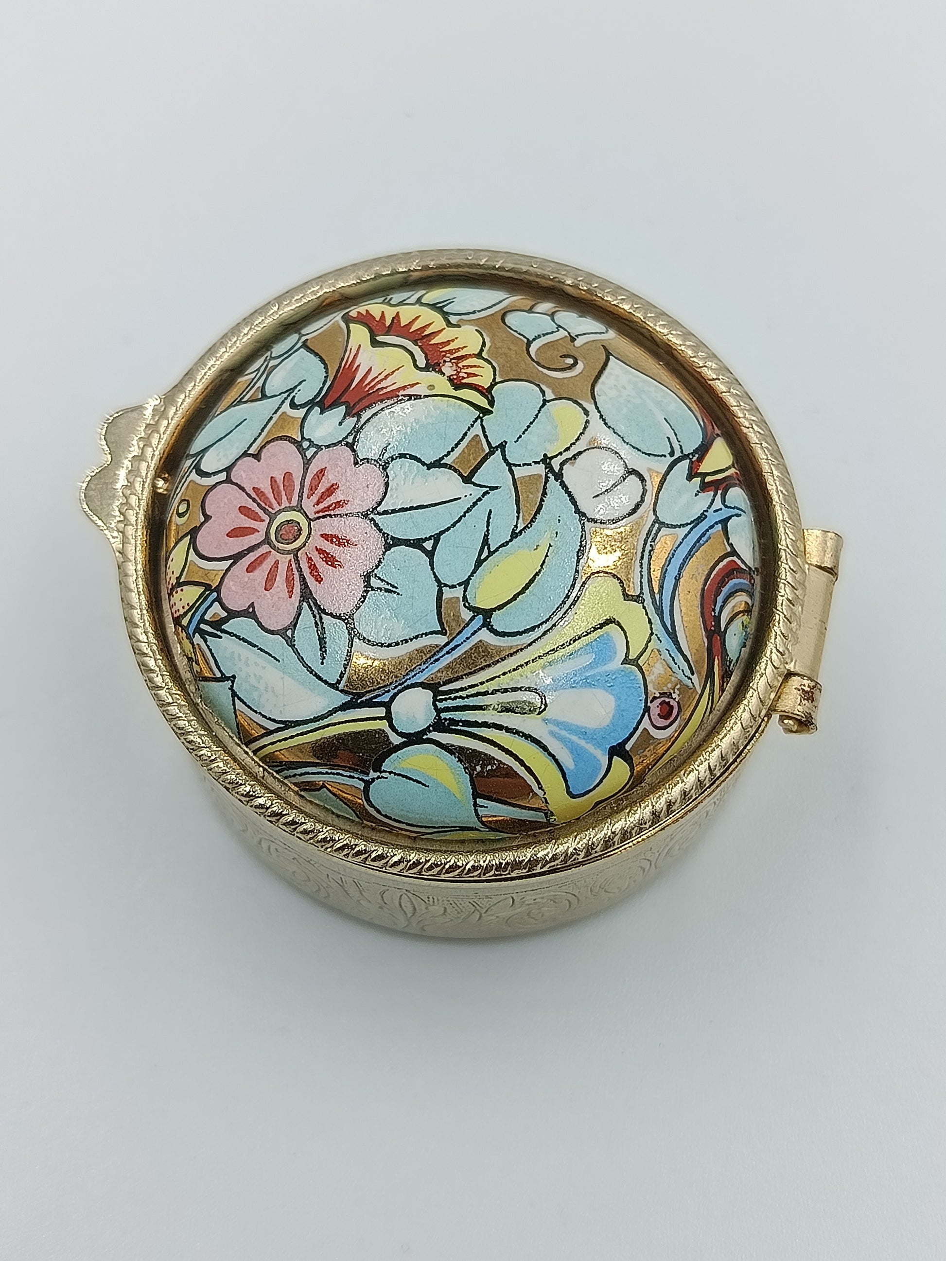 Runde Schmuckdose mit floraler Emaille