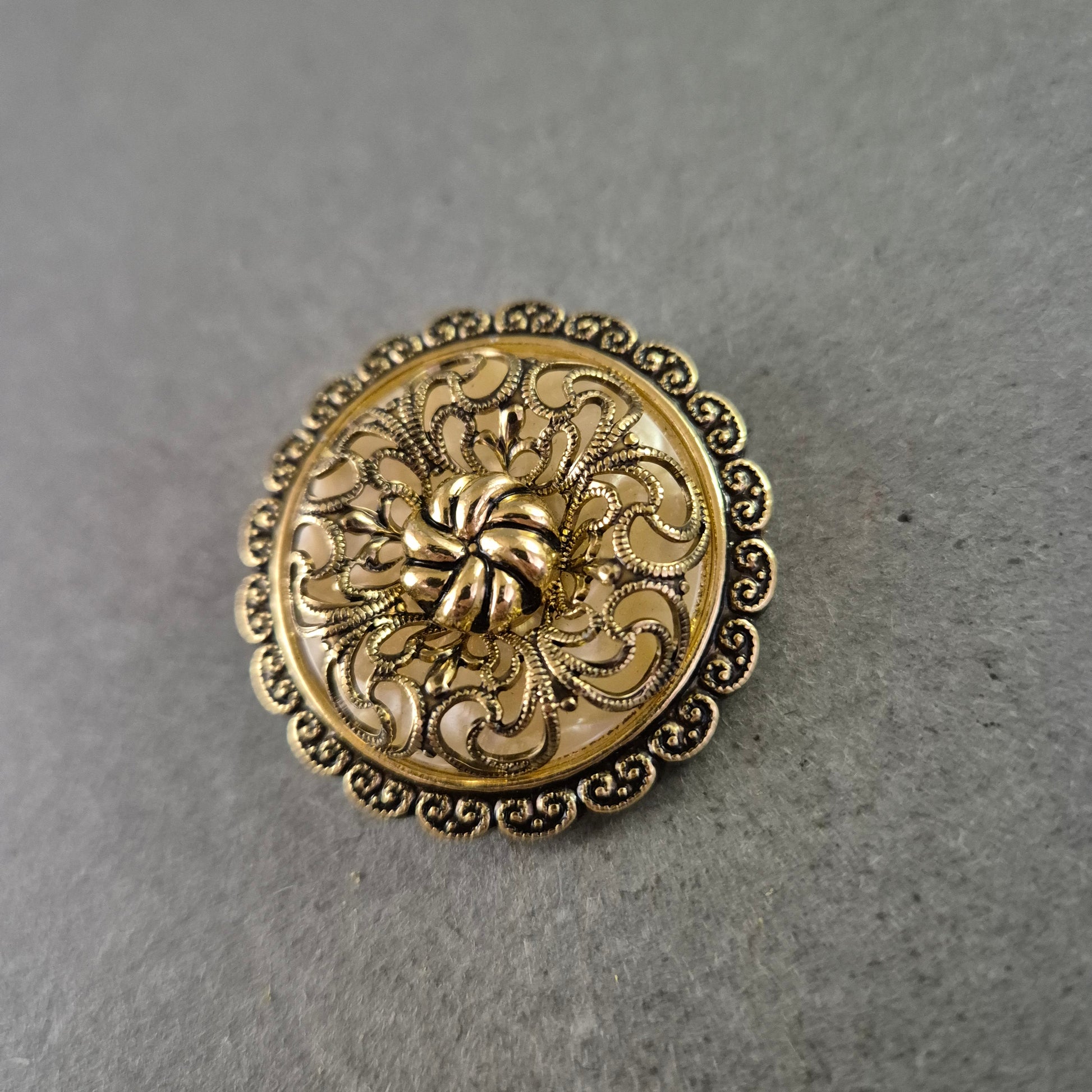 Runde Vintage Brosche – Filigranes Golddesign mit Rosette