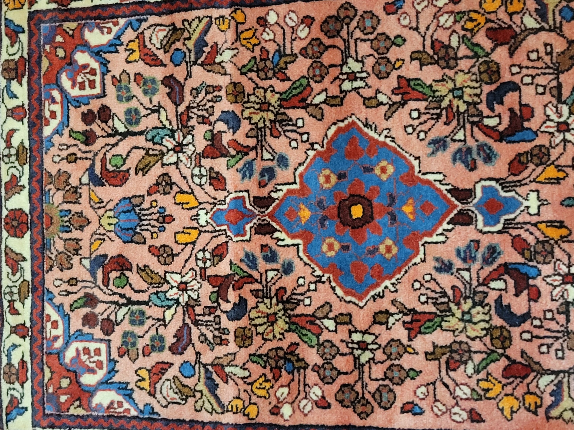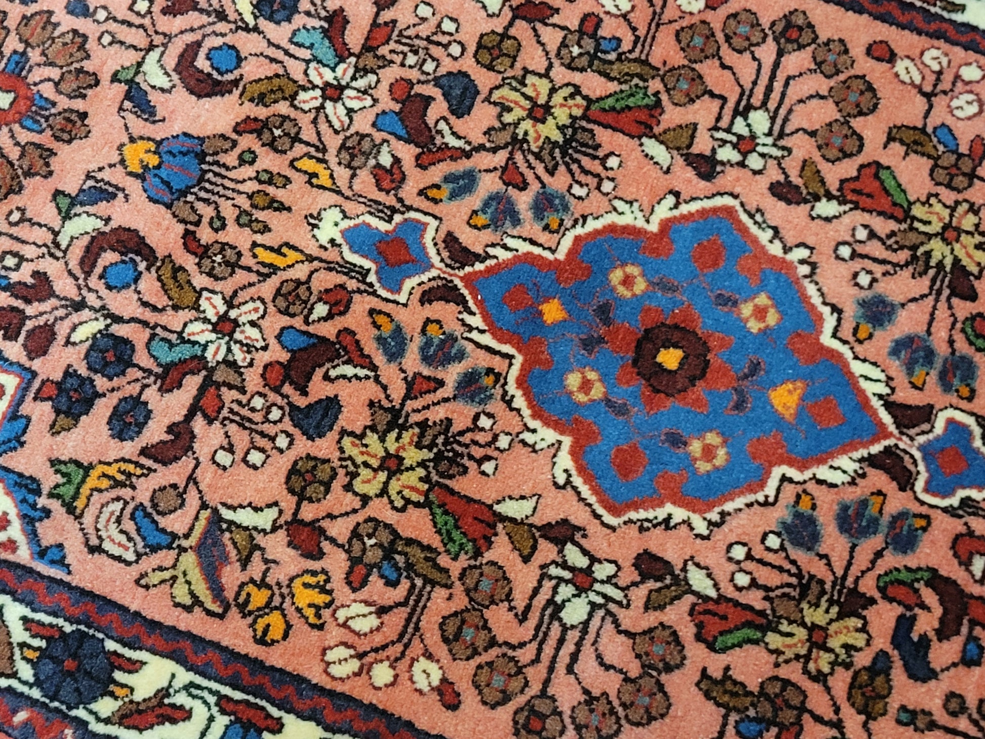 • Zentrales Medaillon in kräftigem Blau mit kontrastreichen Blüten