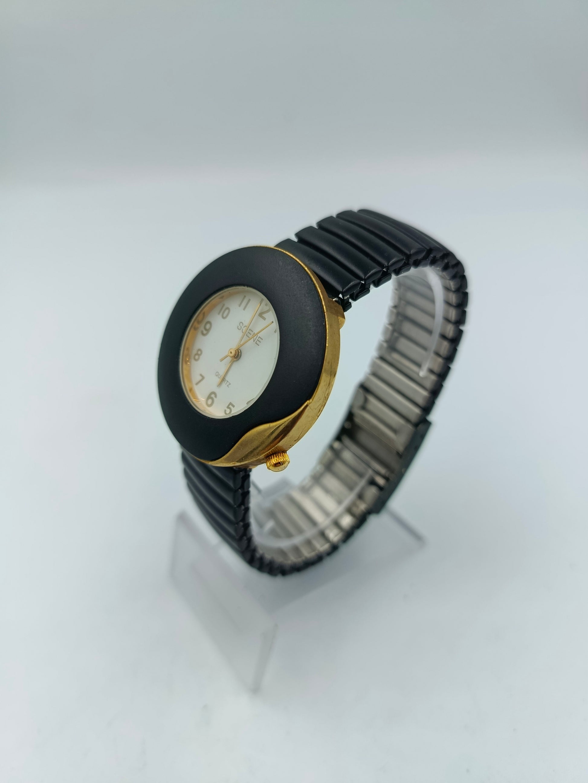 Scene Armbanduhr Schwarz Gold Rundes Design Elastisch