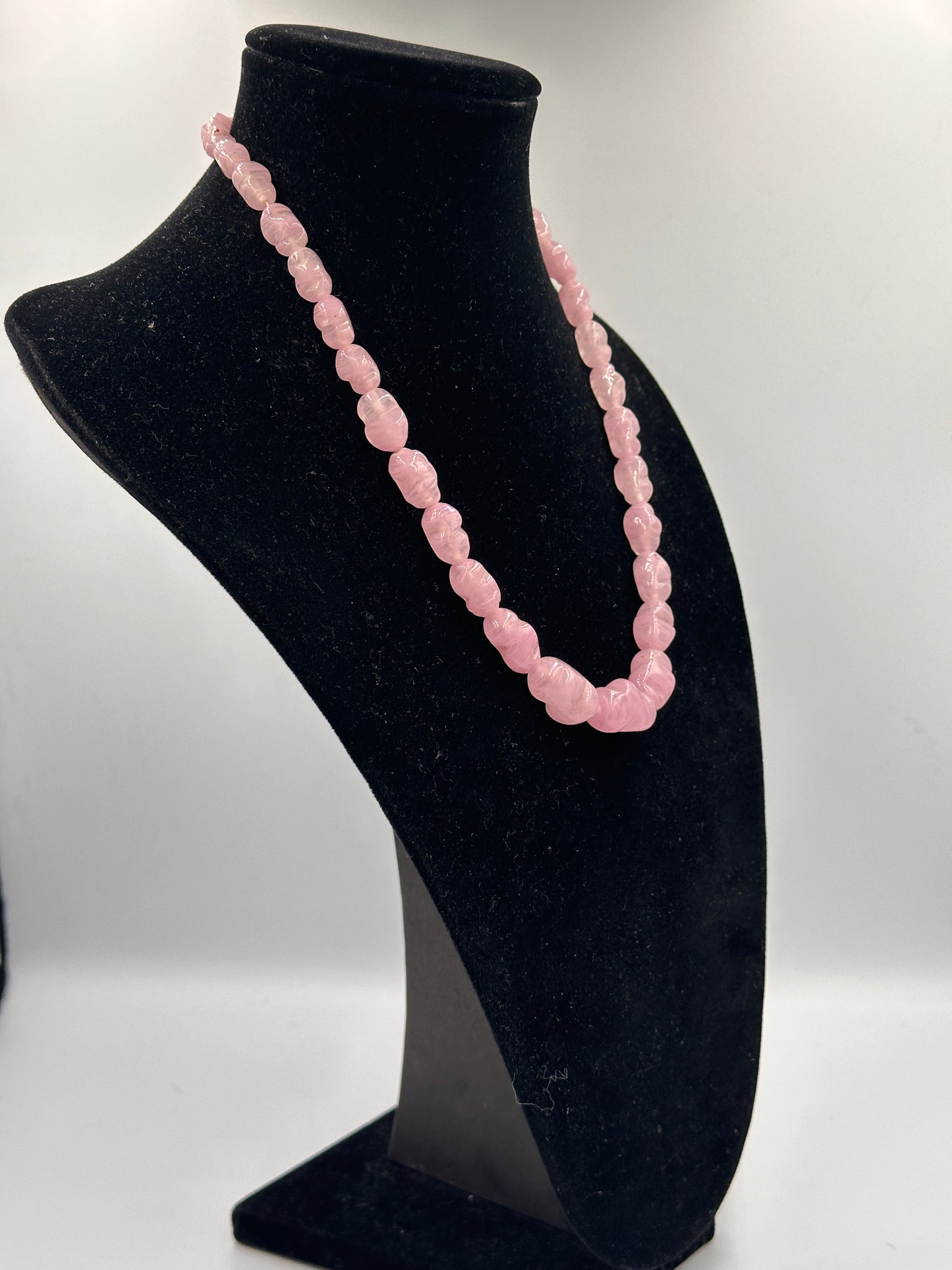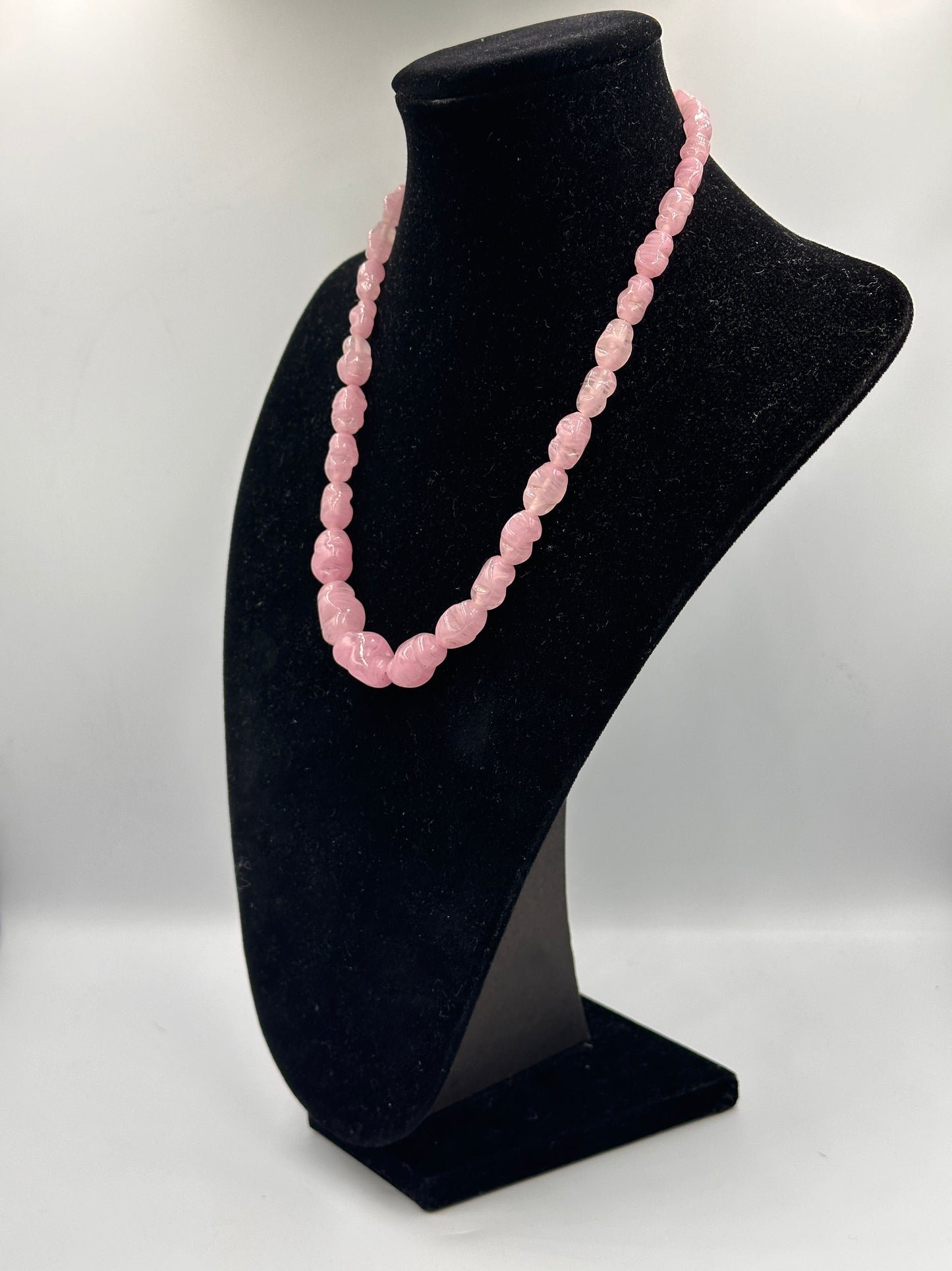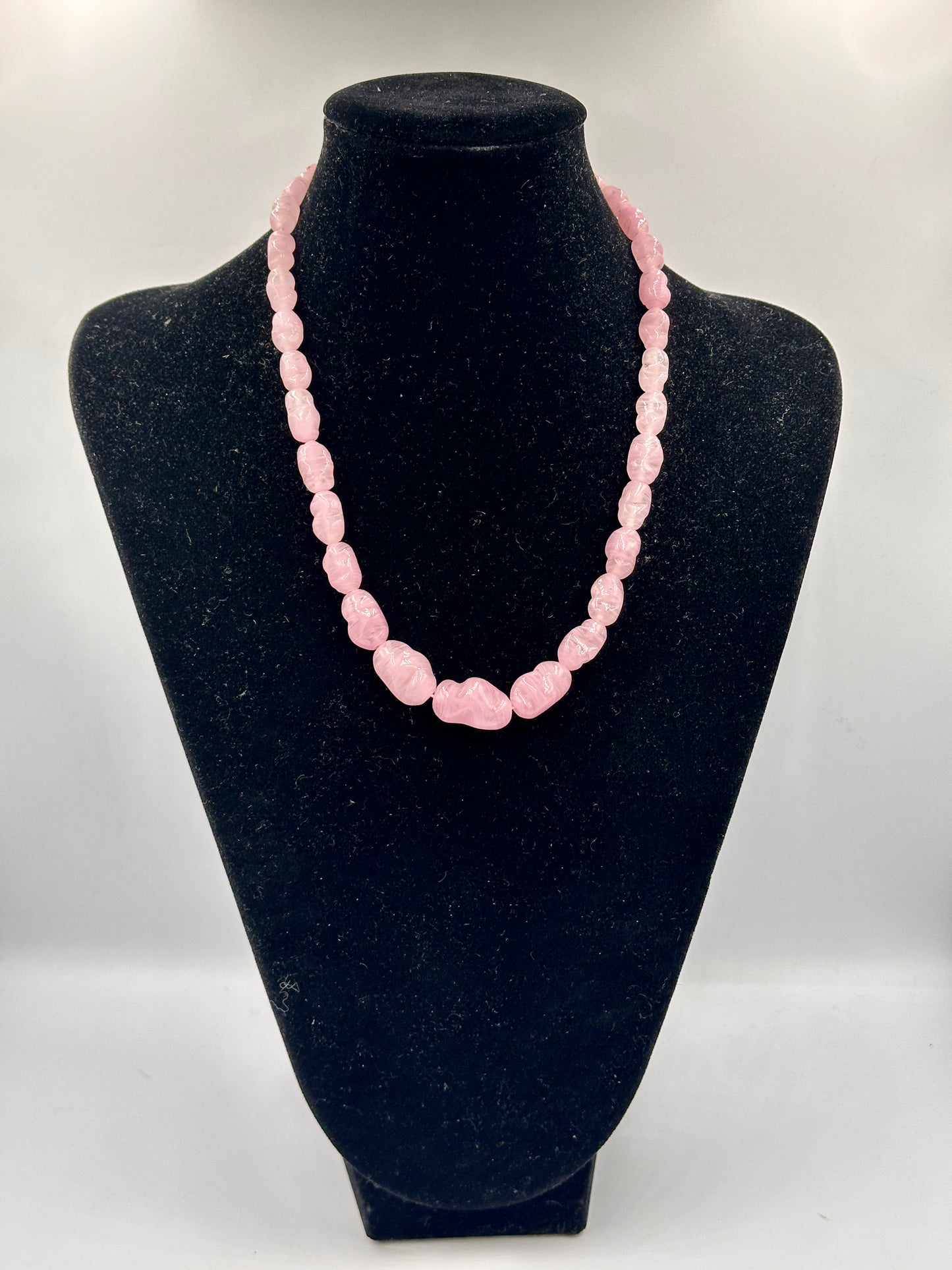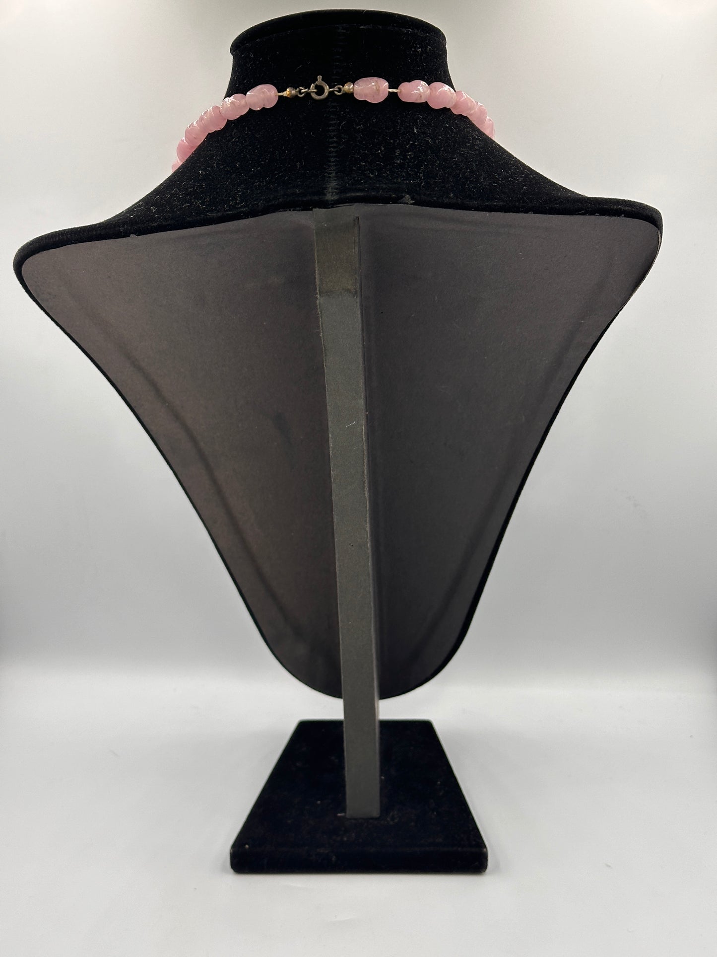 Diese elegante Rosenquarz Halskette besticht durch ihr abgestuftes Design und ist ein wahrer Blickfang. Sie ist 40 cm lang und wiegt 46,79 Gramm. Trotz ihres gebrauchten Zustands befindet sie sich in exzellentem Zustand und strahlt zeitlose Eleganz aus.