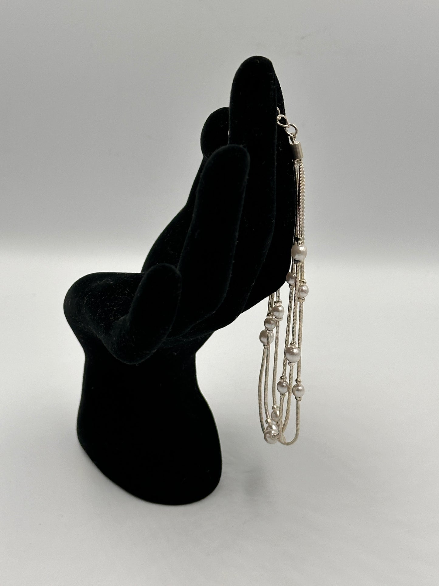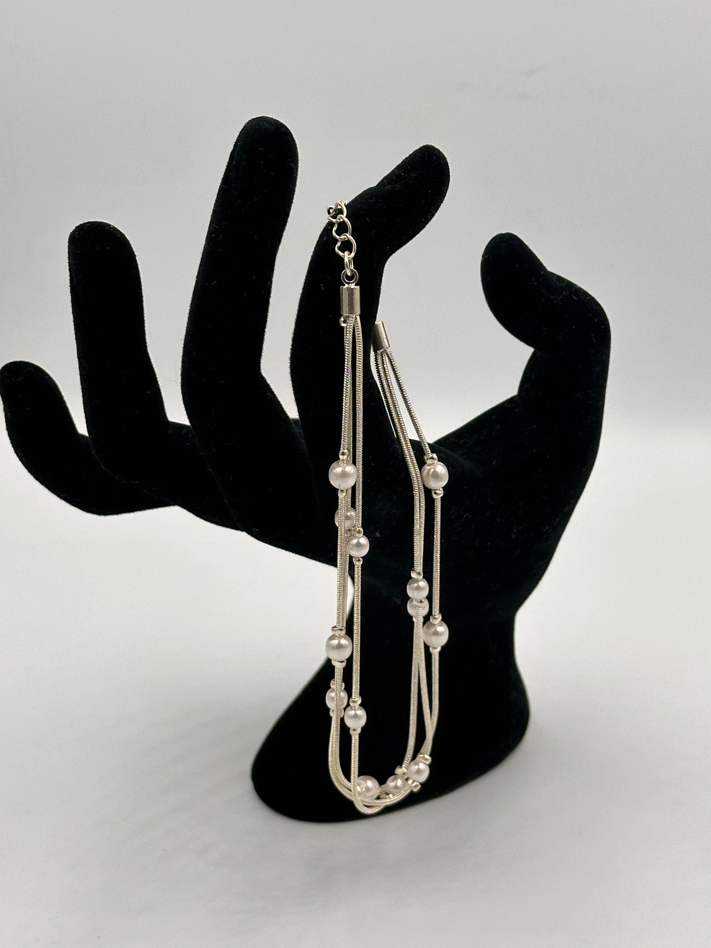 Verleihen Sie Ihrem Handgelenk mit diesem eleganten 3-Strang-Seilketten Armband einen Hauch von Raffinesse. Jede Perle ist sorgfältig in das Design integriert, um eine subtile, aber auffällige Wirkung zu erzielen.