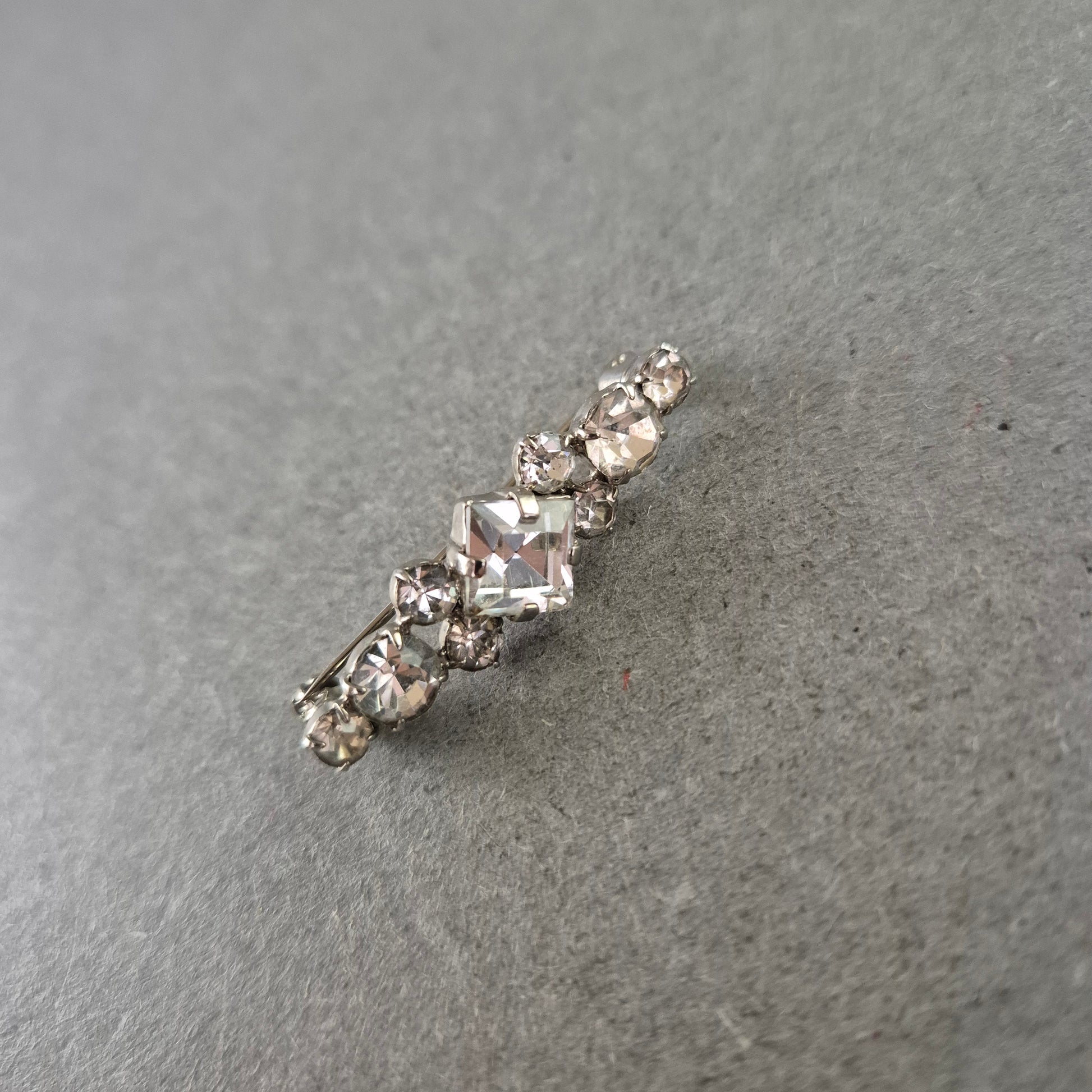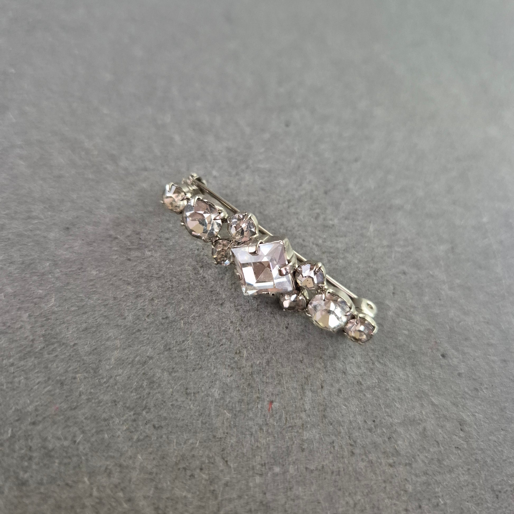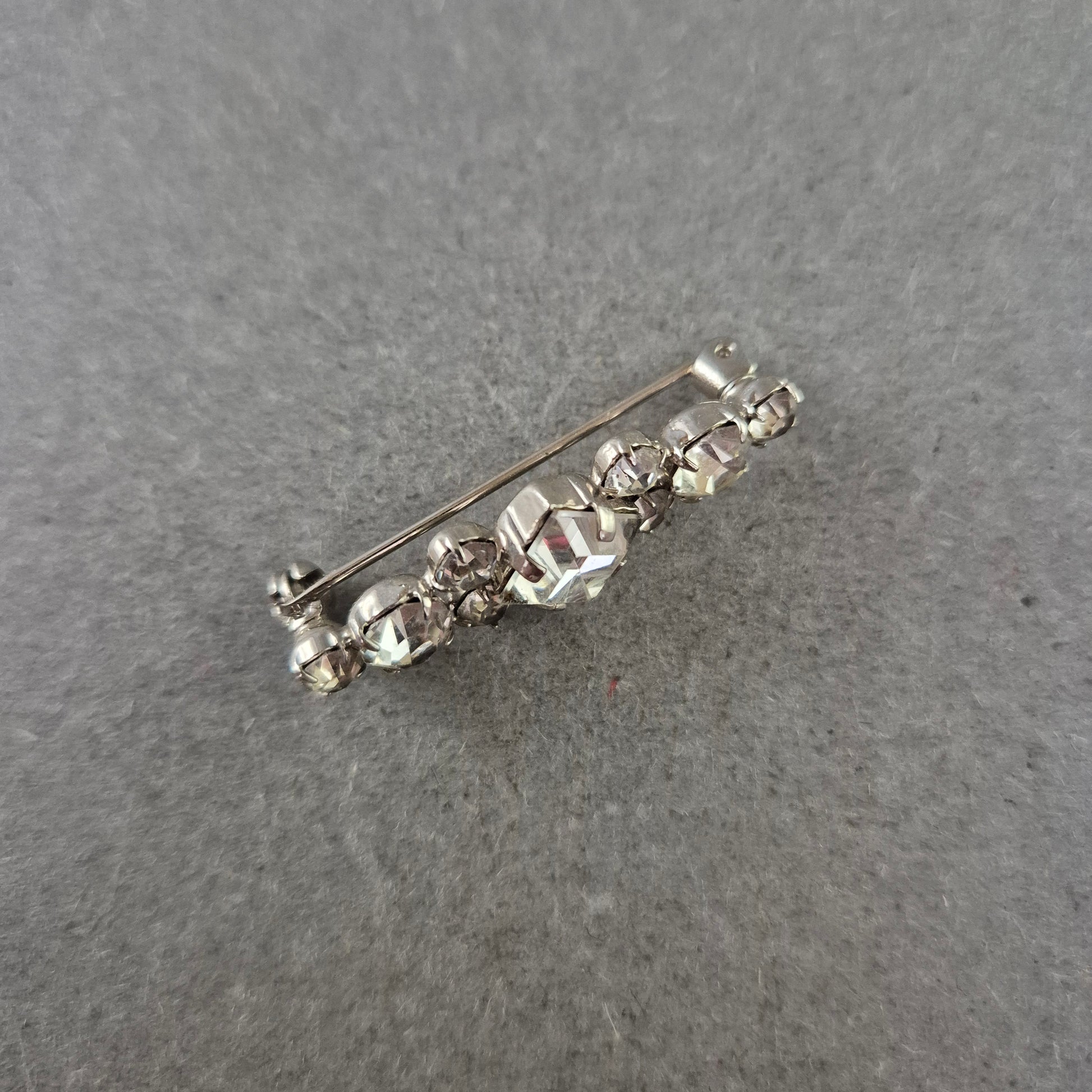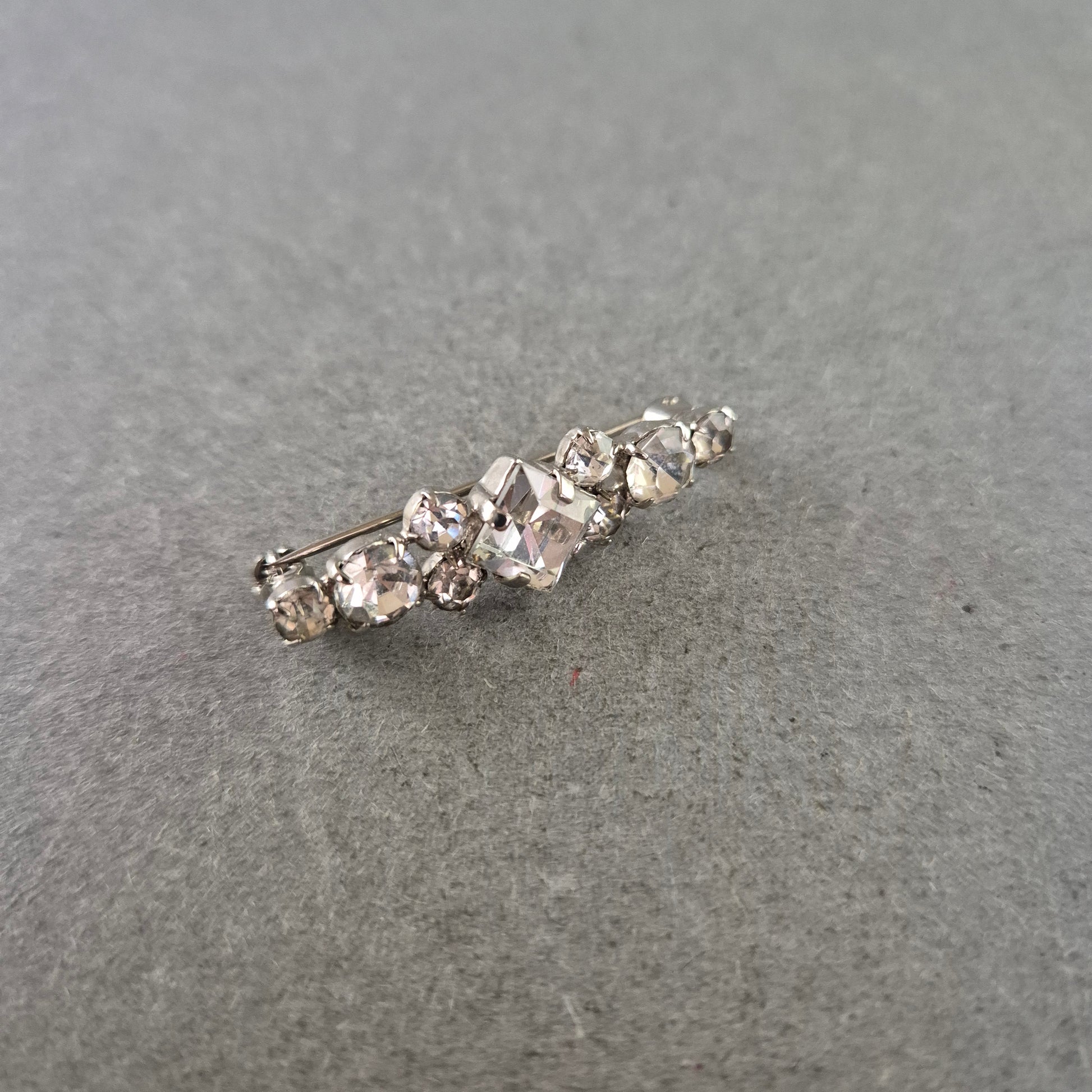 Schlichte Vintage-Brosche mit klaren Strasssteinen – Silberfarbener Akzent