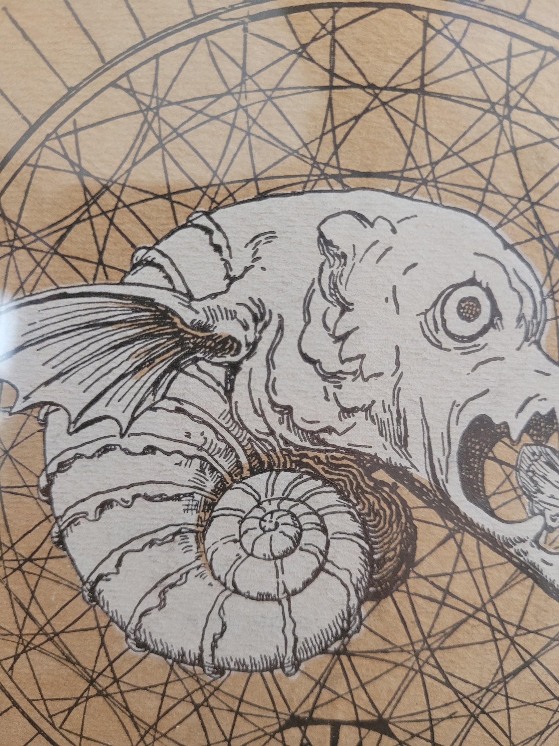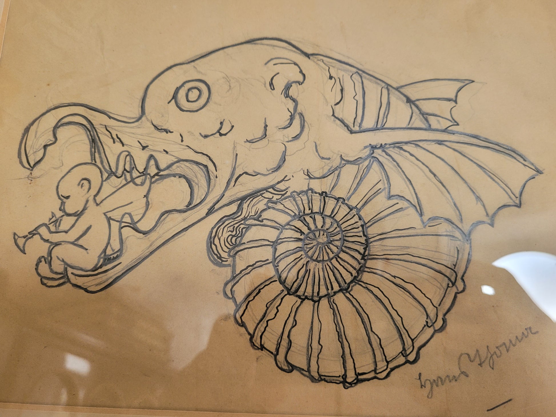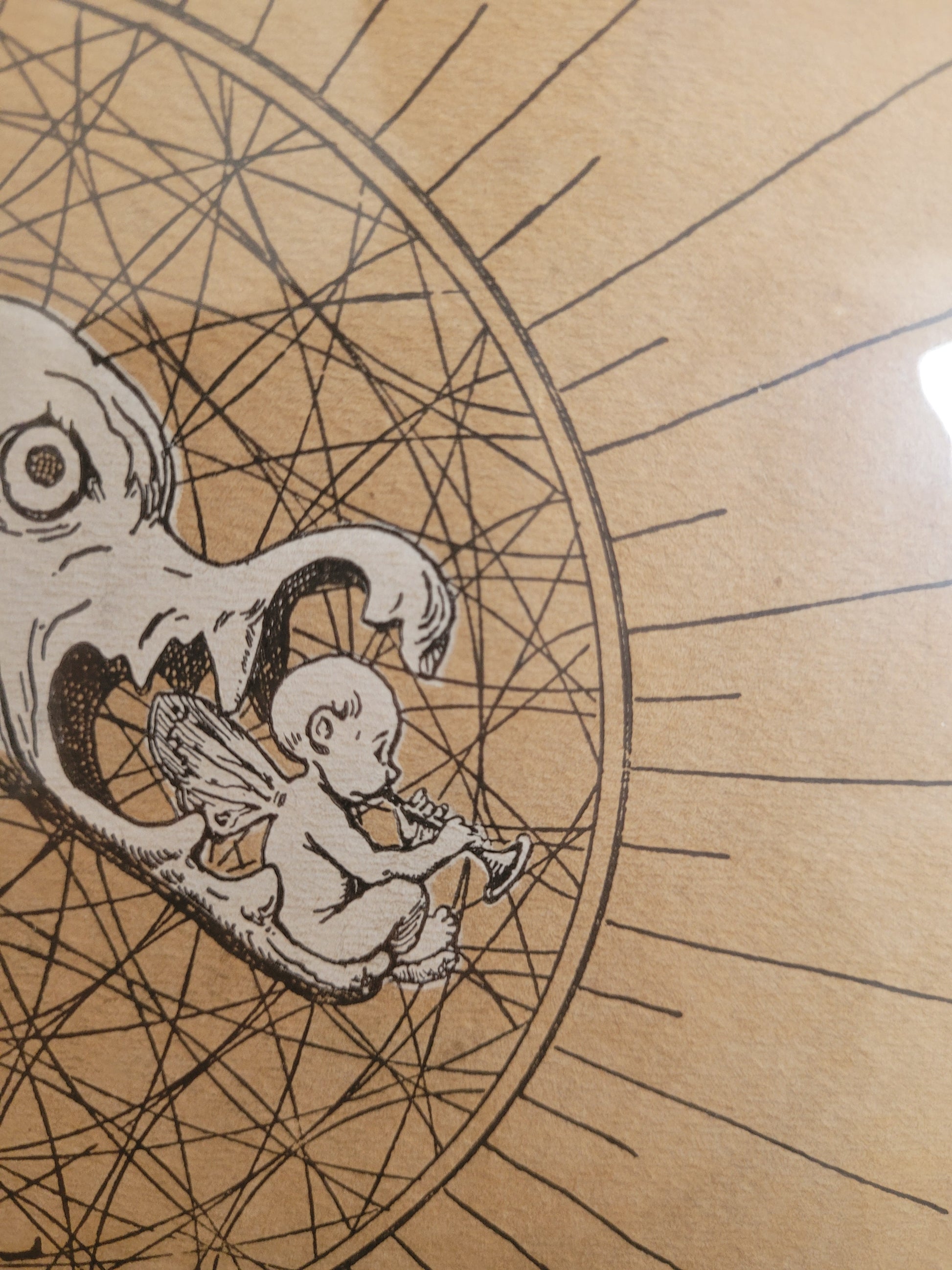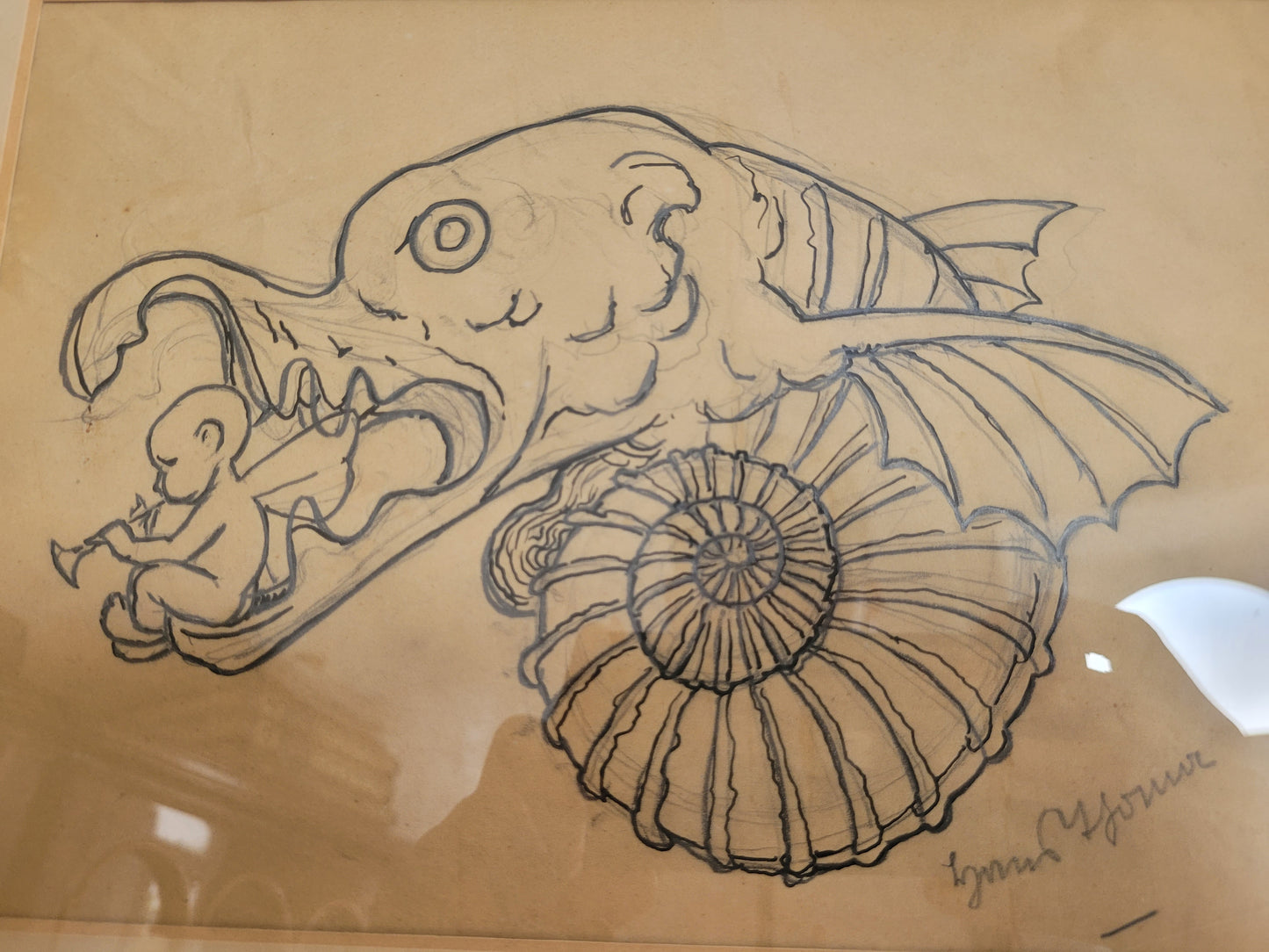 Tauchen Sie ein in die fantastische Bildwelt von Hans Thoma: Diese außergewöhnliche, handsignierte Radierung zeigt ein geflügeltes Schneckenfabelwesen in Begleitung eines Putto – eine märchenhafte Szene voller Anmut, Ironie und geheimnisvoller Symbolik.