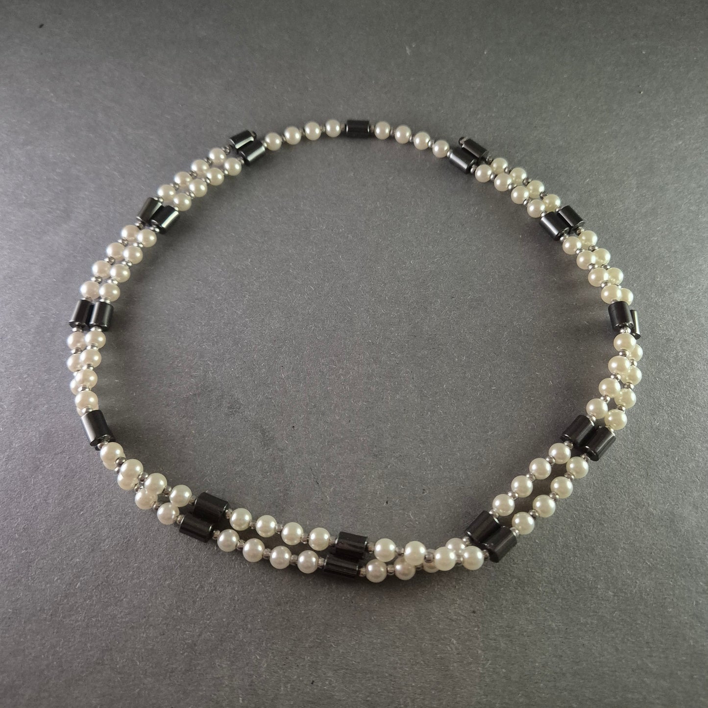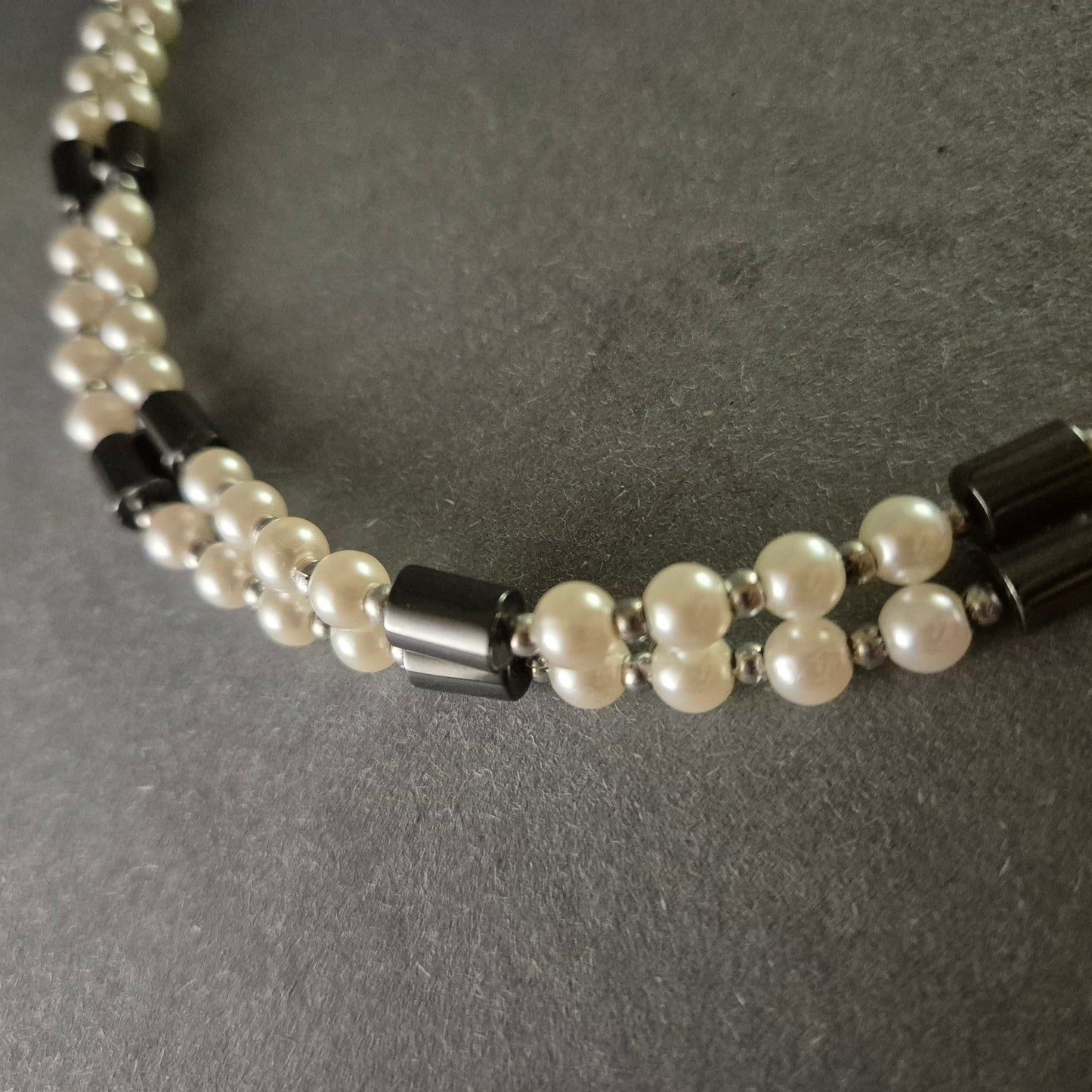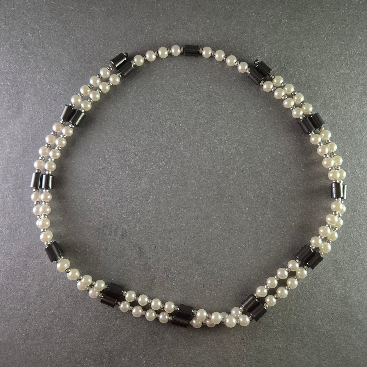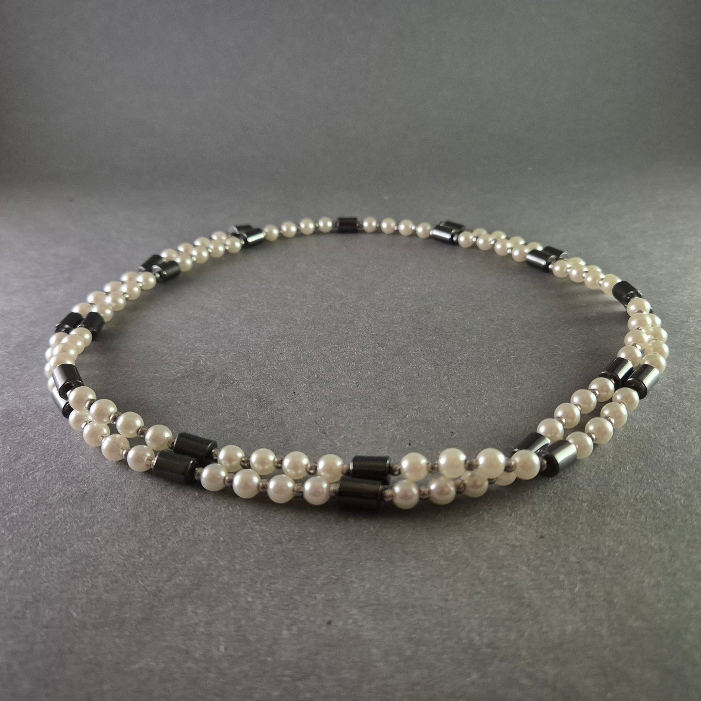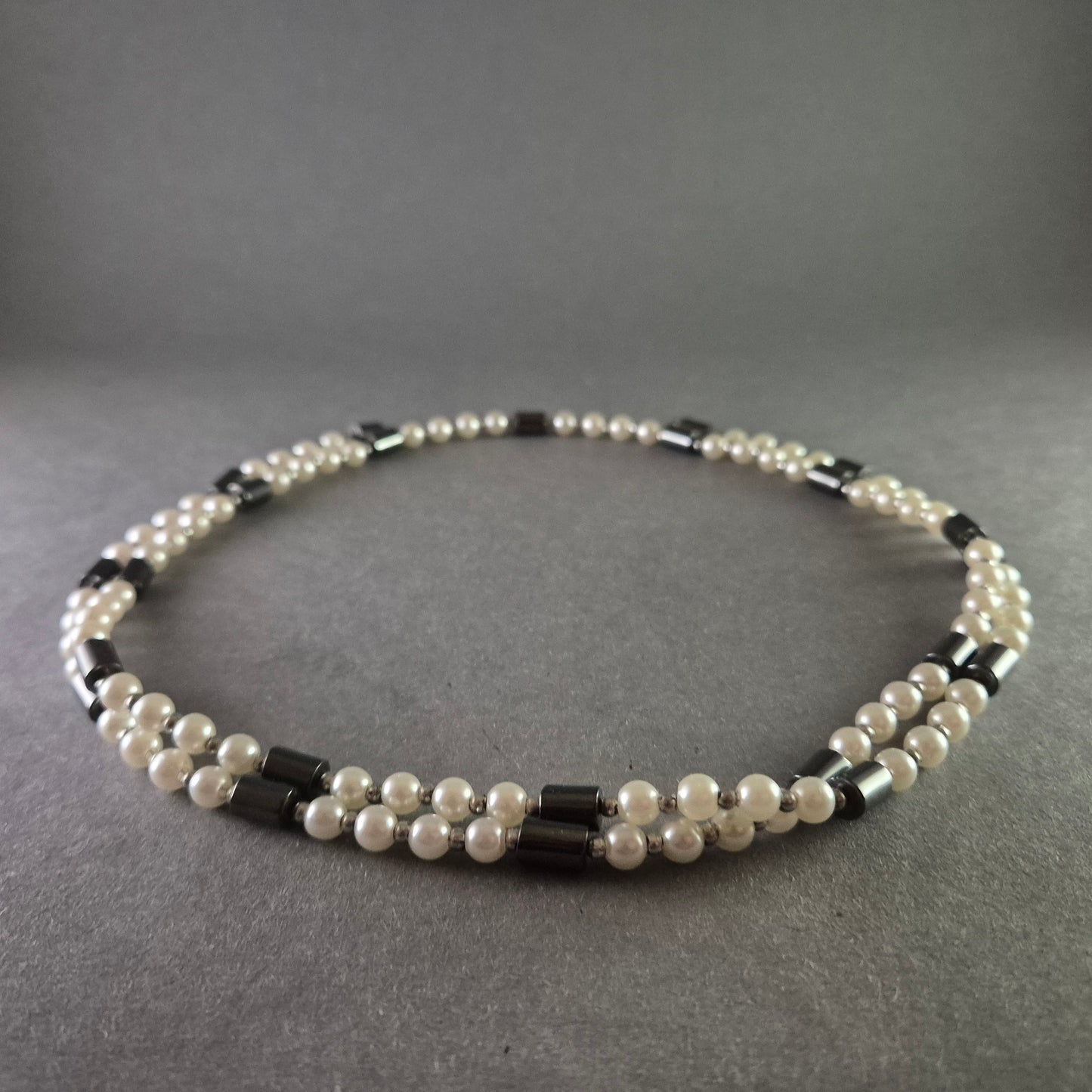 Schwarz-weiße Halskette im zweireihigen Design – Klassisch und modern