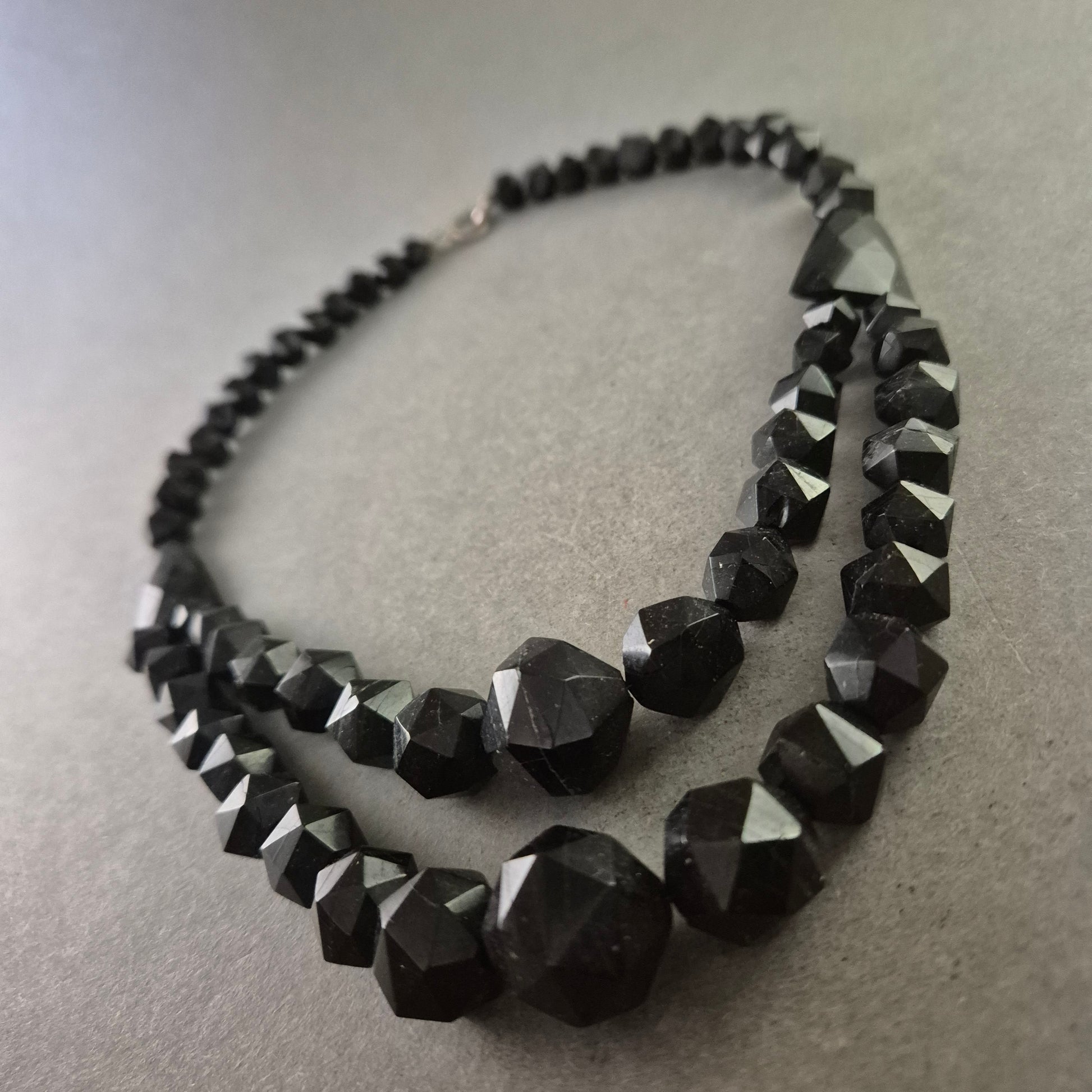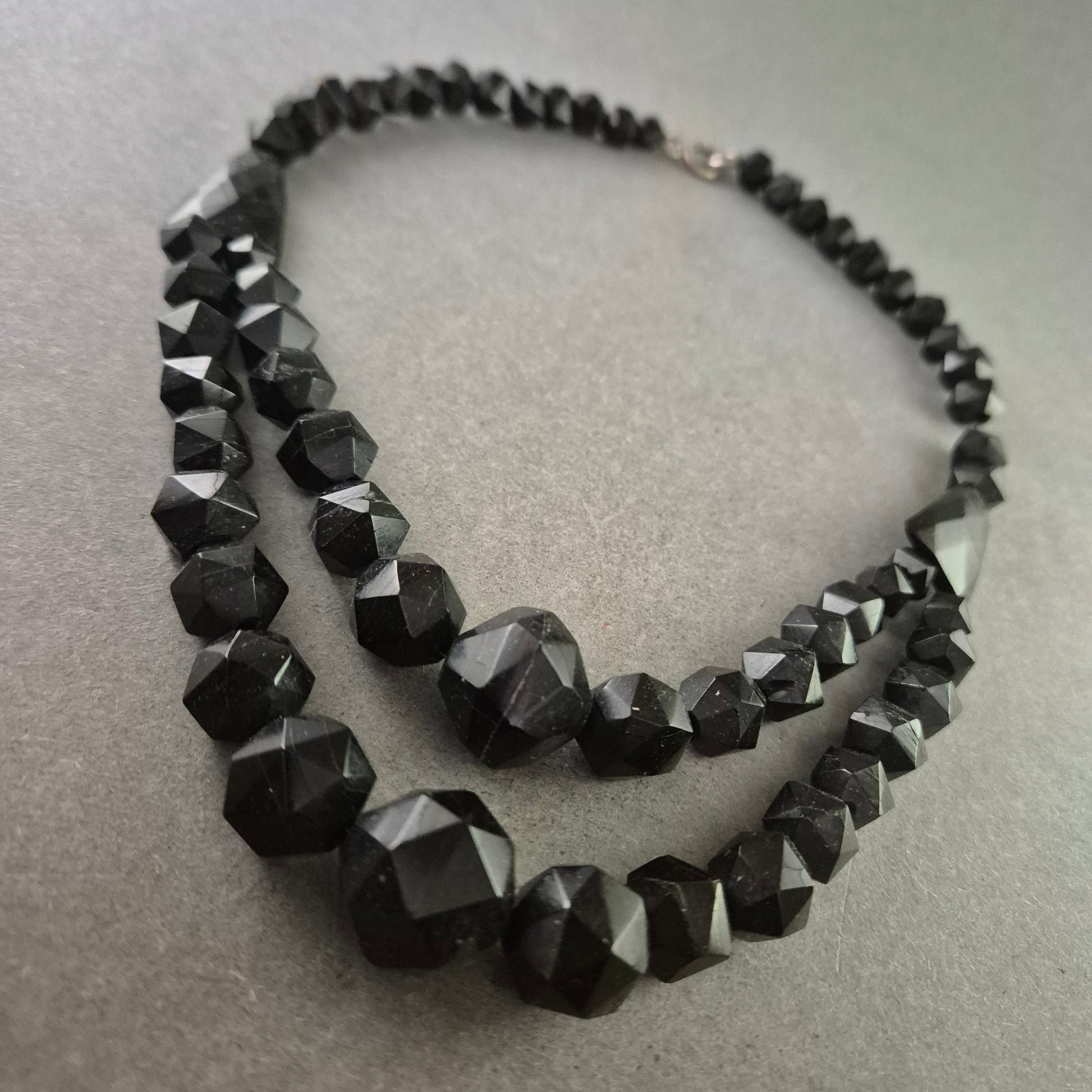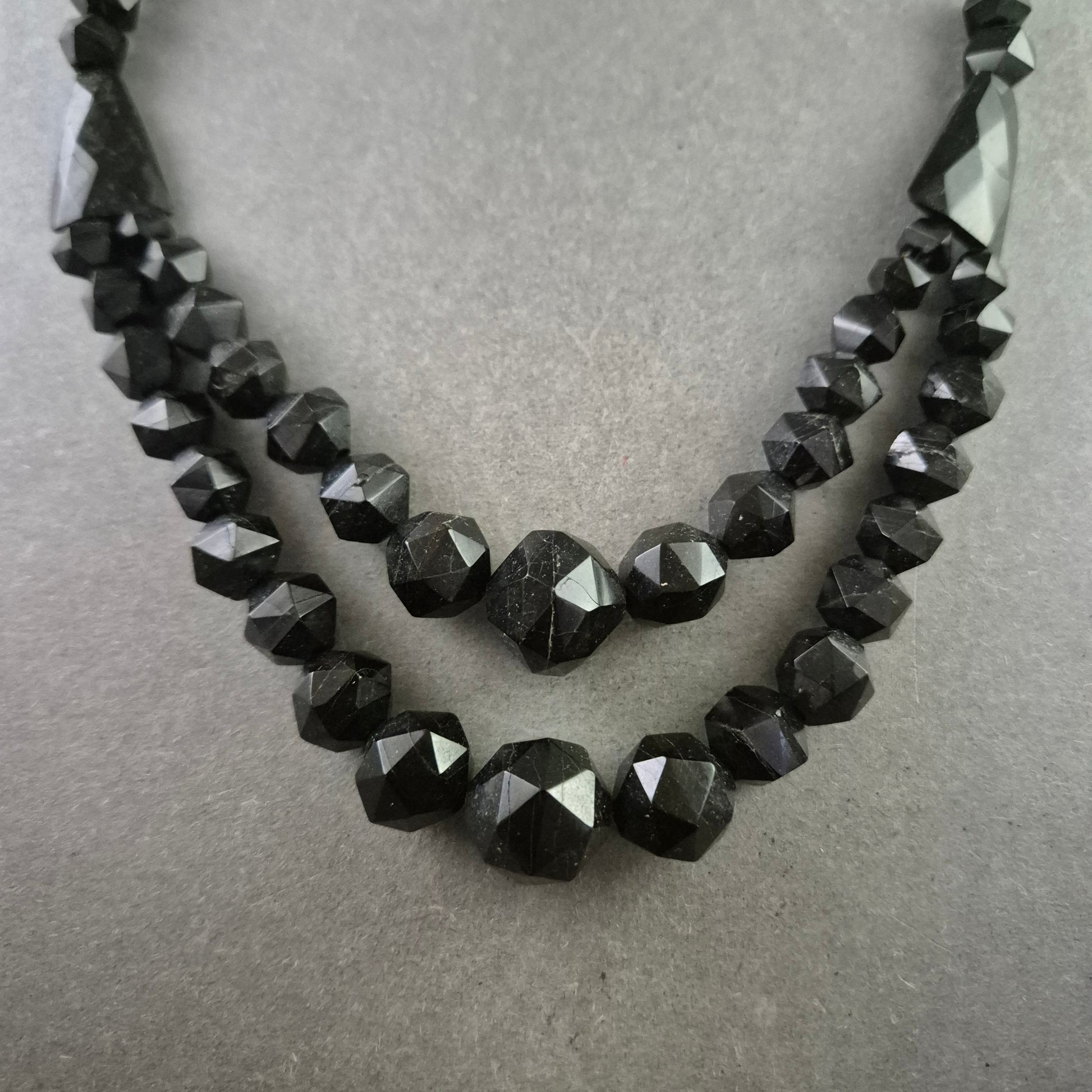 Schwarze Glasperlen Halskette – Zweireihig und facettiert