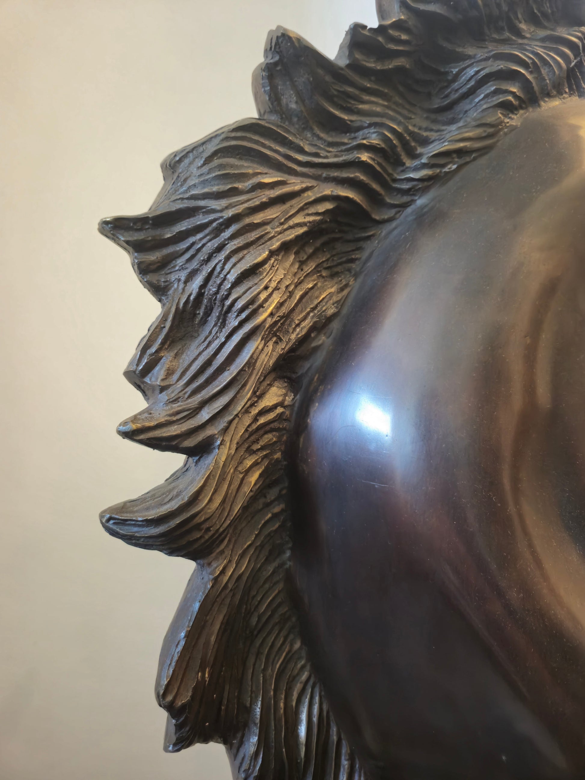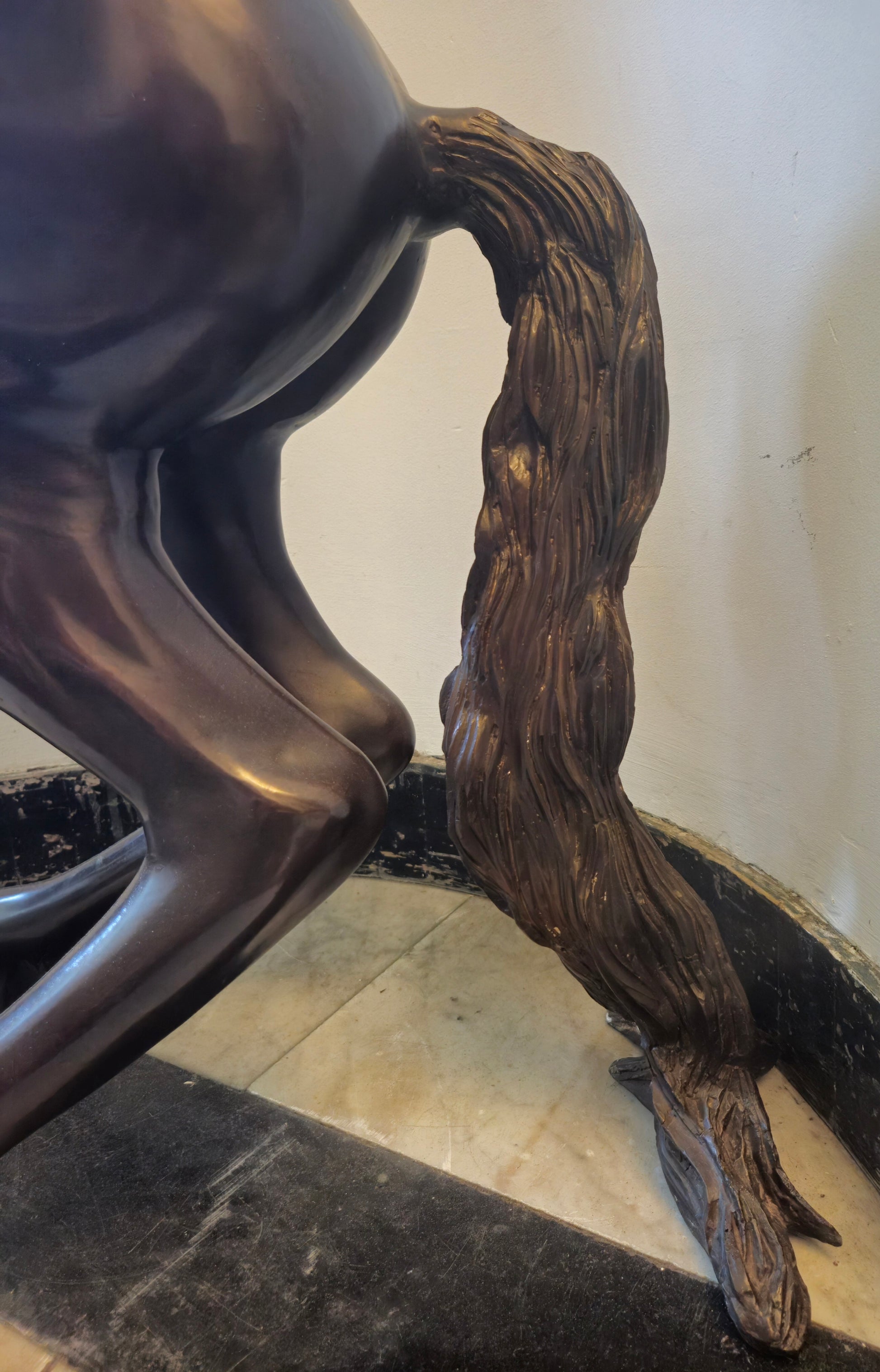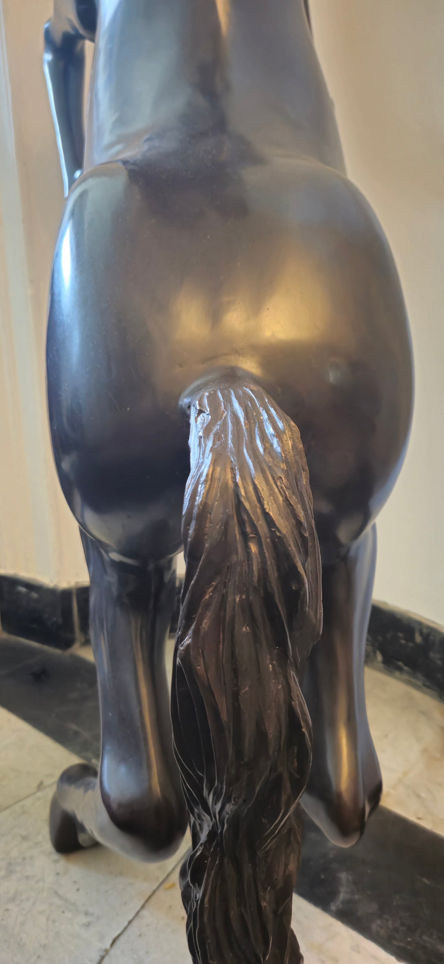 Dank der massiven Ausführung aus schwerer Bronze (ca. 120 kg) eignet sich diese Figur hervorragend für den Garten, Reitstall, Hofeingang oder repräsentative Plätze. Eine Skulptur von außergewöhnlicher Qualität und Ausdrucksstärke für Kenner und Liebhaber edler Pferdekunst
