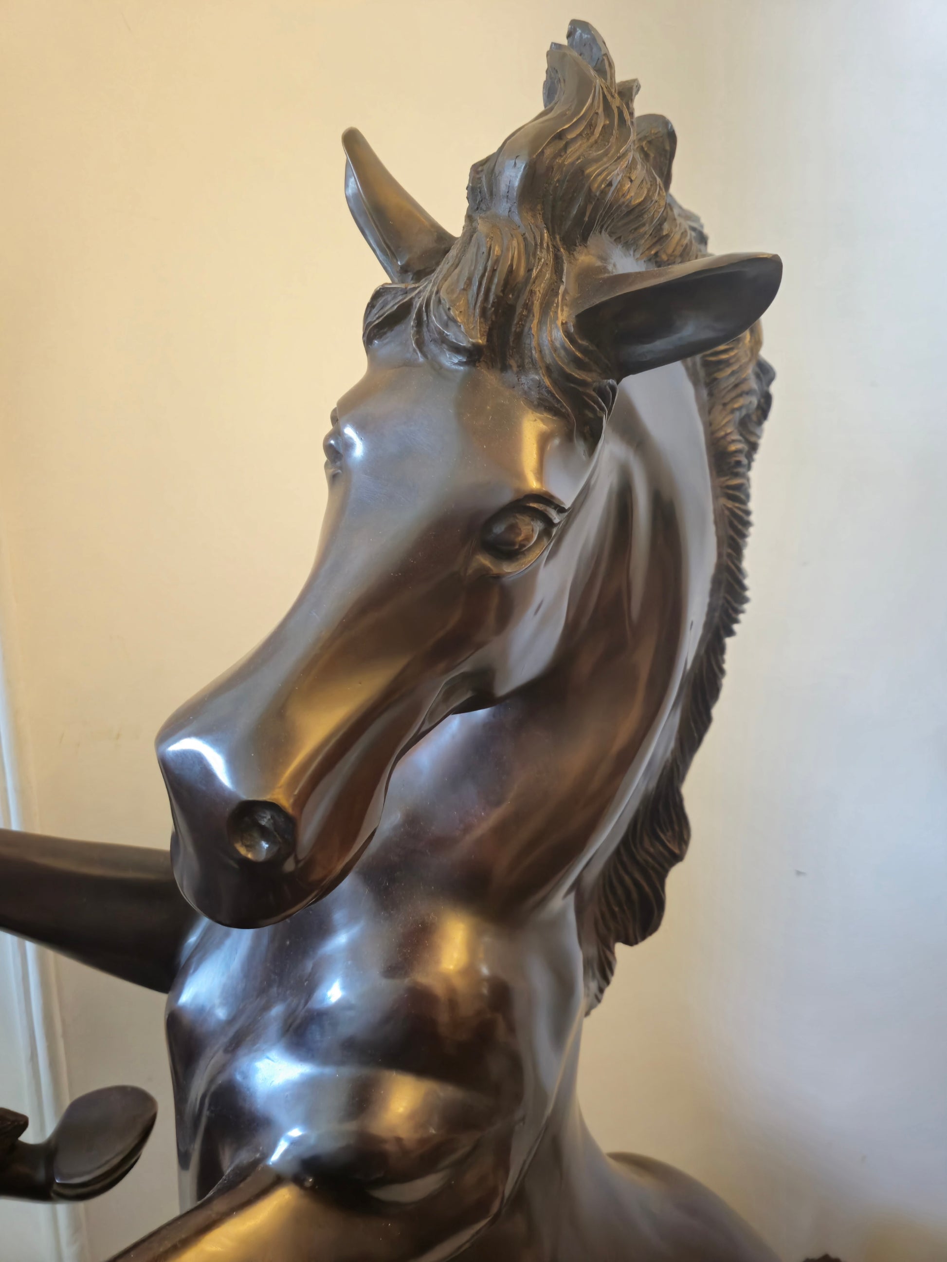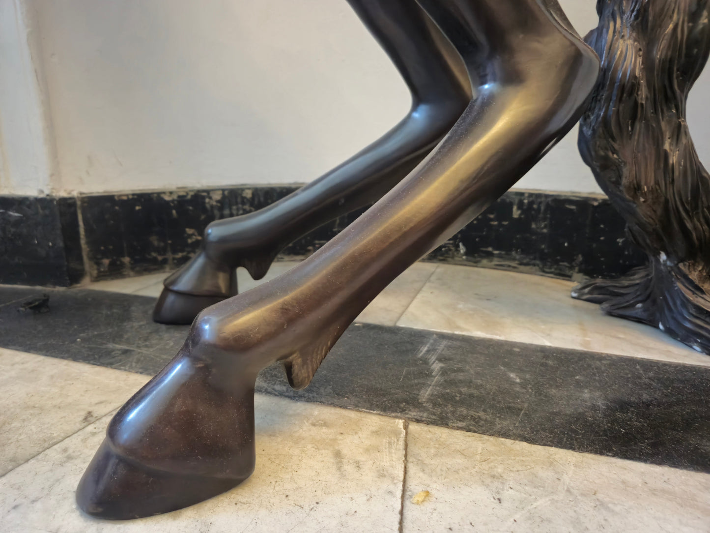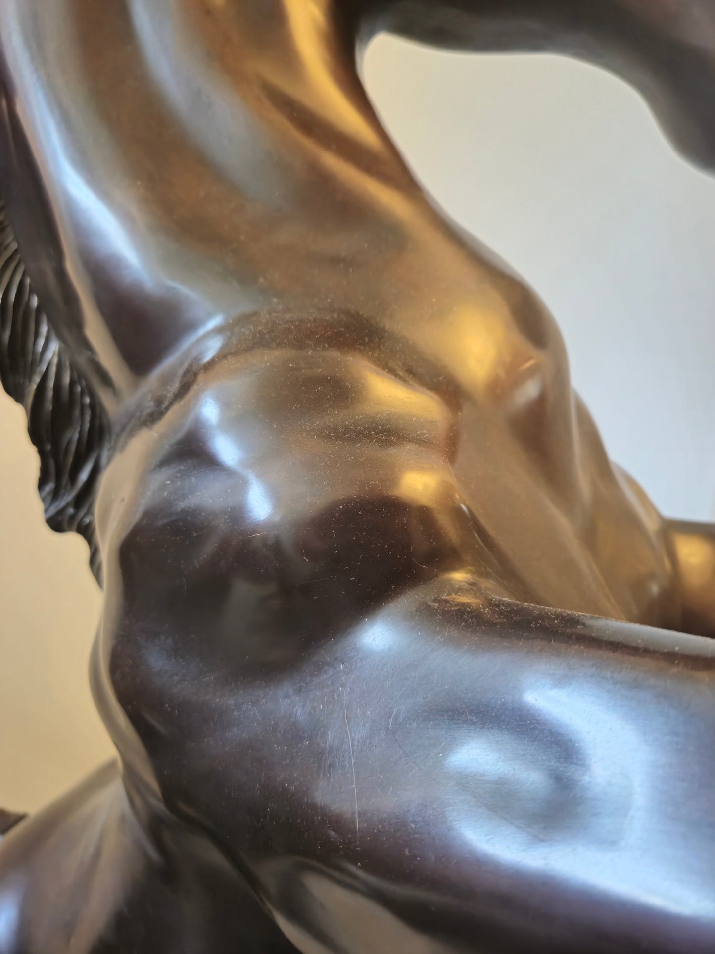 Dank der massiven Ausführung aus schwerer Bronze (ca. 120 kg) eignet sich diese Figur hervorragend für den Garten, Reitstall, Hofeingang oder repräsentative Plätze. Eine Skulptur von außergewöhnlicher Qualität und Ausdrucksstärke für Kenner und Liebhaber edler Pferdekunst