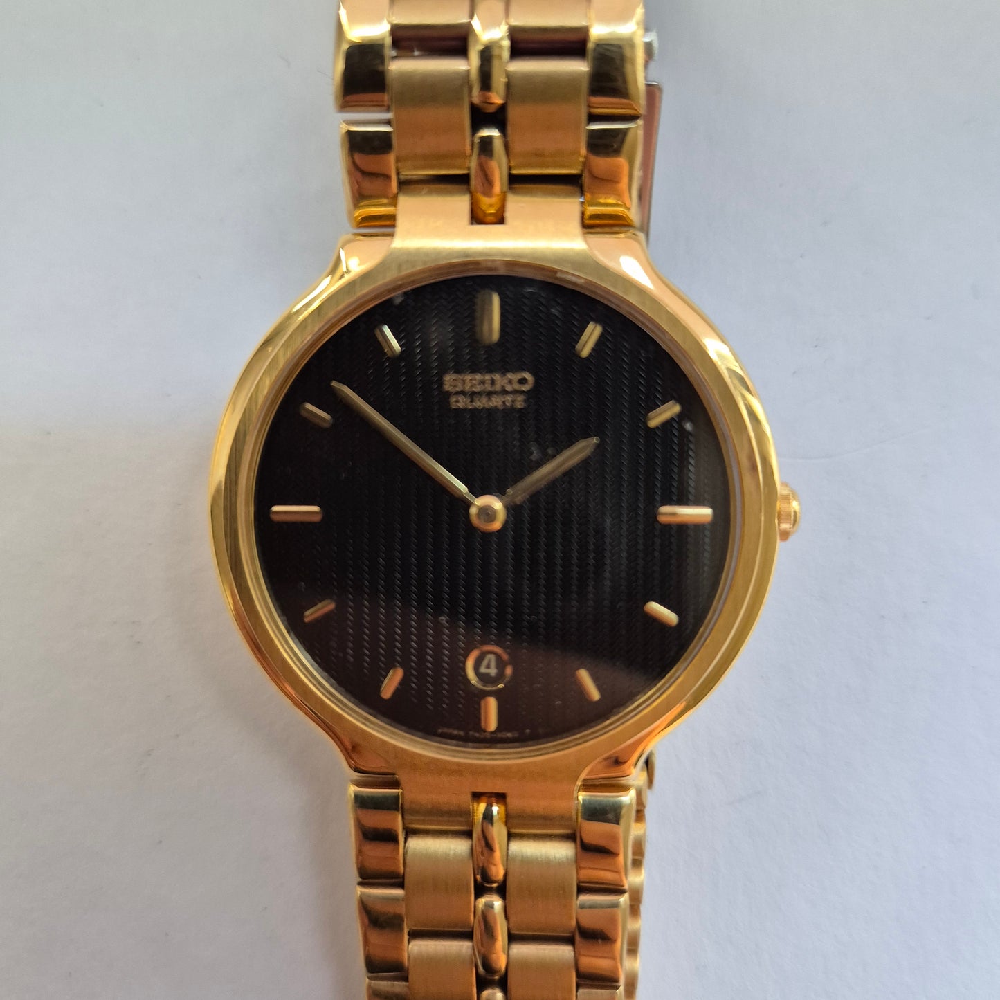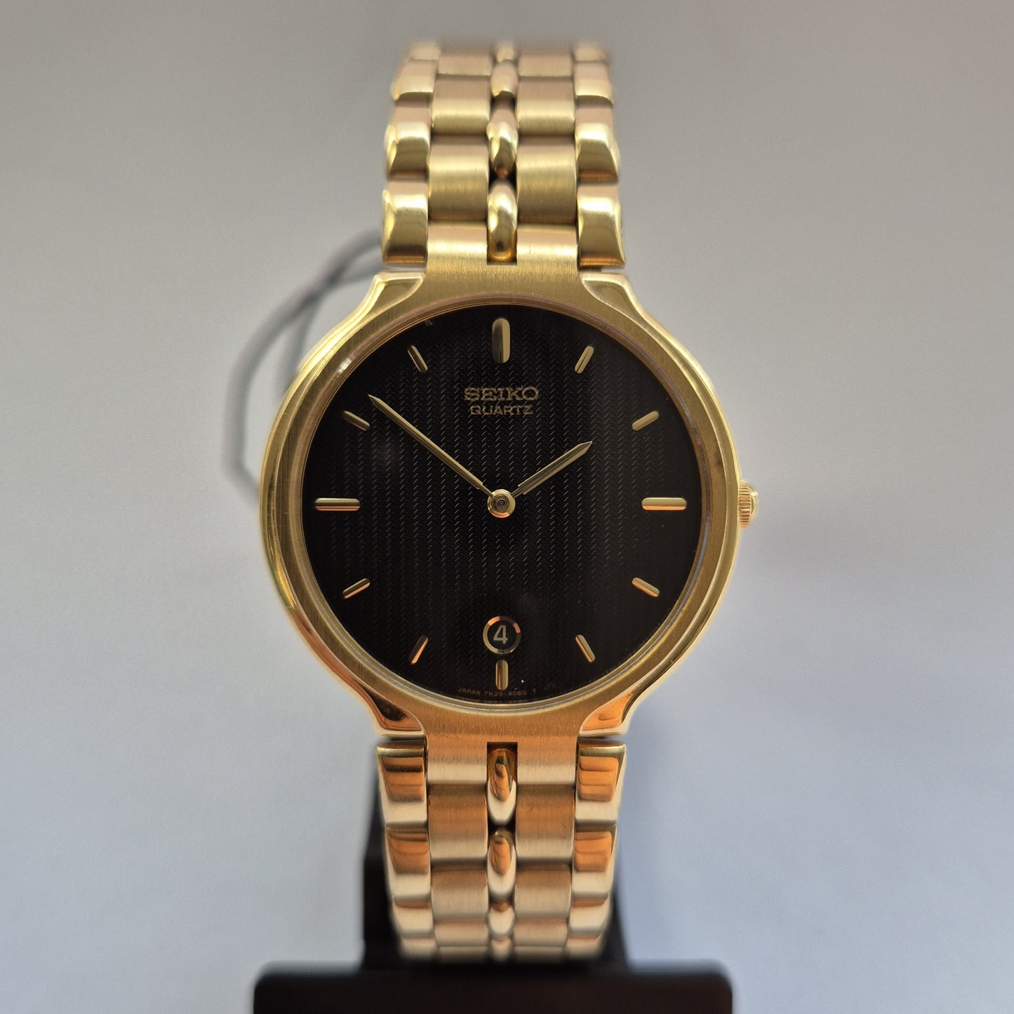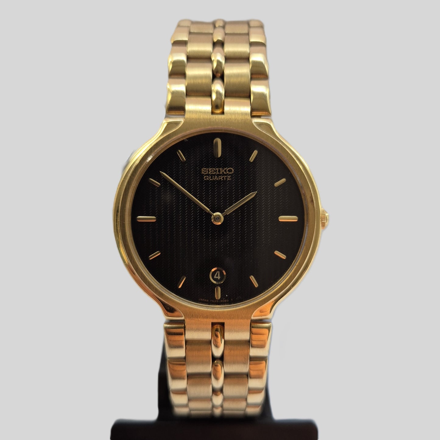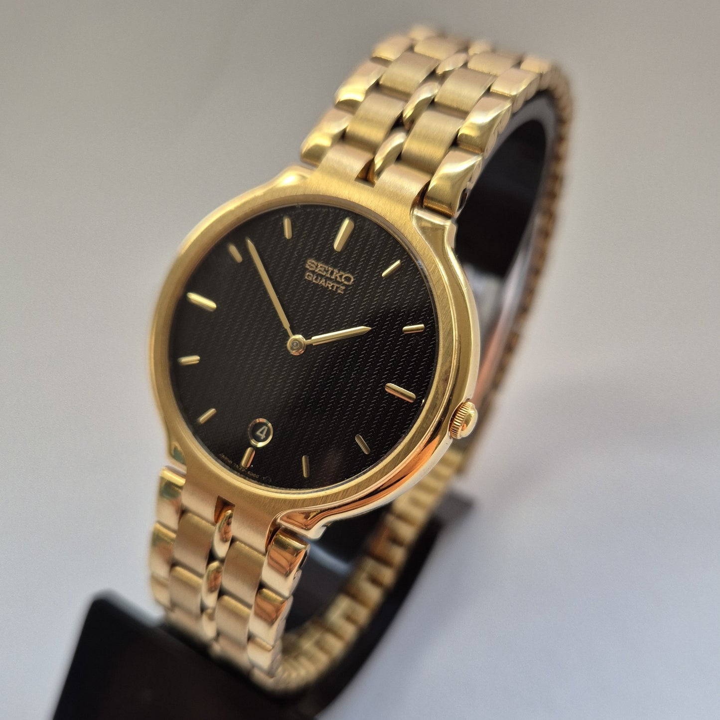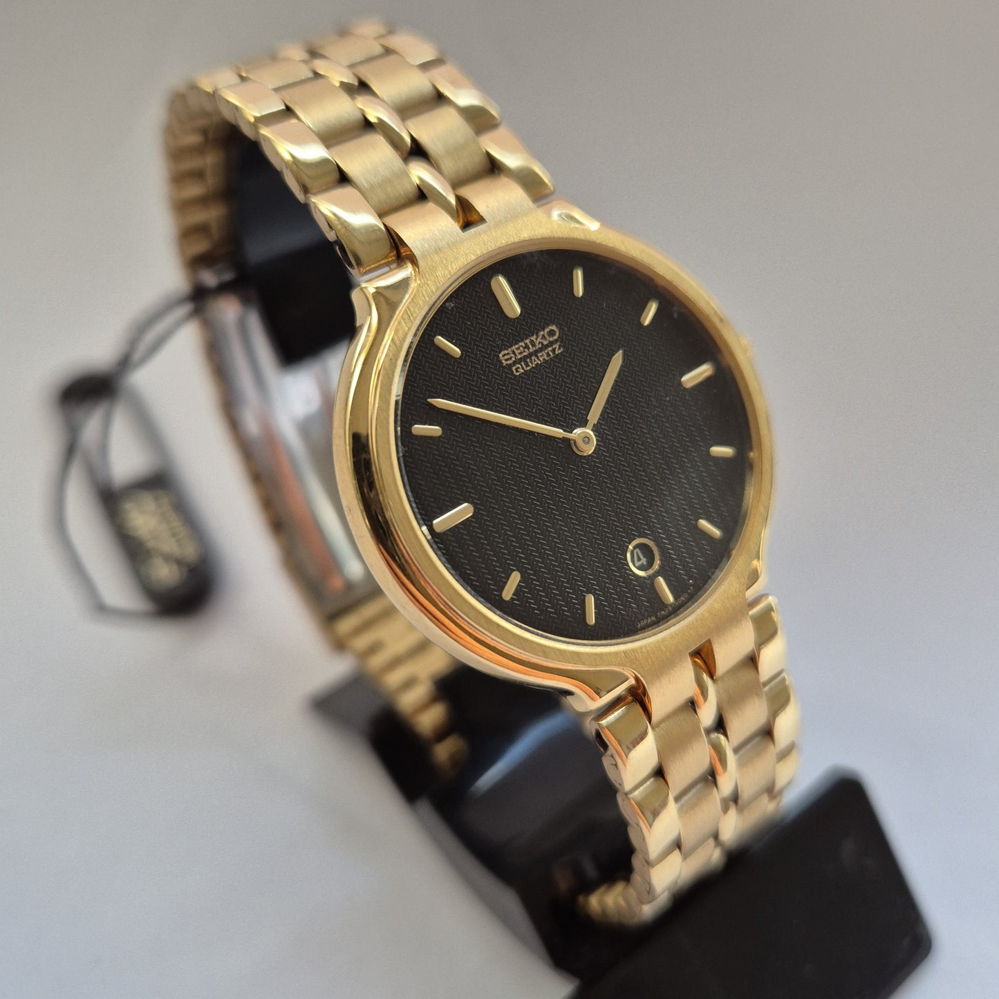 Seiko Herrenarmbanduhr – Klassisches Gold-Design mit Schwarzem Zifferblatt
