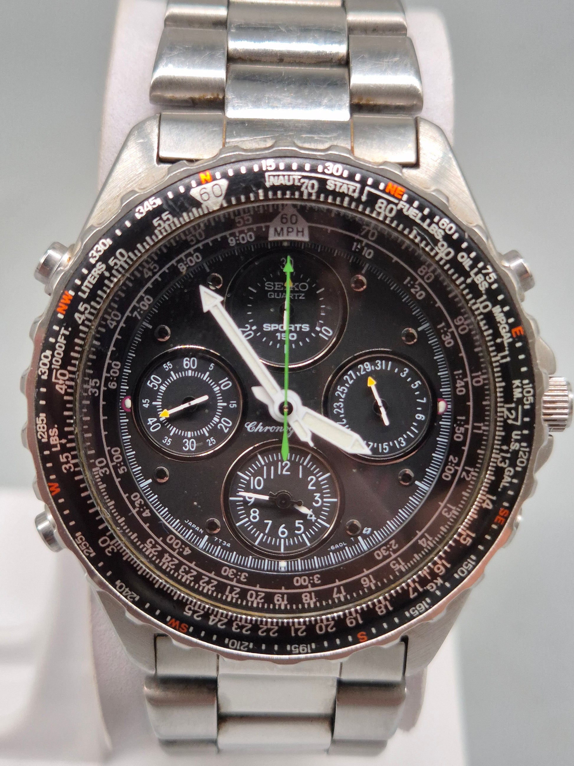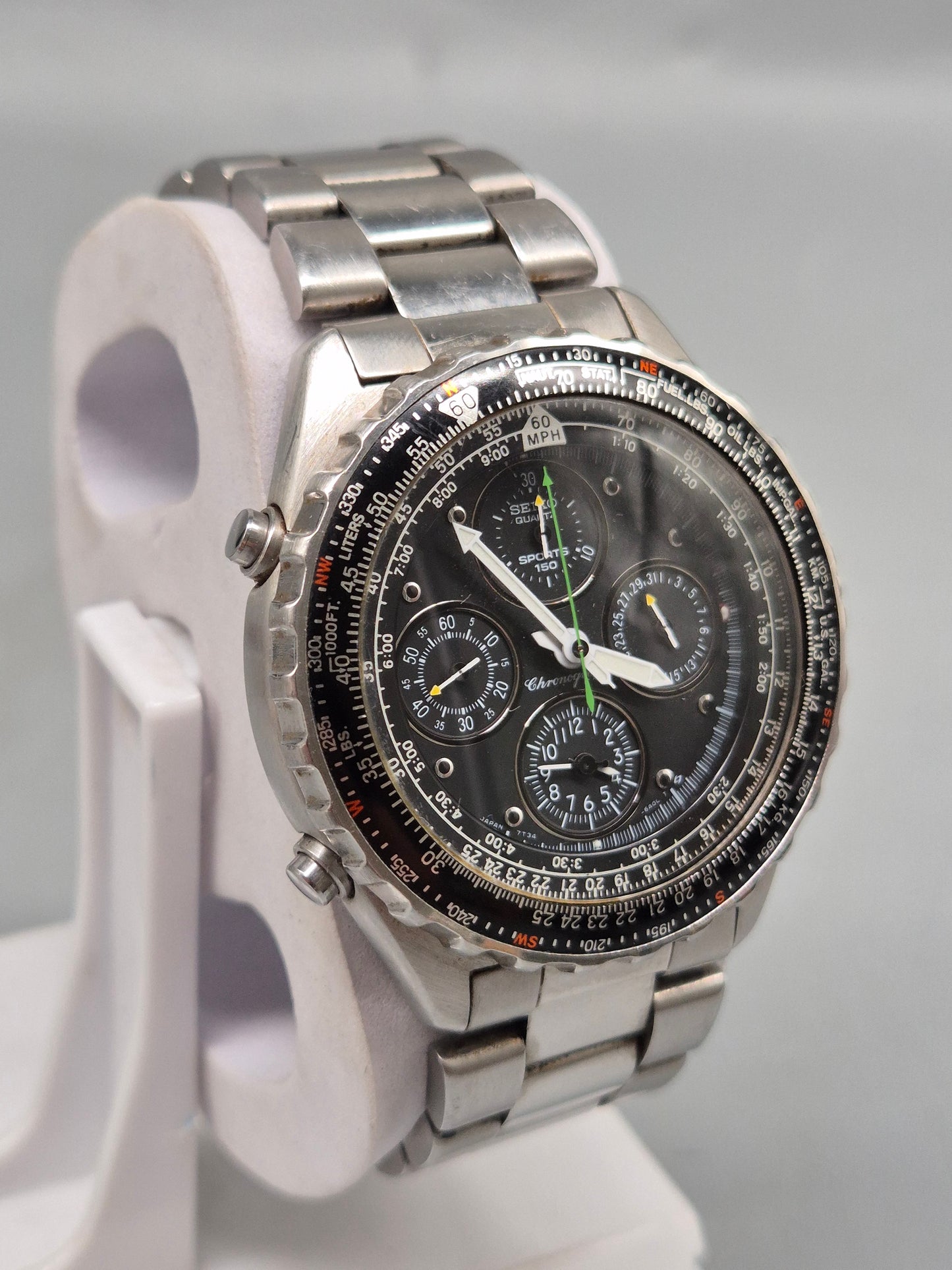 Seiko Sports Uhr 150 Herren 7T34‑6A00 Flightmaster Chronograph Rechenschieber