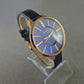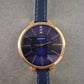 • Dunkelblaues Zifferblatt mit Kristallverzierung