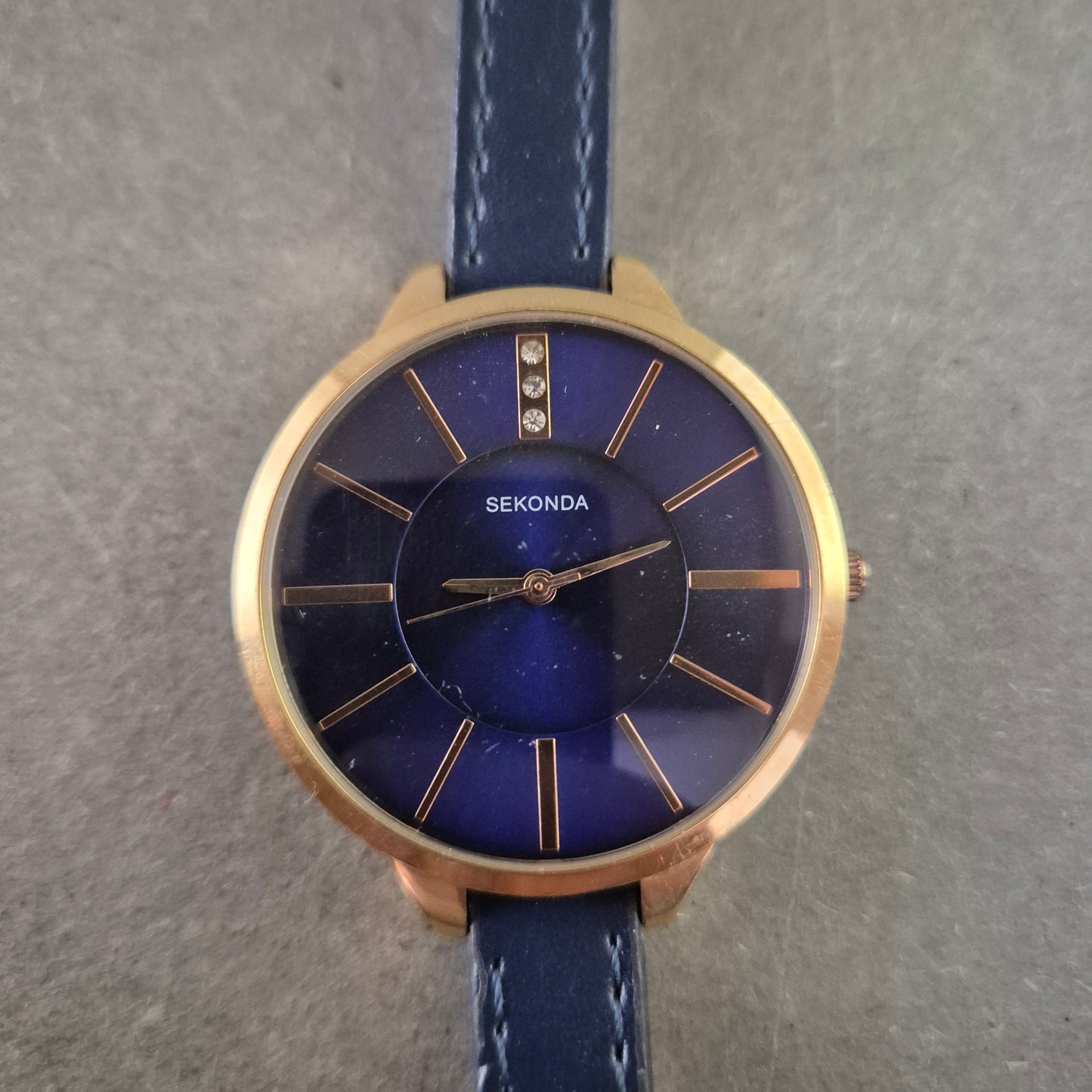 Sekonda Damenarmbanduhr – Roségold mit dunkelblauem Glanzzifferblatt
