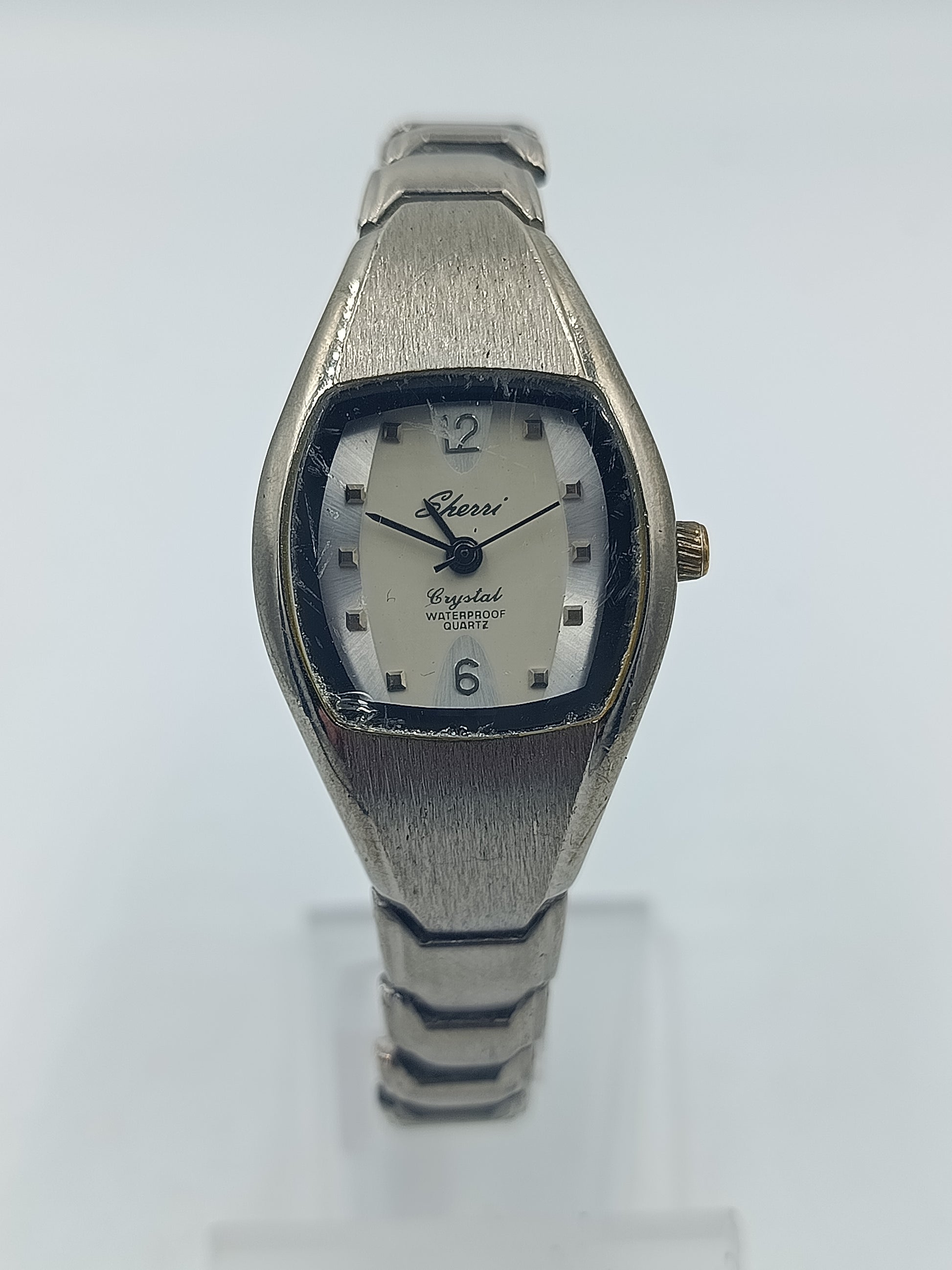 Elegante Sherri Damenarmbanduhr mit klassischem Vintage-Charme. Das silberfarbene Gehäuse und das passende Gliederarmband verleihen der Uhr einen stilvollen Look. Ideal für Liebhaberinnen von zeitlosen Accessoires oder als Sammlerstück.