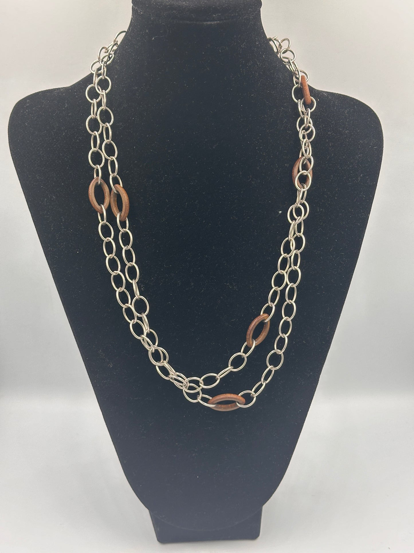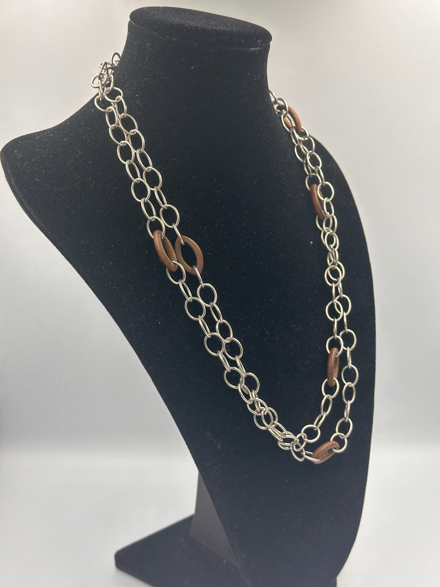 Verleihen Sie Ihrer Schmucksammlung einen Hauch von Einzigartigkeit mit dieser stilvollen Sterling Silber Halskette mit Holz Akzenten. Entdecken Sie die Schönheit der Natur in einem edlen Design.