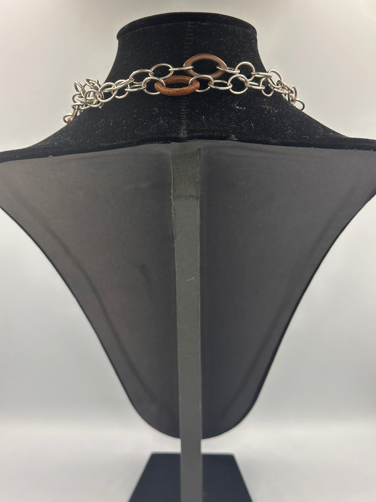 Unsere exquisite Halskette aus Sterling Silber kombiniert edles Design mit natürlichen Elementen. Diese Kette ist ein einzigartiges Schmuckstück, das durch seine Kombination aus glänzendem Silber und warmen Holzakzenten besticht.