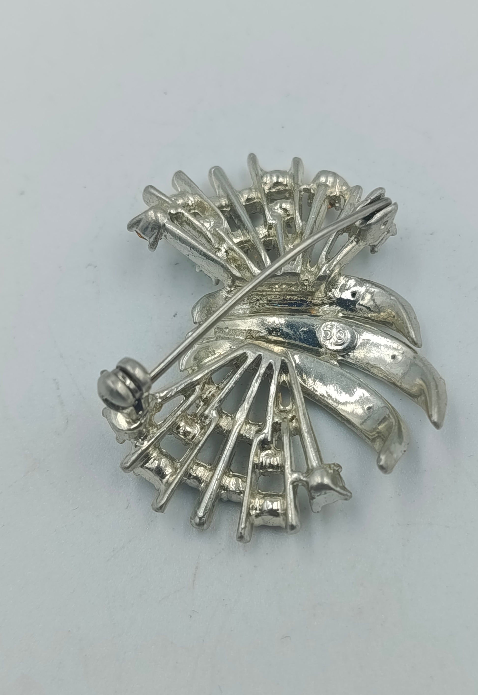 Silberfarbene Brosche mit klaren Strasssteinen