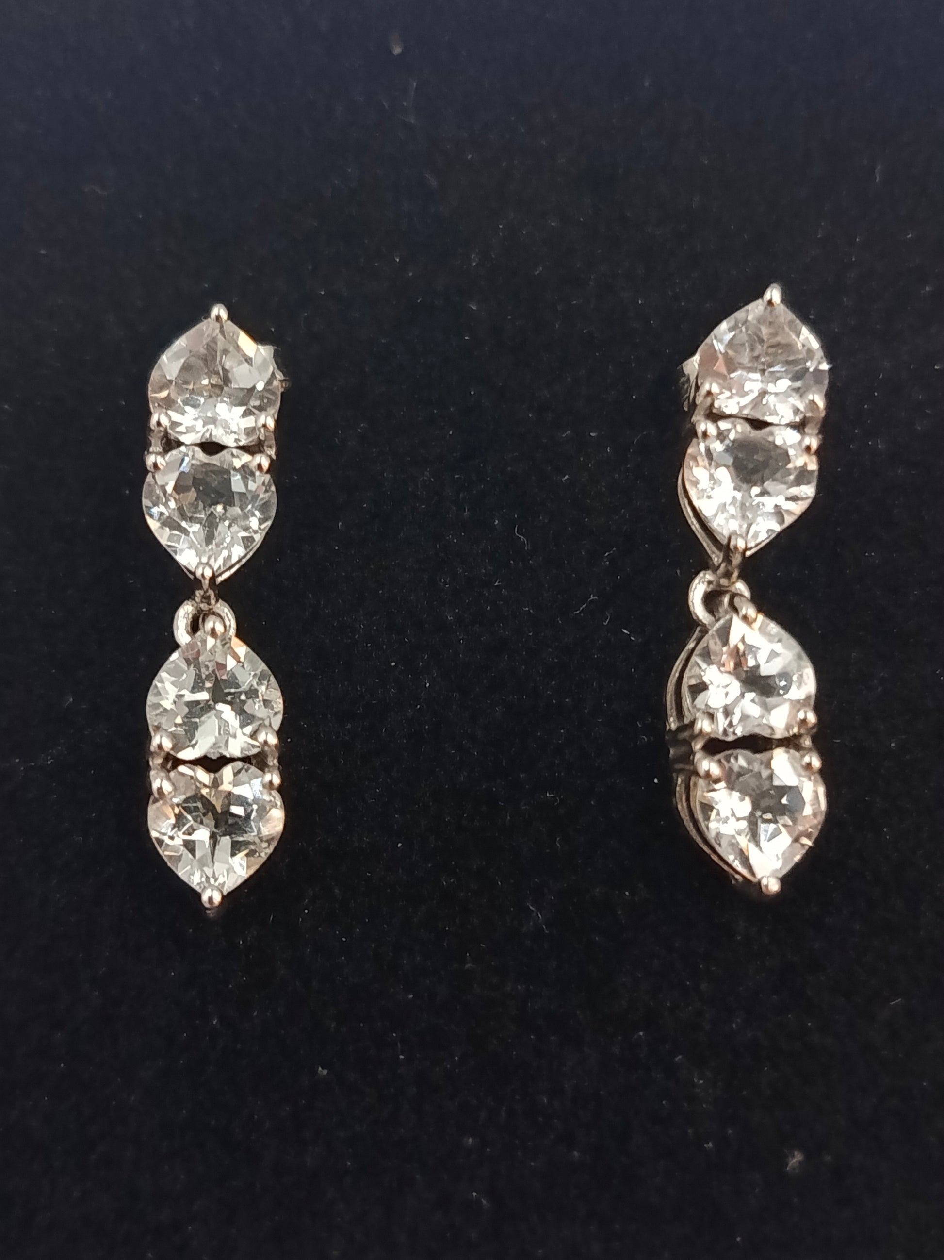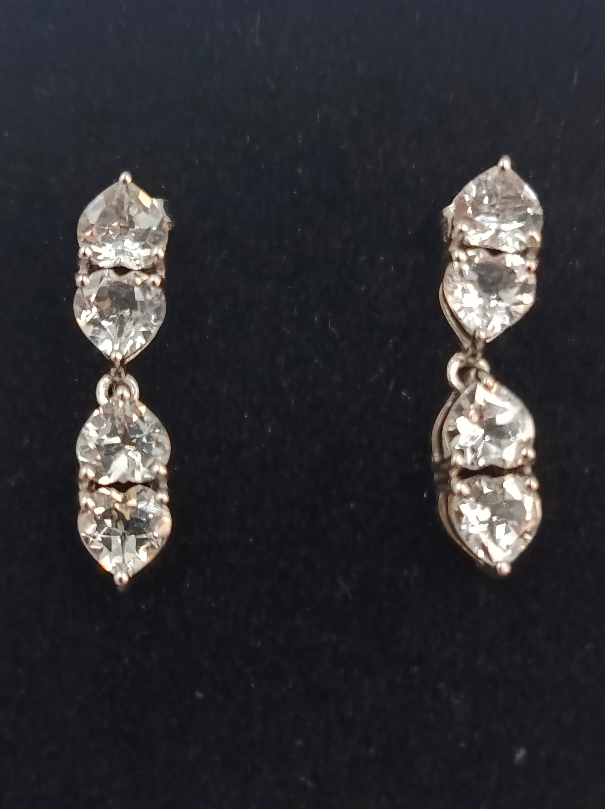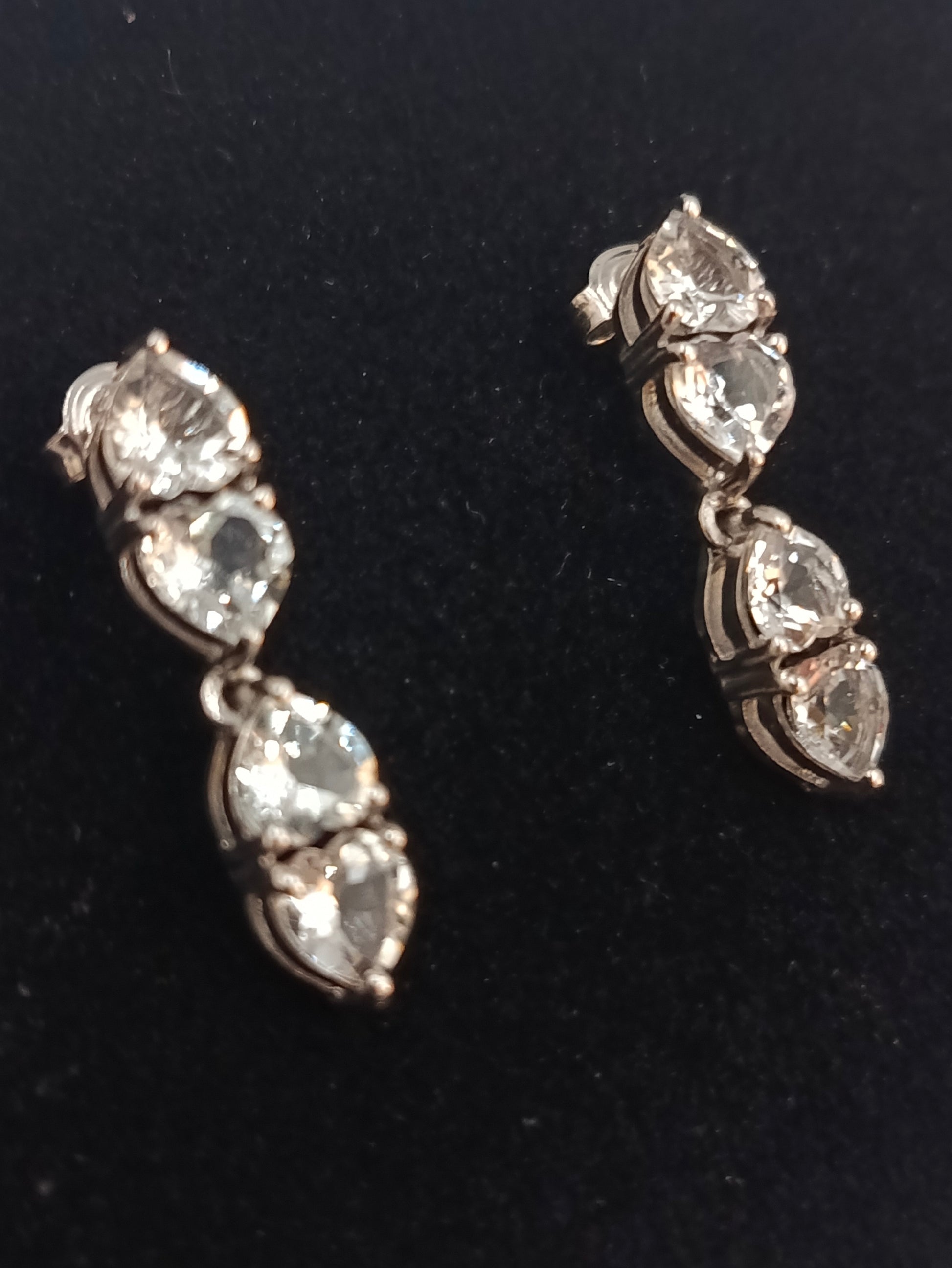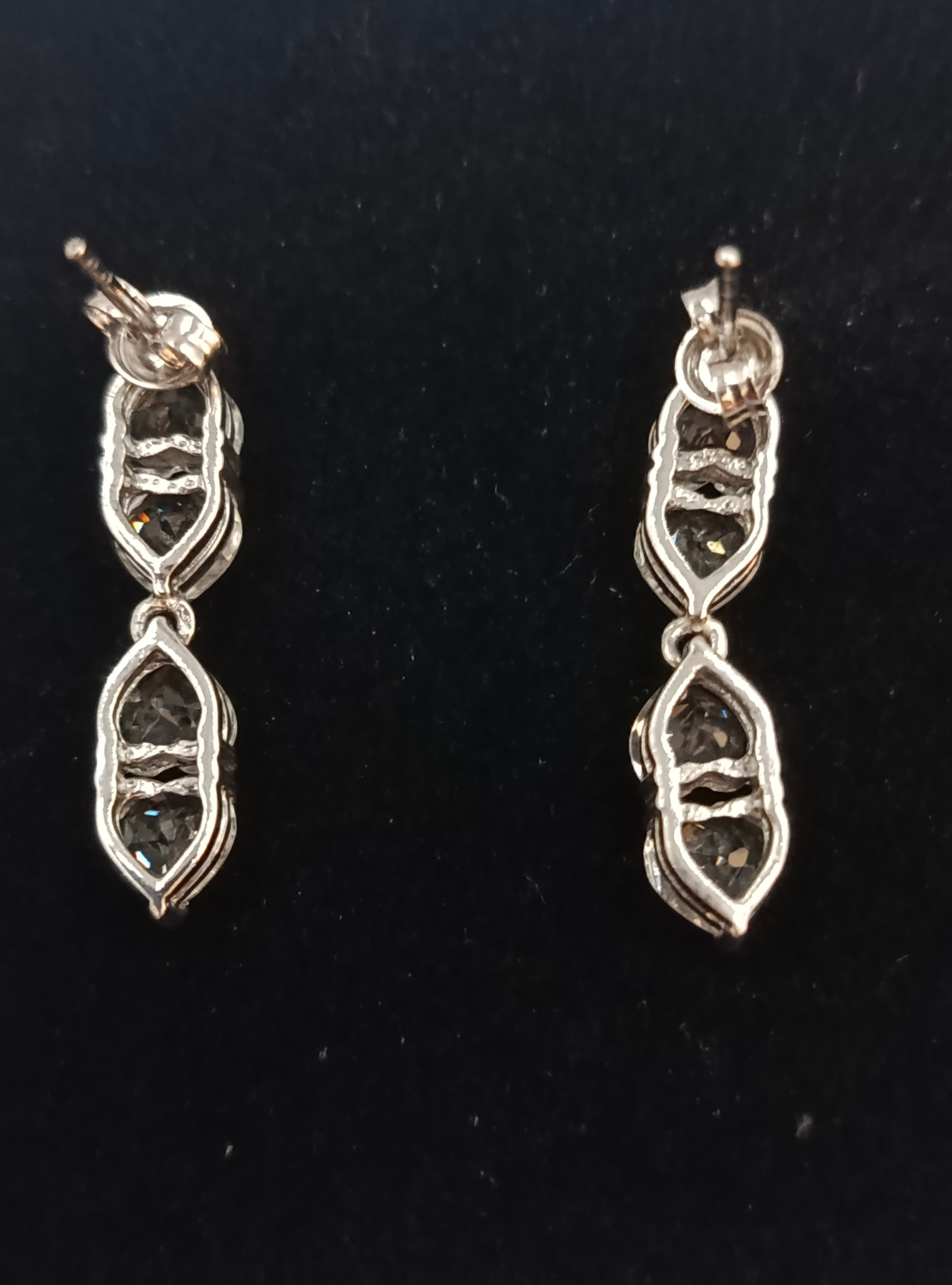 Elegante silberfarbene Ohrhänger mit drei großen, klaren, funkelnden Steinen pro Seite. Die längliche Form und das edle Design machen sie zu einem echten Blickfang – perfekt für Abendkleidung oder festliche Anlässe.