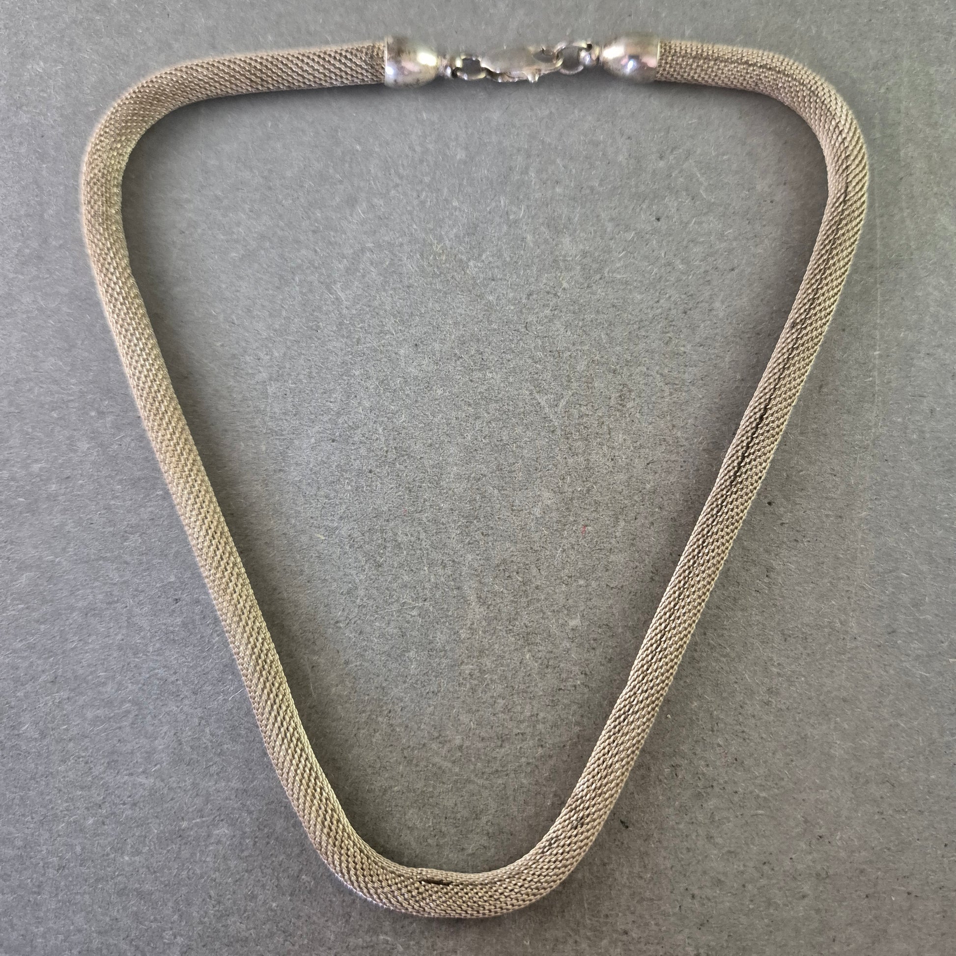 Diese elegante Halskette präsentiert sich im klassischen Schlangenketten-Design mit feiner Netzstruktur. Ihr zeitloser Look macht sie zu einem vielseitigen Accessoire, das sowohl im Alltag als auch zu besonderen Anlässen getragen werden kann.