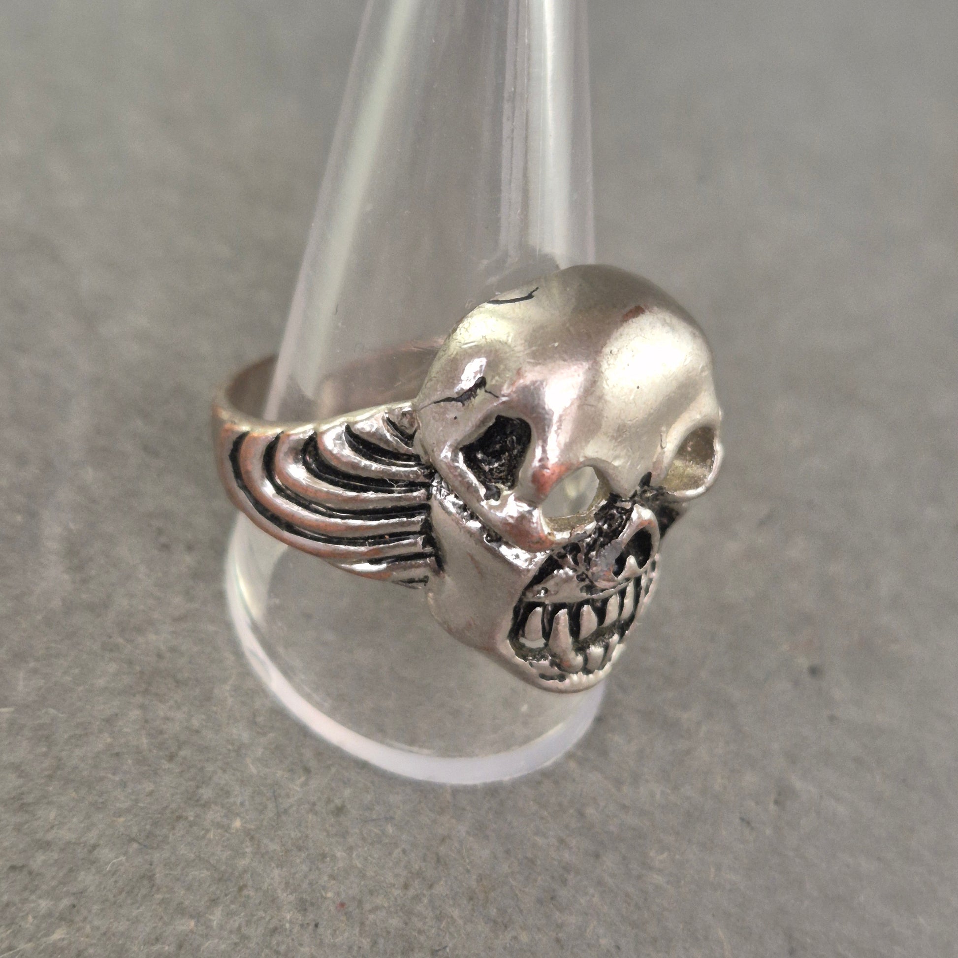 Silberfarbener Totenkopf-Ring im Rocker-Stil – markantes Design