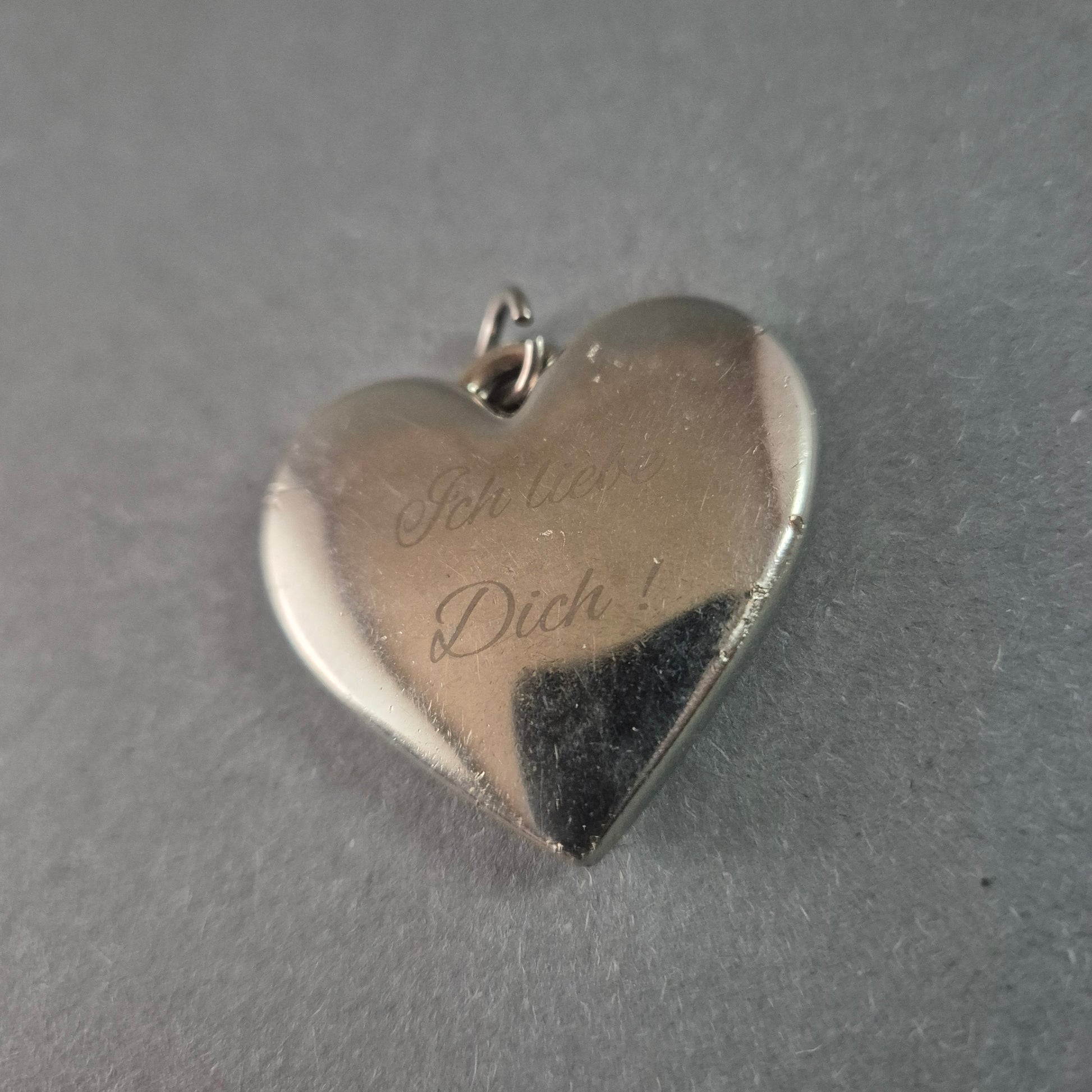 Dieser elegante silberfarbene Herzanhänger ist ein klassisches Schmuckstück mit einer persönlichen Note. Die Vorderseite ist mit der Gravur "Ich liebe Dich" verziert, was ihn zu einem perfekten Geschenk für besondere Menschen macht. Das glänzende Finish sorgt für eine edle Optik, während die schlichte Form vielseitig kombinierbar ist. Ideal als Anhänger für Ketten oder Armbänder.