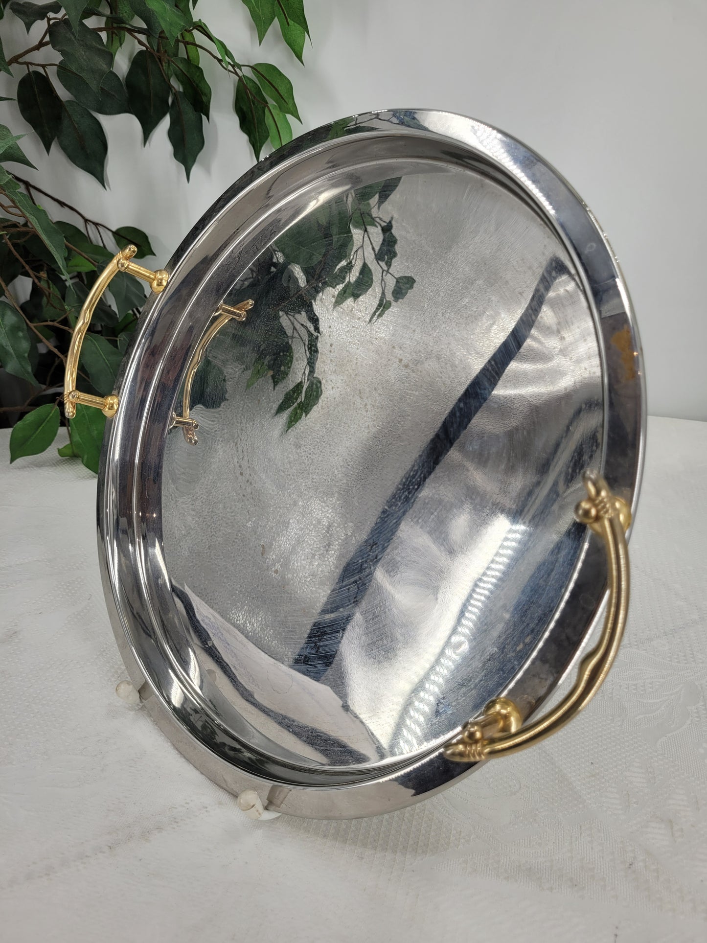 Attraktives Modernes Neusilber Tablett, Glamour mit Goldhenkeln