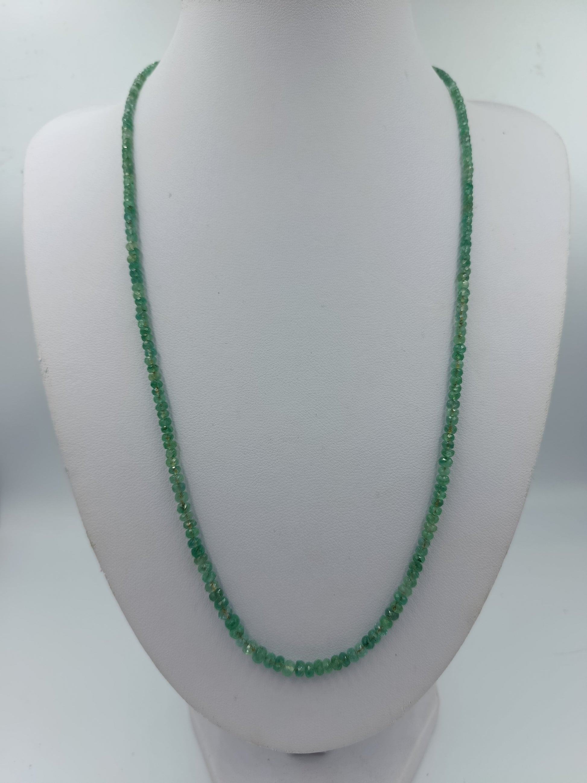 Feine, edle Smaragd-Kette aus echten, facettierten Smaragd-Edelsteinen in wunderschönem, natürlichem Grün. Die filigrane Ausführung und der goldfarbene Verschluss verleihen der Kette eine elegante, hochwertige Ausstrahlung – ideal als dezenter Luxus im Alltag oder für besondere Anlässe.