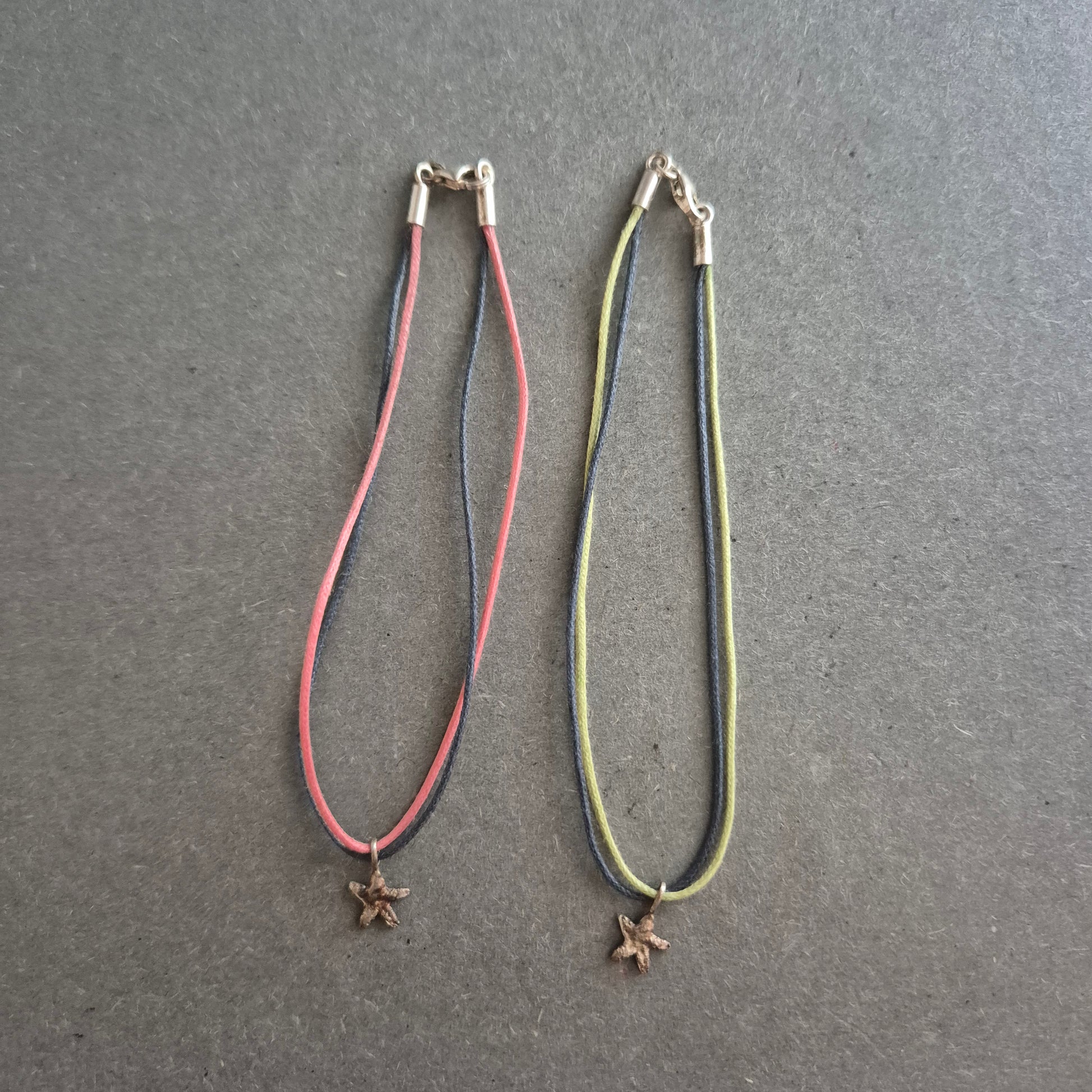 Dieses charmante Set aus zwei Armbändern überzeugt mit maritimer Leichtigkeit und sommerlichem Flair. Die Kombination aus farbigen Lederbändern – einmal in Rot-Schwarz, einmal in Grün-Schwarz – wird durch kleine, antik-goldfarbene Seestern-Anhänger perfekt ergänzt. Ideal für entspannte Outfits, Festivals oder als dezentes Urlaubsaccessoire.