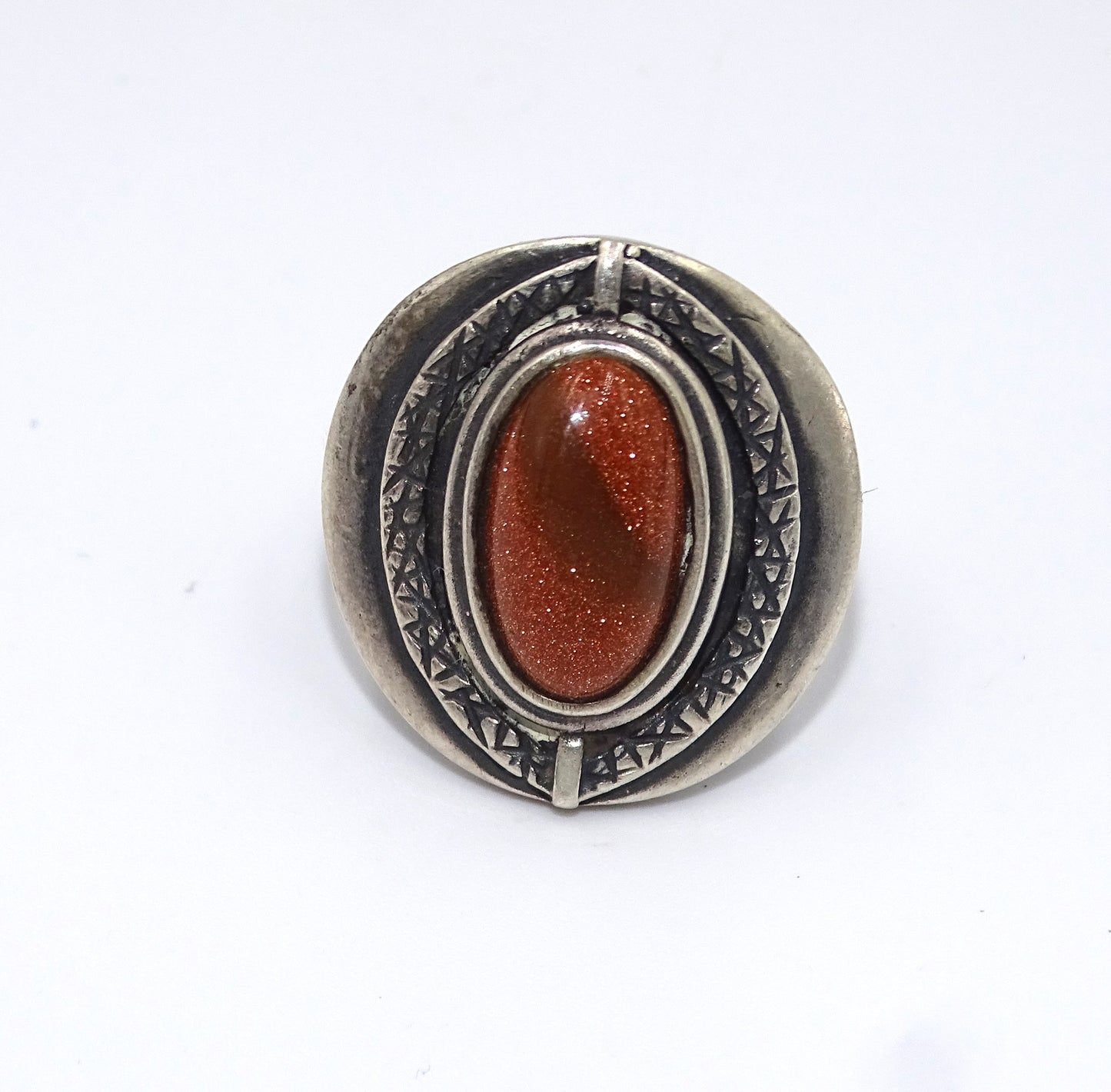 Dieser exquisite handgemachte Ring ist aus hochwertigem 925er Silber gefertigt und mit einem wunderschönen Sonnenstein verziert. Der Ring ist in Größe 57 erhältlich und hat einen Durchmesser von 18,1 mm. Mit einem Gewicht von 6,2 Gramm liegt der Ring angenehm am Finger und verleiht jedem Outfit einen Hauch von Eleganz. Der Artikel ist in gebrauchtem Zustand, was ihm einen einzigartigen Vintage-Charme verleiht. Bitte beachten Sie die beigefügten Bilder, um den genauen Zustand des Rings zu beurteilen.