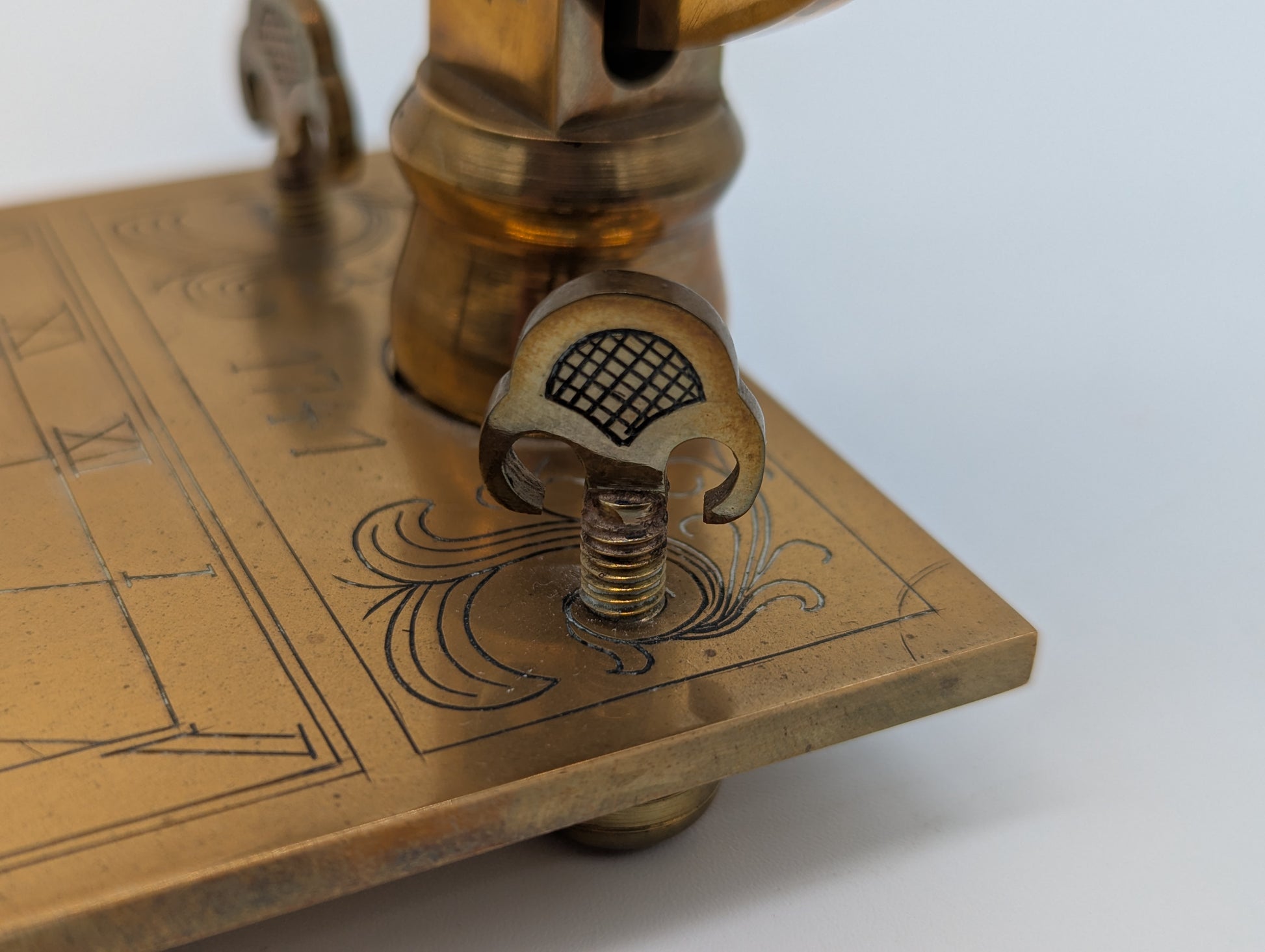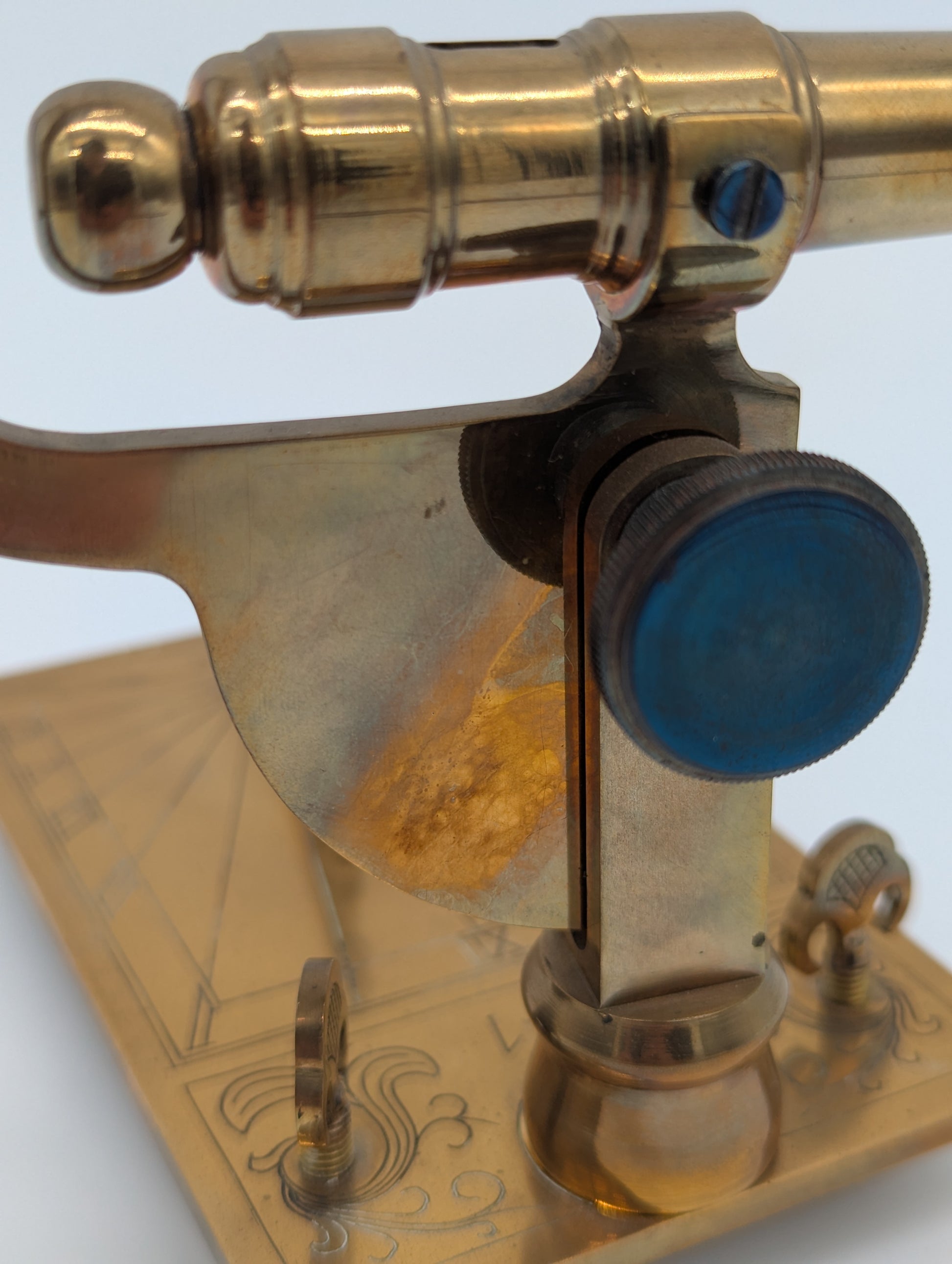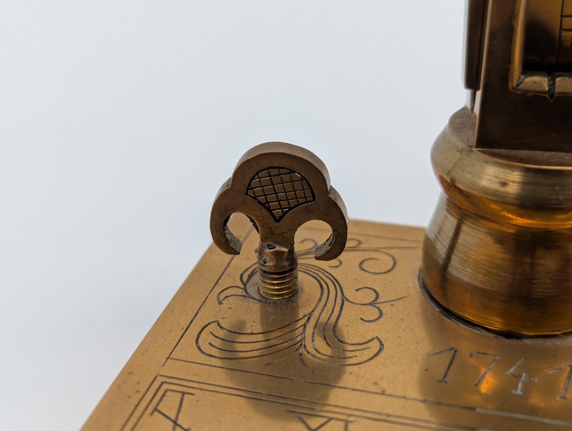 Das Stück ist komplett aus Messing gefertigt, fein graviert und detailreich ausgeführt. Mit seiner Kombination aus Technik, Handwerkskunst und historischem Nutzen stellt es ein besonders dekoratives Objekt für Sammler von antiken Messinstrumenten dar.