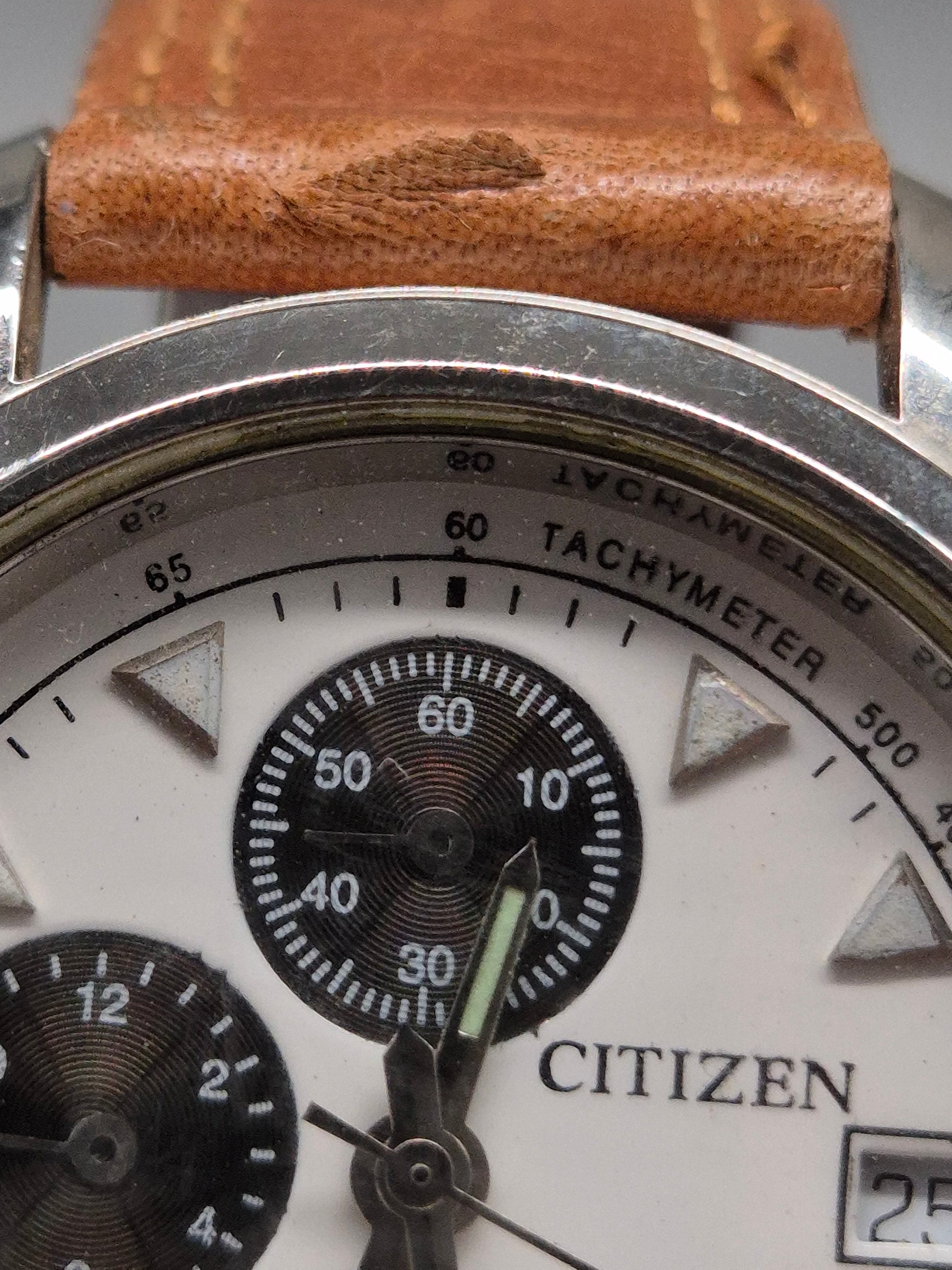 Sportliche Citizen Herren Uhr – Chronograph mit Tachymeter & Lederband