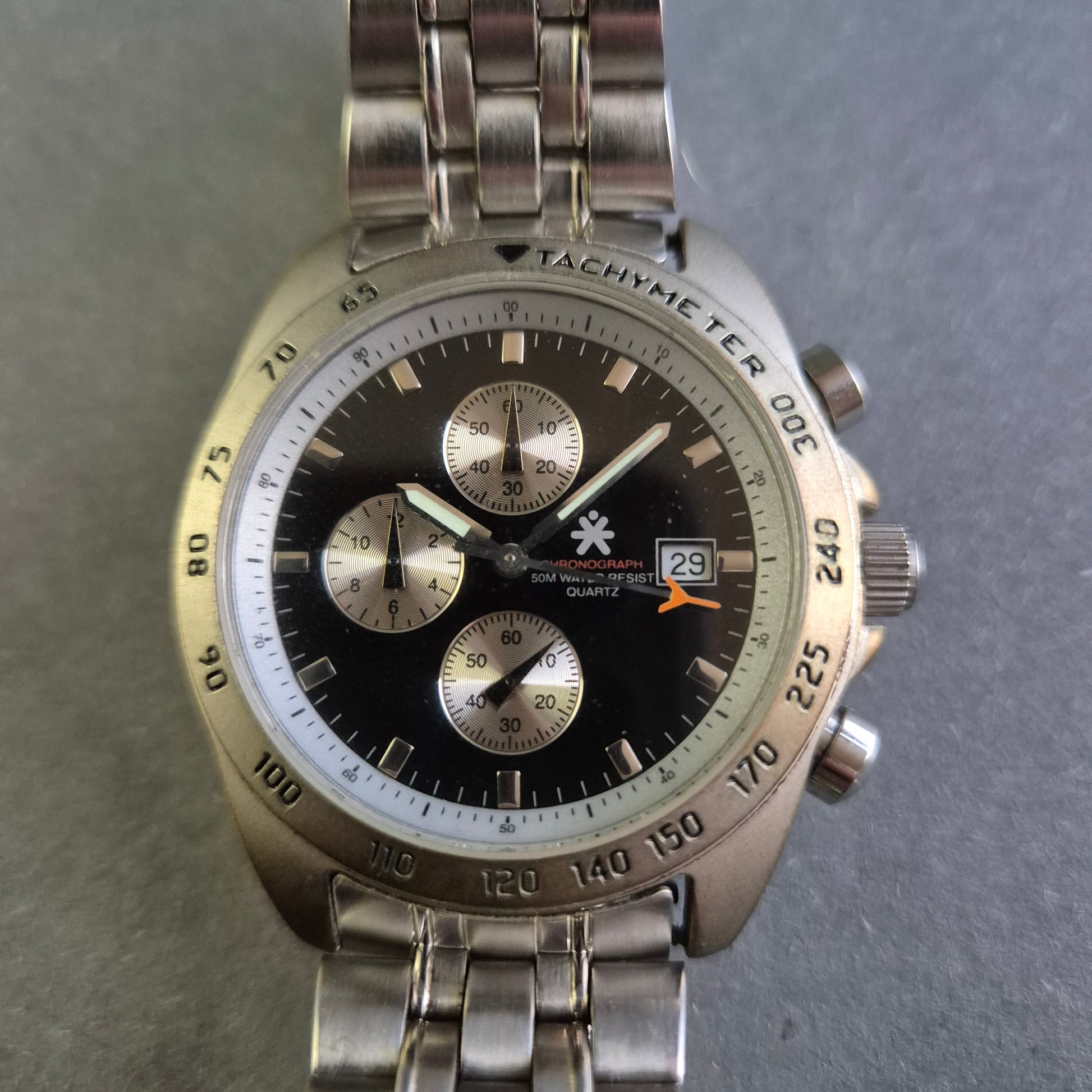 • Funktionen: Quarzwerk, Chronograph, Datumsanzeige, Tachymeter