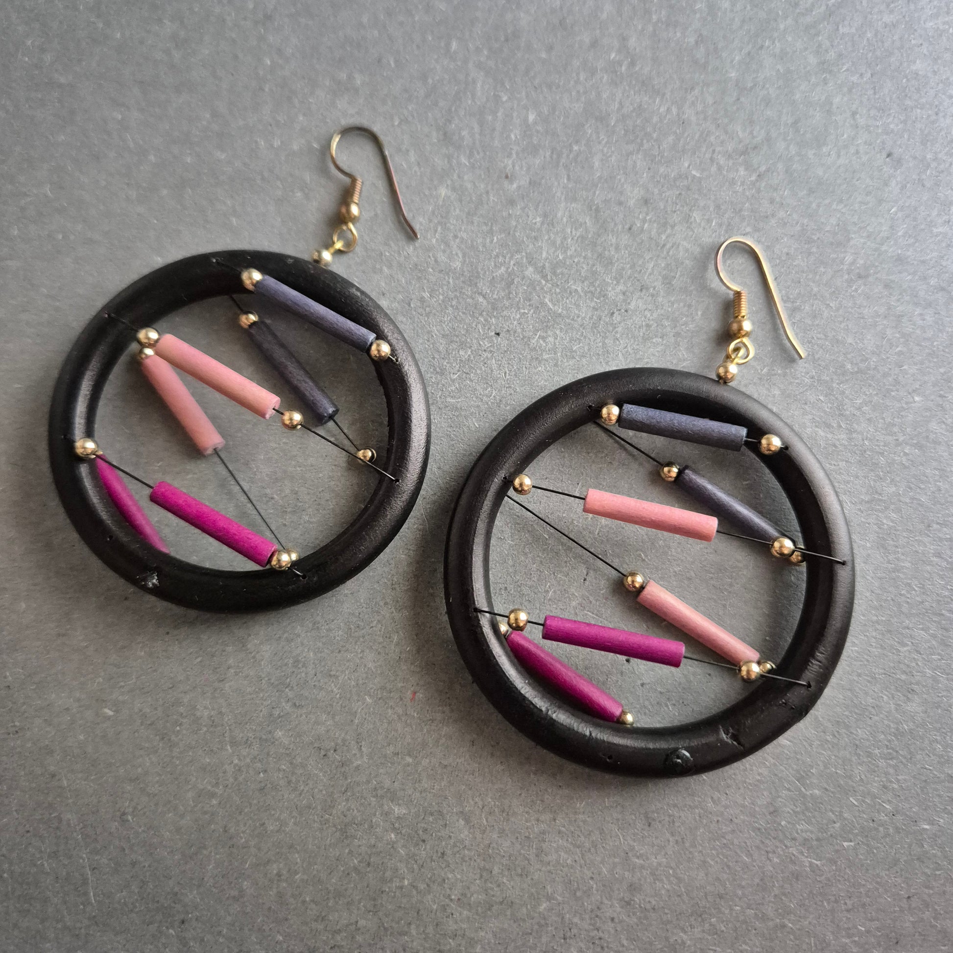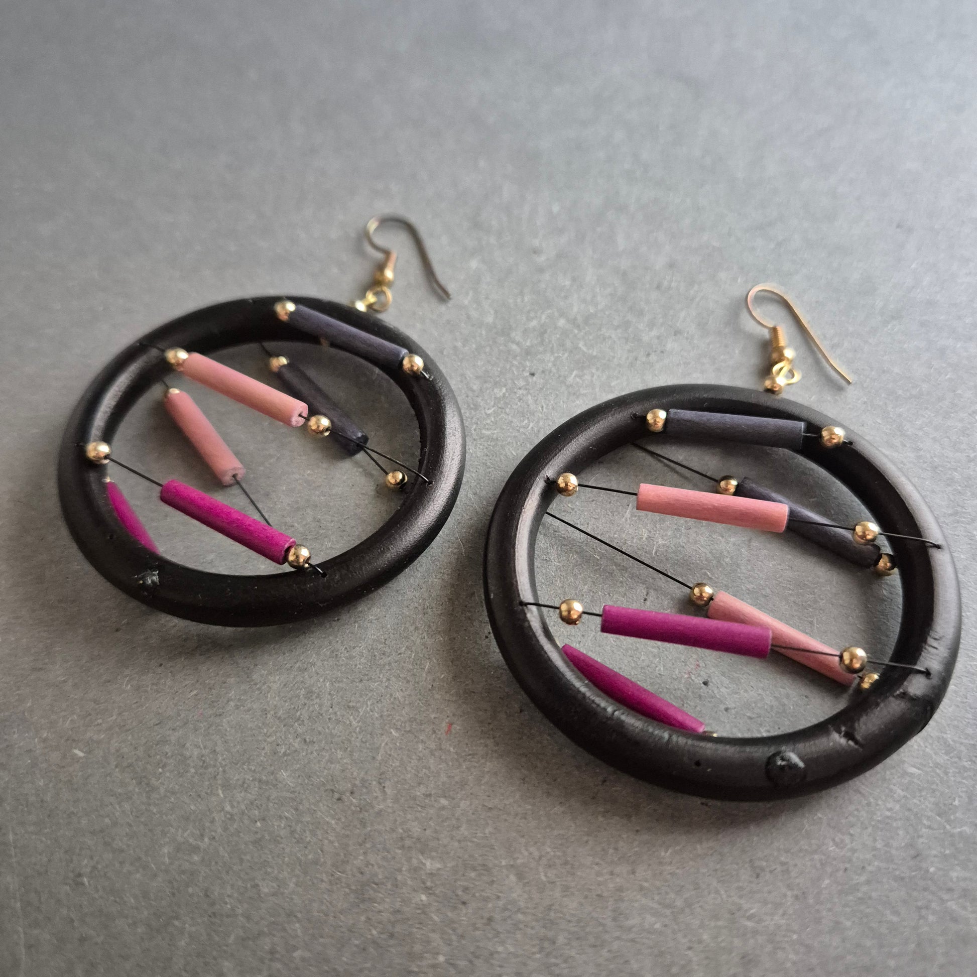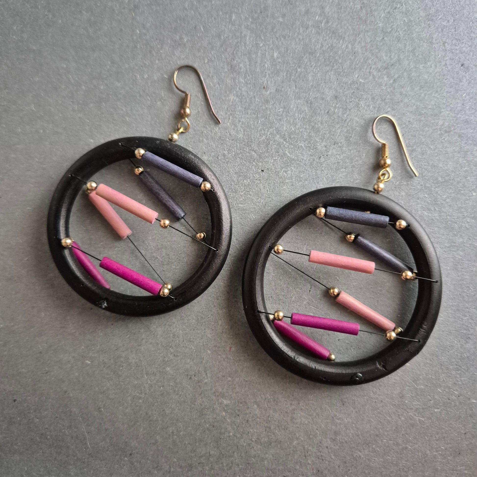 Statement-Ohrringe im Boho-Stil – Bunte Hängeohrringe mit Holzring