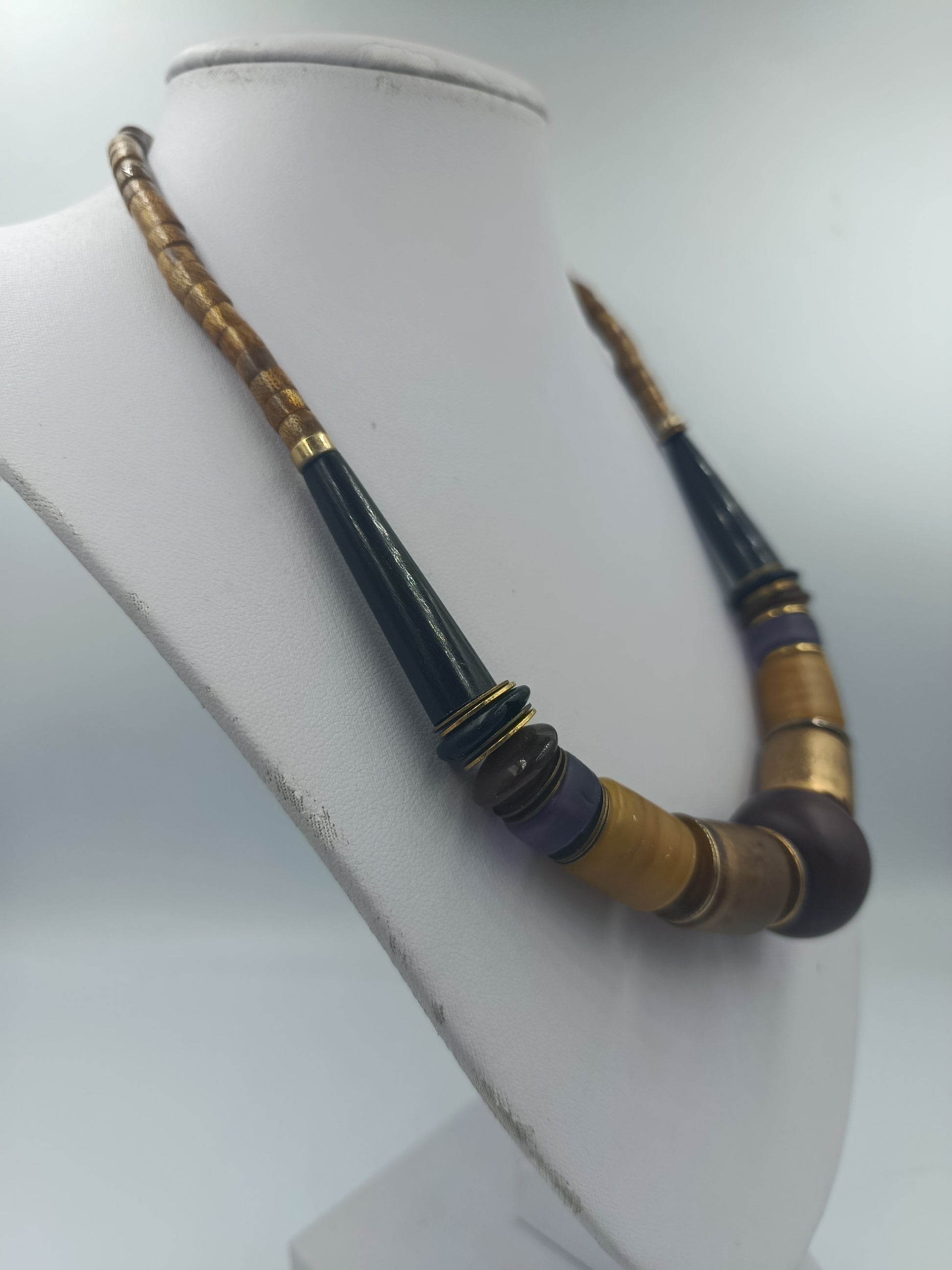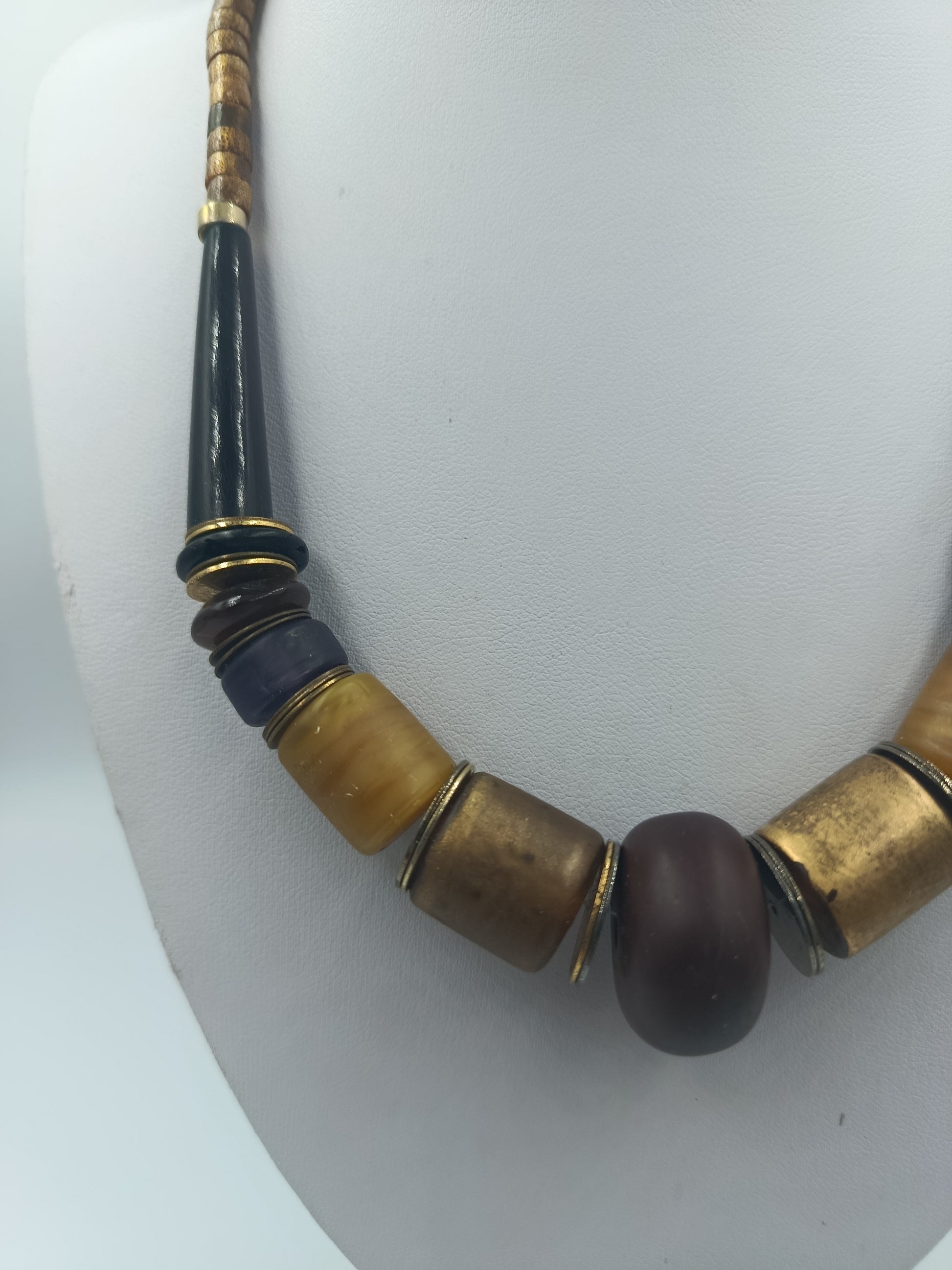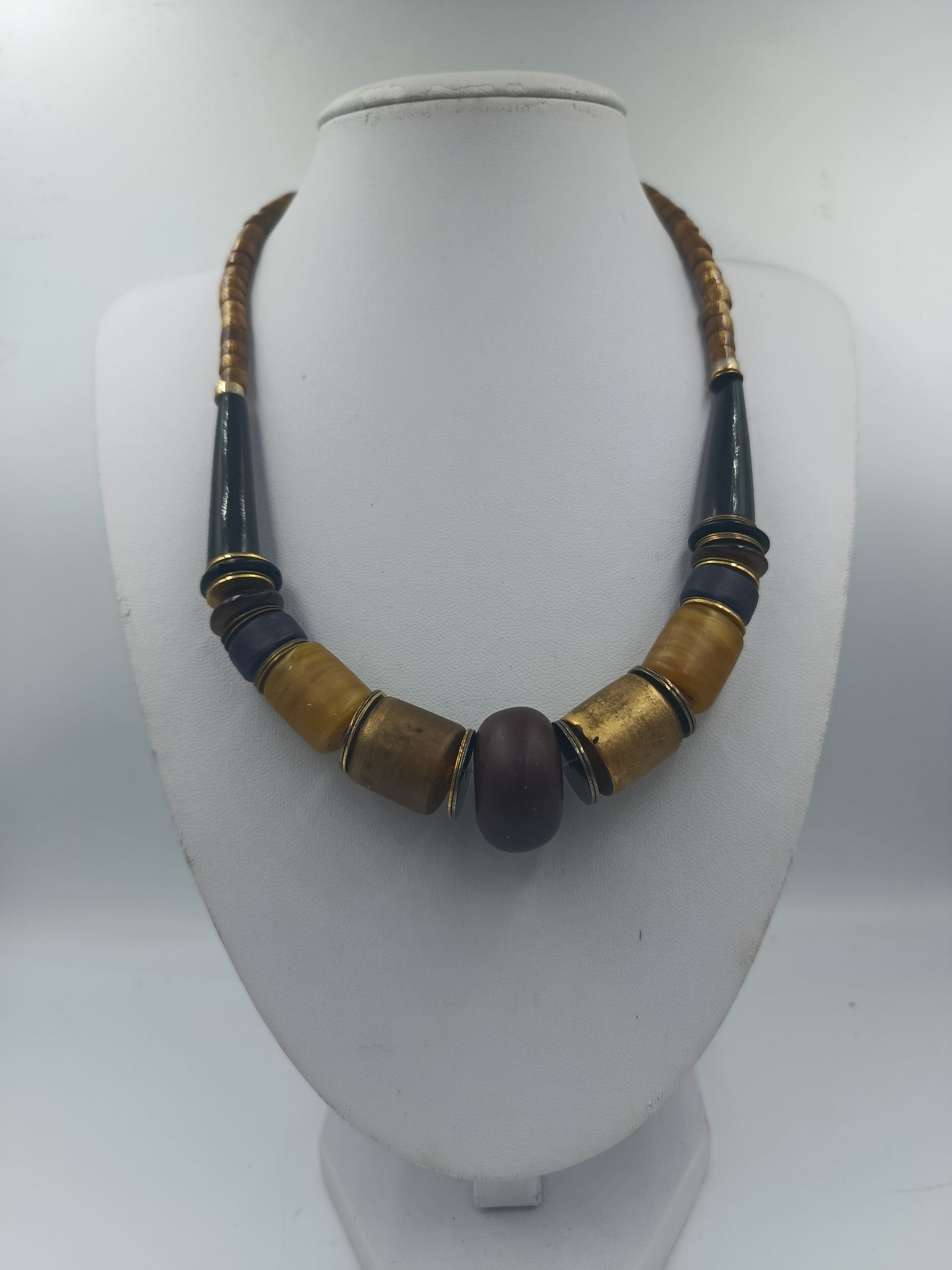 Statementkette in Braun Gold Blau Vintage Stil